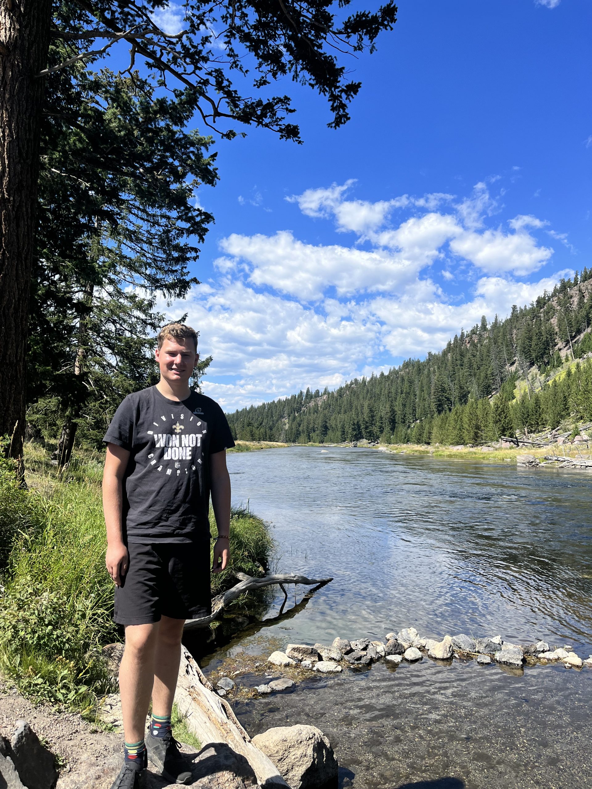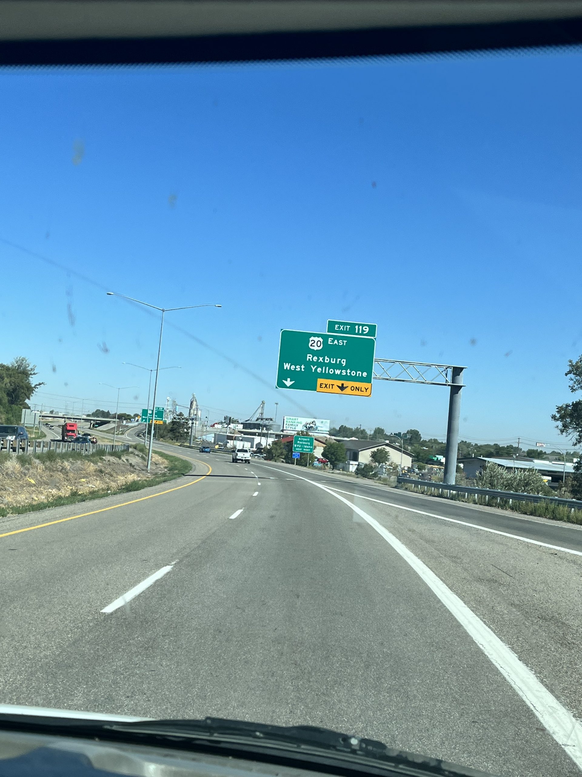Dann ging es endlich Richtung Yellowstone, wir fuhren an vielen Steppenlandschaften und Wäldern vorbei, bis auf einmal ein Schild mit „Yellowstone Nationalpark“ kam. Leider standen dort Menschen, die Bilder machten, somit verschoben wir unsere Fotosession auf die Ausfahrt vom Nationalpark.