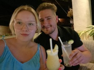 Bis nach um 6 lagen wir noch am Strand, langsam wurde es dunkel. Nach einem entspannten Tag am Strand gingen wir zurück aufs Zimmer, machten uns fertig und gingen dann kurz nach 19:00 Uhr zum Abendessen. Die Auswahl ist nicht groß, aber es ist definitiv für jeden etwas dabei. Zum Abschluss gab es noch etwas Melone und ein Dessert, bevor wir uns in die Hotellobby mit einem leckeren Getränk setzten. Dort begann ich das Urlaubstagebuch zu schreiben und wir ließen den Abend gemütlich ausklingen.