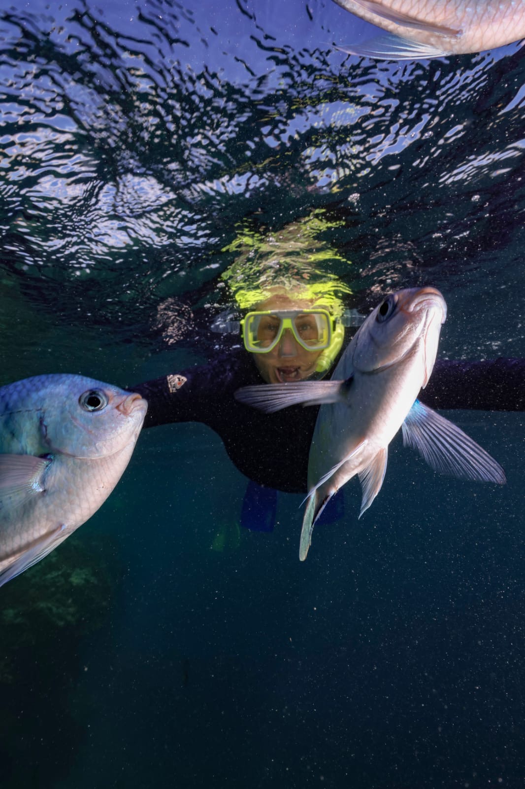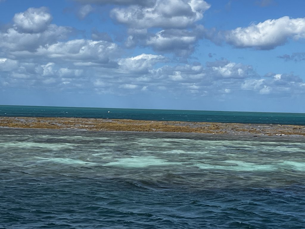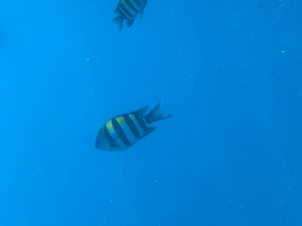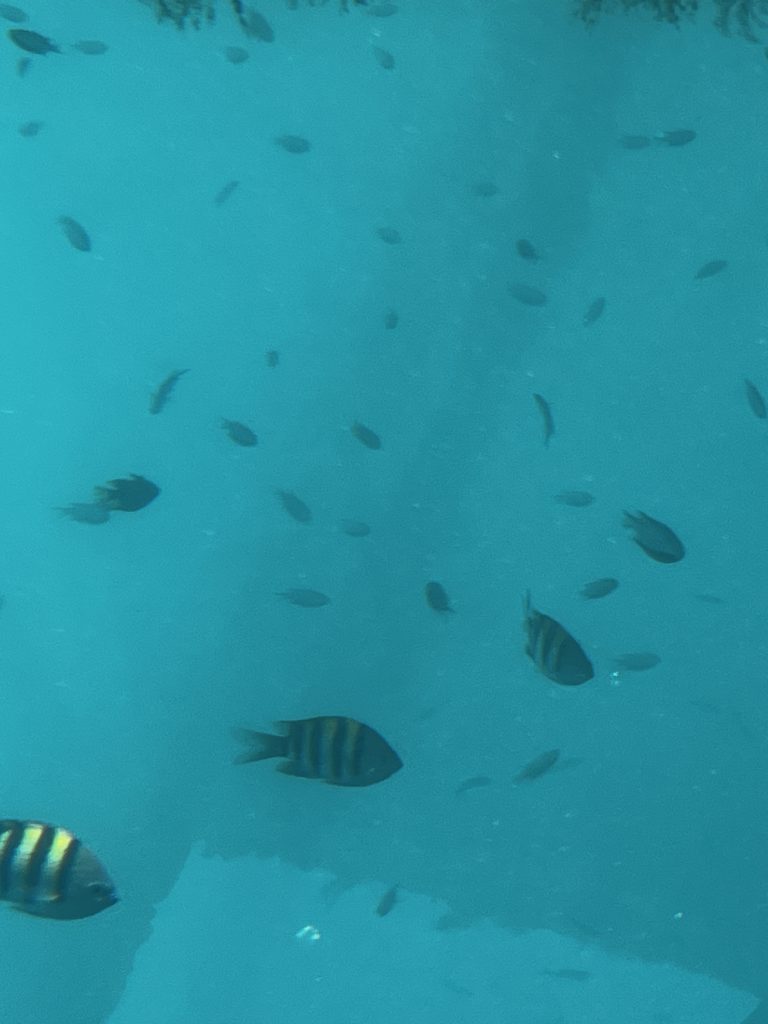 Das Wasser ist herrlich warm. Wir bewegen uns am Riff hin und her und jedesmal sehen wir andere Fische. Es ist wirklich beeindruckend. So halten wir bestimmt zwei Stunden aus. Zu unserer Überraschung ist es halb 3. Um 3 geht’s zurück, dieses Mal mit etwas weniger Seekranken.
