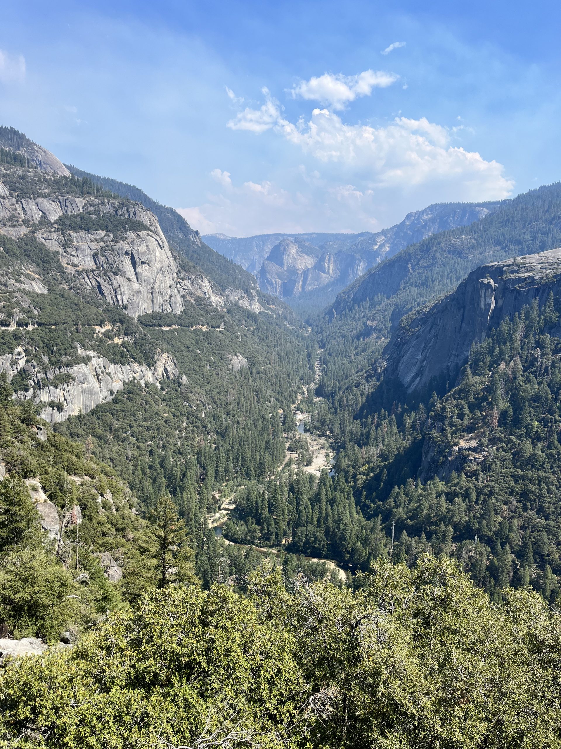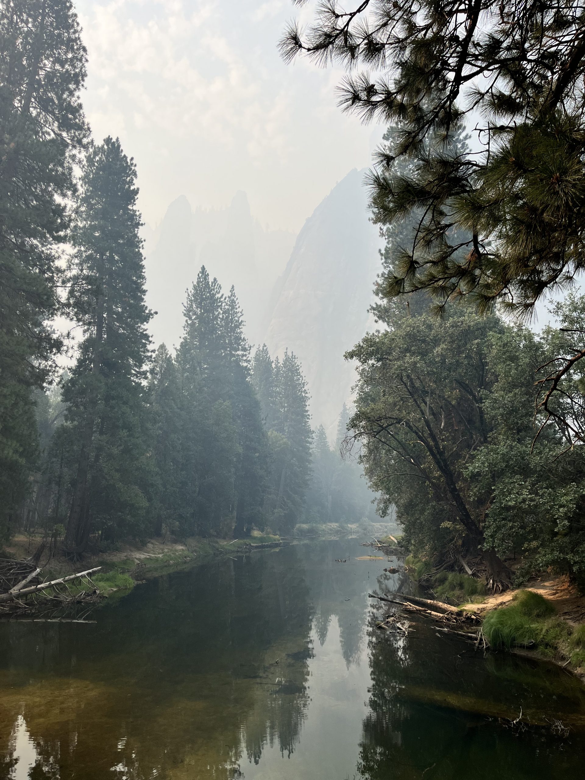 Der Morgen lief, wie gewohnt ab. Frühstück, Sachen verstauen und los. Wir fanden einen kostenlosen Wanderparkplatz und begannen gegen viertel 10 unsere Wanderung durch das Yosemite Valley. Das Tal lag im Nebel, somit waren die Temperaturen ertragbar.