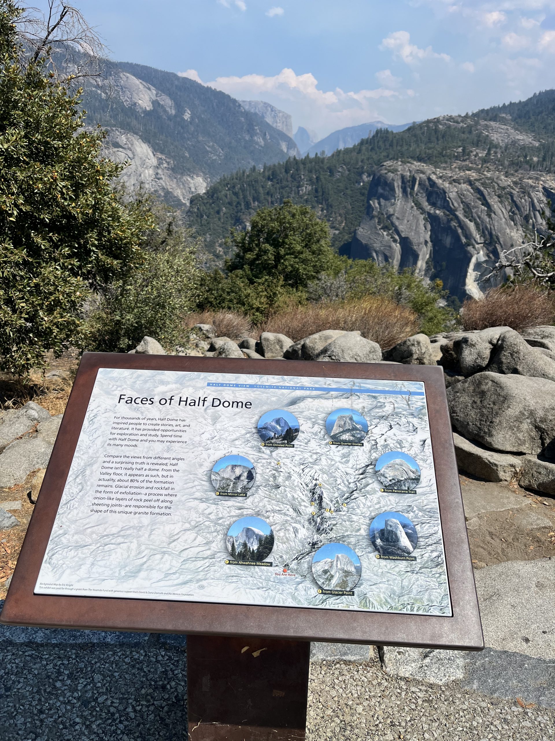Also fuhren wir wieder talabwärts und hielten an den Aussichtspunkten an, um den Ausblick zu genießen. An der anderen Seite des Bergs fuhren wir wieder hoch. Kurz vor einem Tunnel, kamen wir zu einem besonders schönen Ausblick, wo man den El Capitan, Half Dome und den Bridalveil Fall betrachten konnte. Dieser Blick diente unter anderem als Motiv für Postkarten und andere Souvenirs.