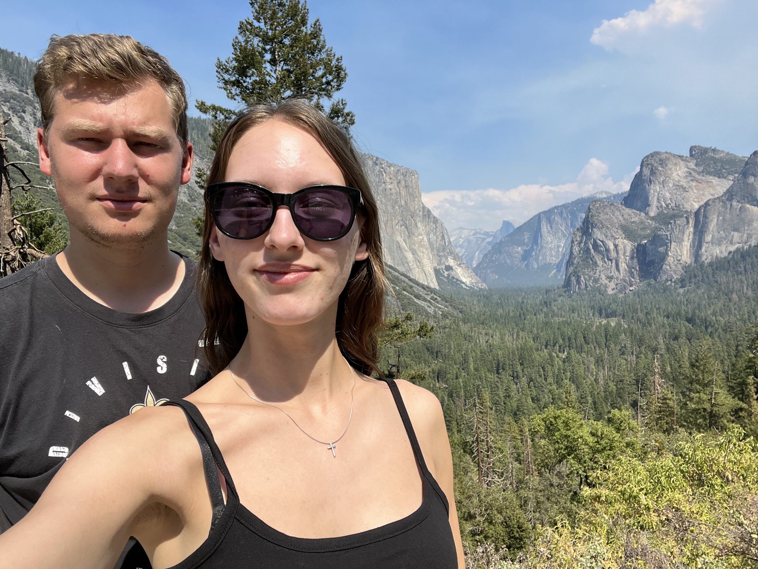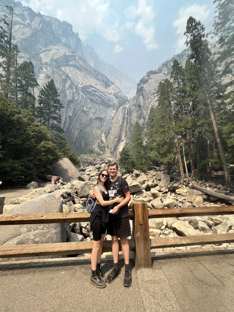 Kurz vor dem Ende wanderten wir noch zu dem Lower Yosemite Falls, welche zum Glück nicht weit vom Parkplatz weg waren. Dort trafen wir mal wieder Deutsche, die freundlicherweise ein Foto von uns machten.