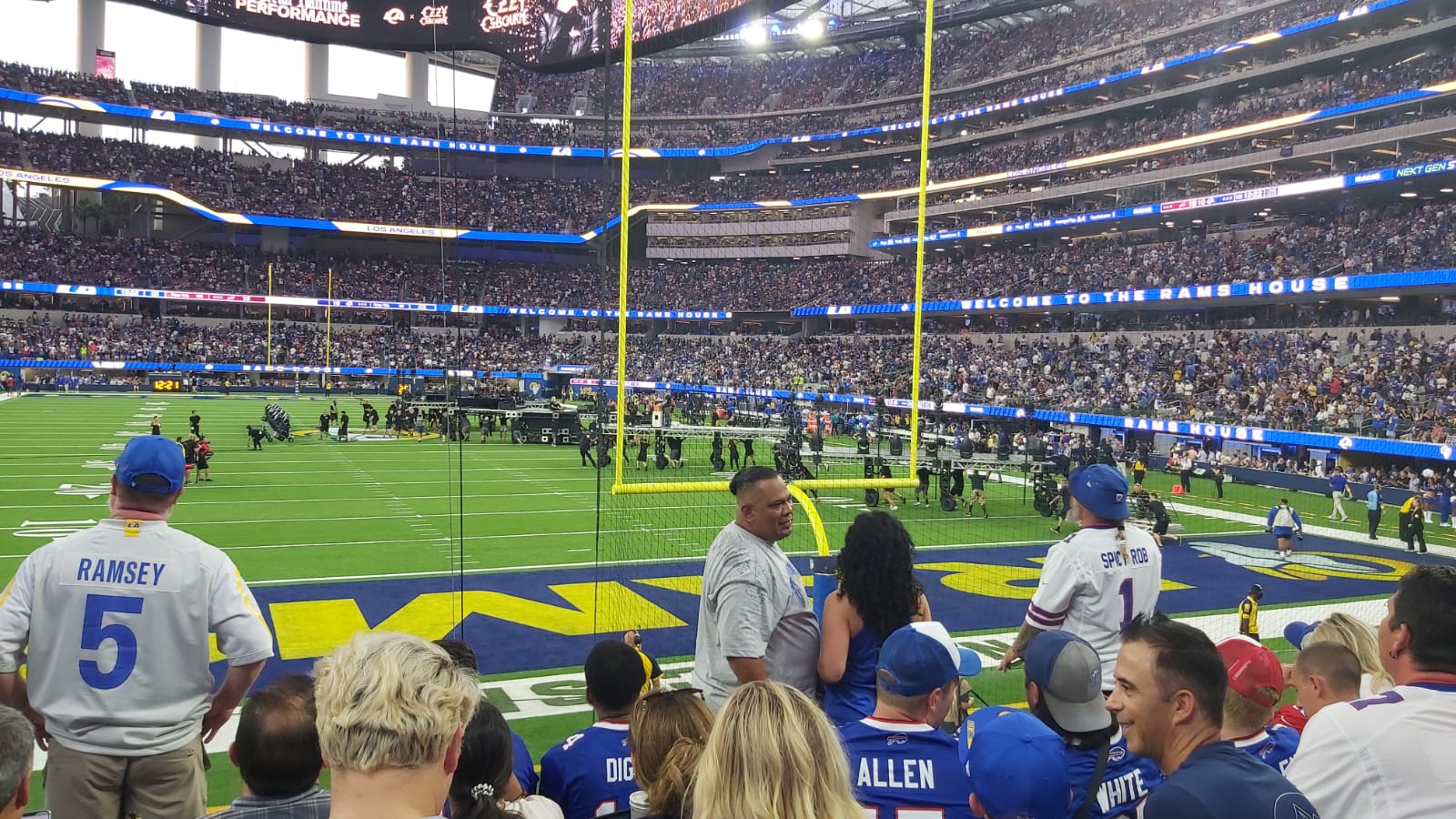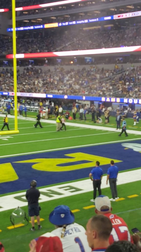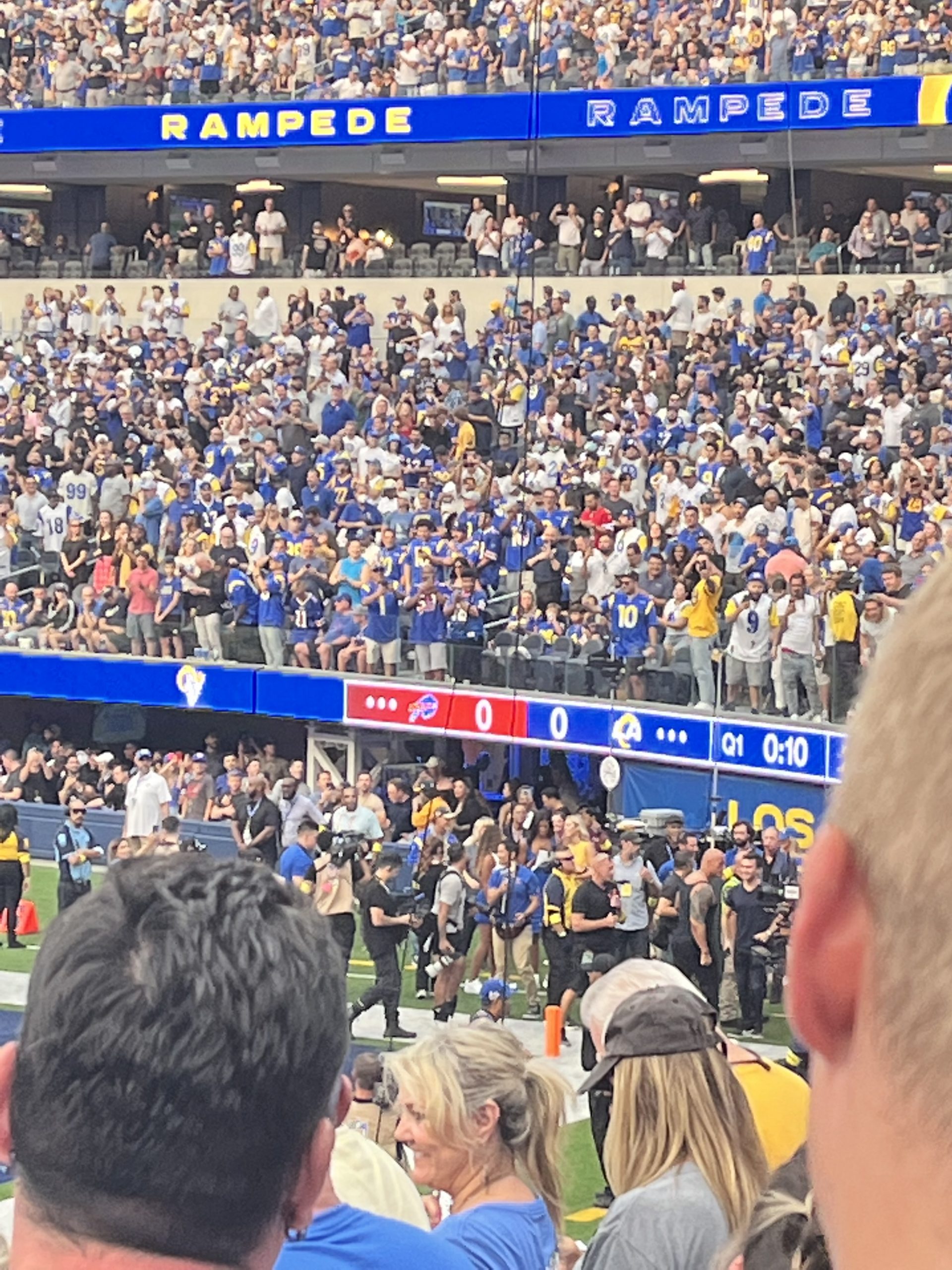 Wir blieben bis zum Schluss und feuerten die Rams an, dafür riefen wir laut, das war auch nötig, da wir in einem Bills-Fan dominierten Block saßen (Eigentlich verrückt, da ja die Rams Heimspiel hatten und Buffalo mehrere tausend Kilometer entfernt liegt). Gegen Ende wurde ich sogar in Nahaufnahme auf der Leinwand gezeigt.