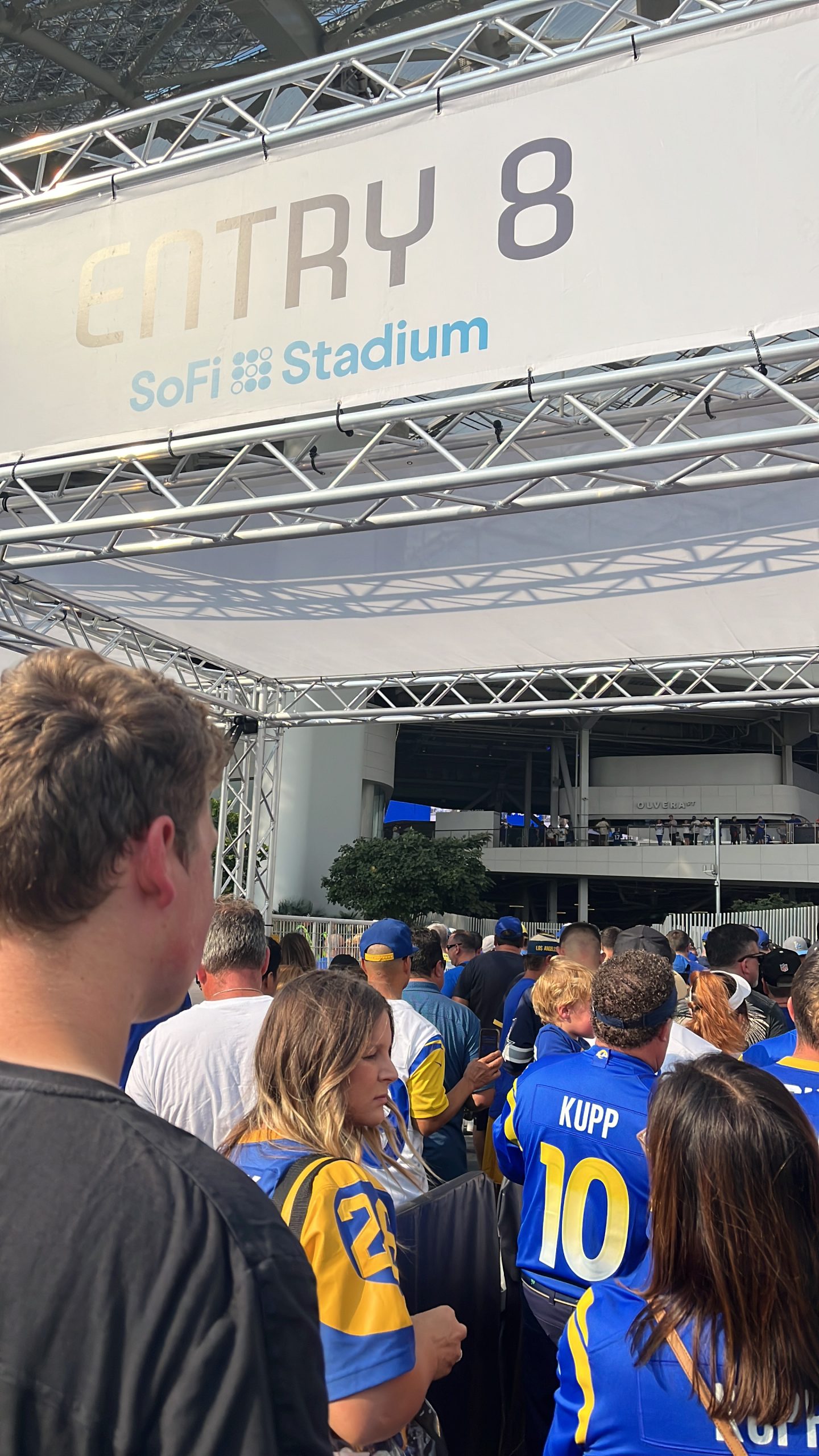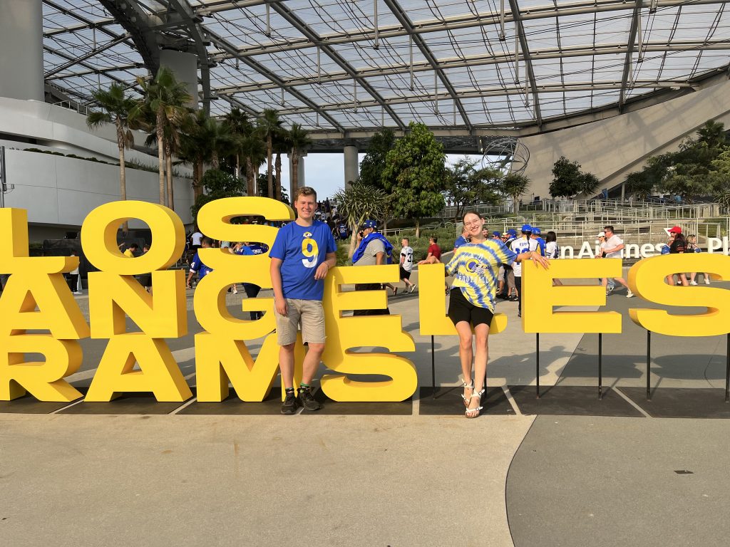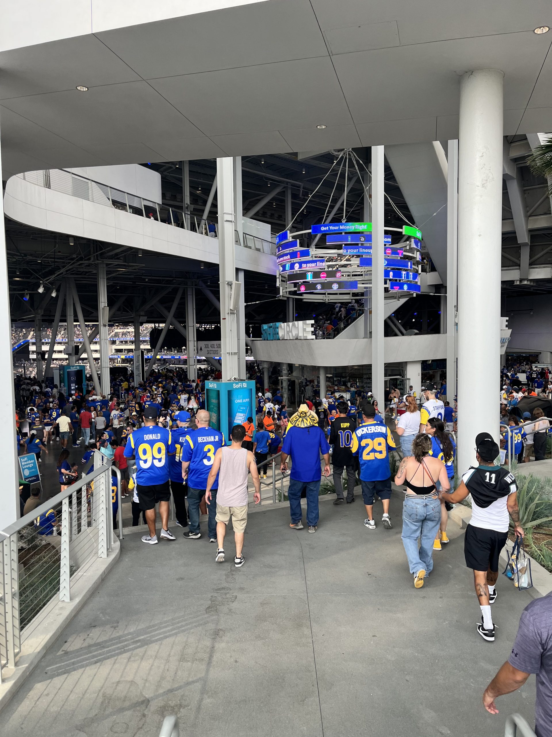 Mittlerweile hatten wir nur noch eine Stunde bis zum Anpfiff. Ben wollte gern noch zum NFL-Shop. Dort kauften wir uns noch zwei Tshirts und machten vor dem LA Rams-Schild ein paar Bilder. Dann hieß es nichts wie los auf unsere Plätze, jetzt waren es nur noch 20 min bis zum Start.