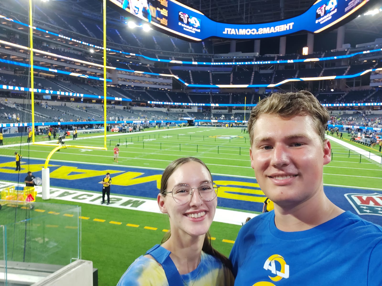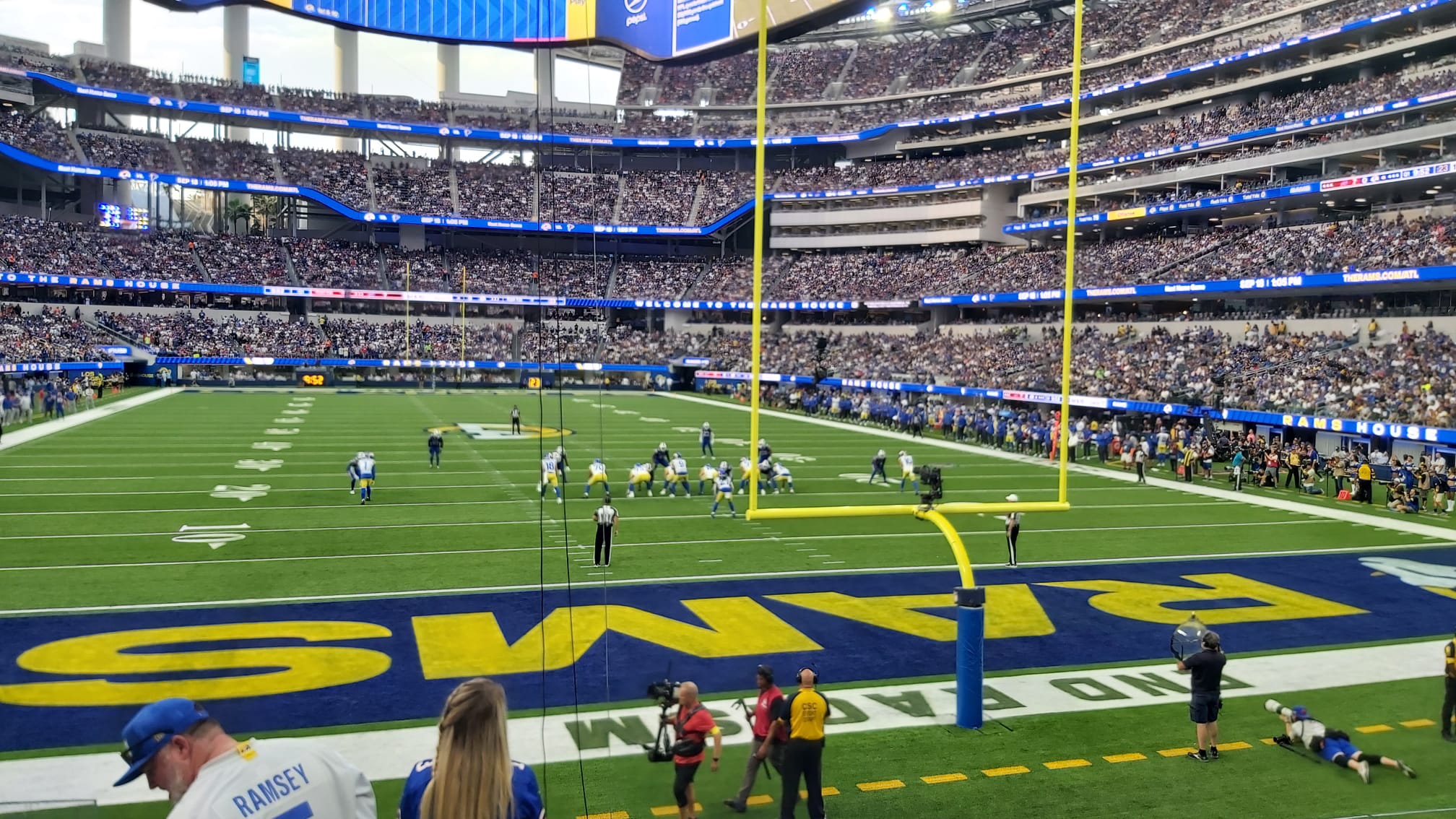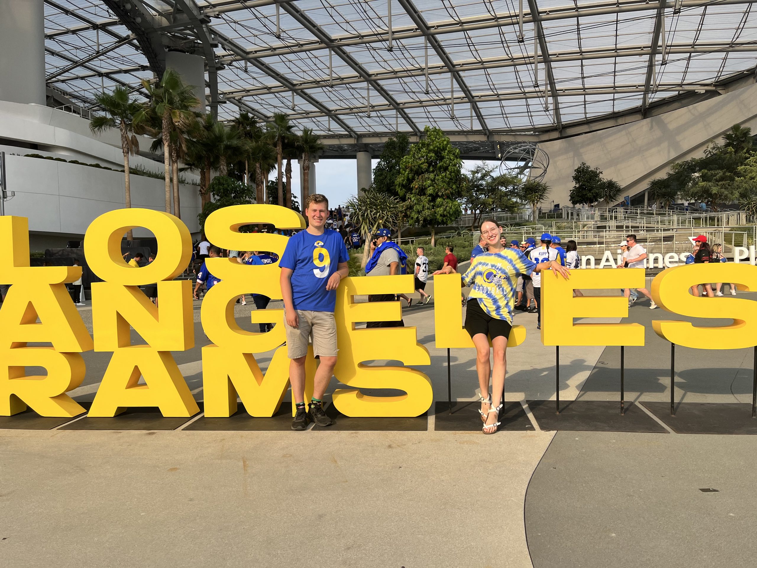 Mittlerweile hatten wir nur noch eine Stunde bis zum Anpfiff. Ben wollte gern noch zum NFL-Shop. Dort kauften wir uns noch zwei Tshirts und machten vor dem LA Rams-Schild ein paar Bilder. Dann hieß es nichts wie los auf unsere Plätze, jetzt waren es nur noch 20 min bis zum Start.