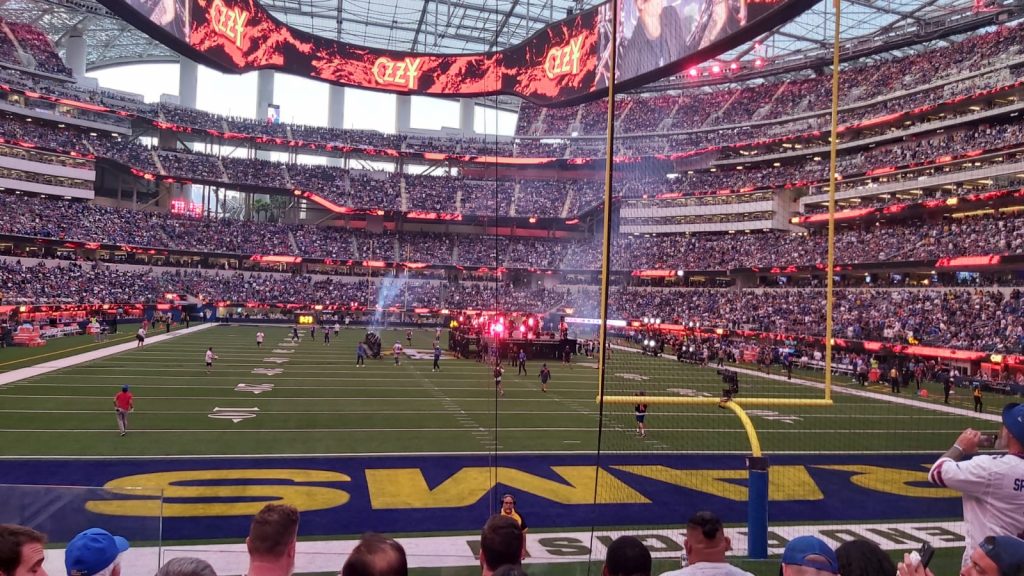 Das Highlight war die Halbzeit-Pause. Dort bauten eine Menge Leute innerhalb von 2 Minuten eine komplette Bühne, mit allem was dazu gehört auf. Dann kam eine Band und als die Musik los ging, kam Ozzy Osbourne auf die Bühne. Unglaublich. Ben und ich waren geplättet. Ozzy performte zwei Lieder und verschwand anschließend wieder im Boden der Bühne. Dann wurde die Bühne innerhalb von zwei Minuten wieder abgebaut und das Spiel ging weiter.
