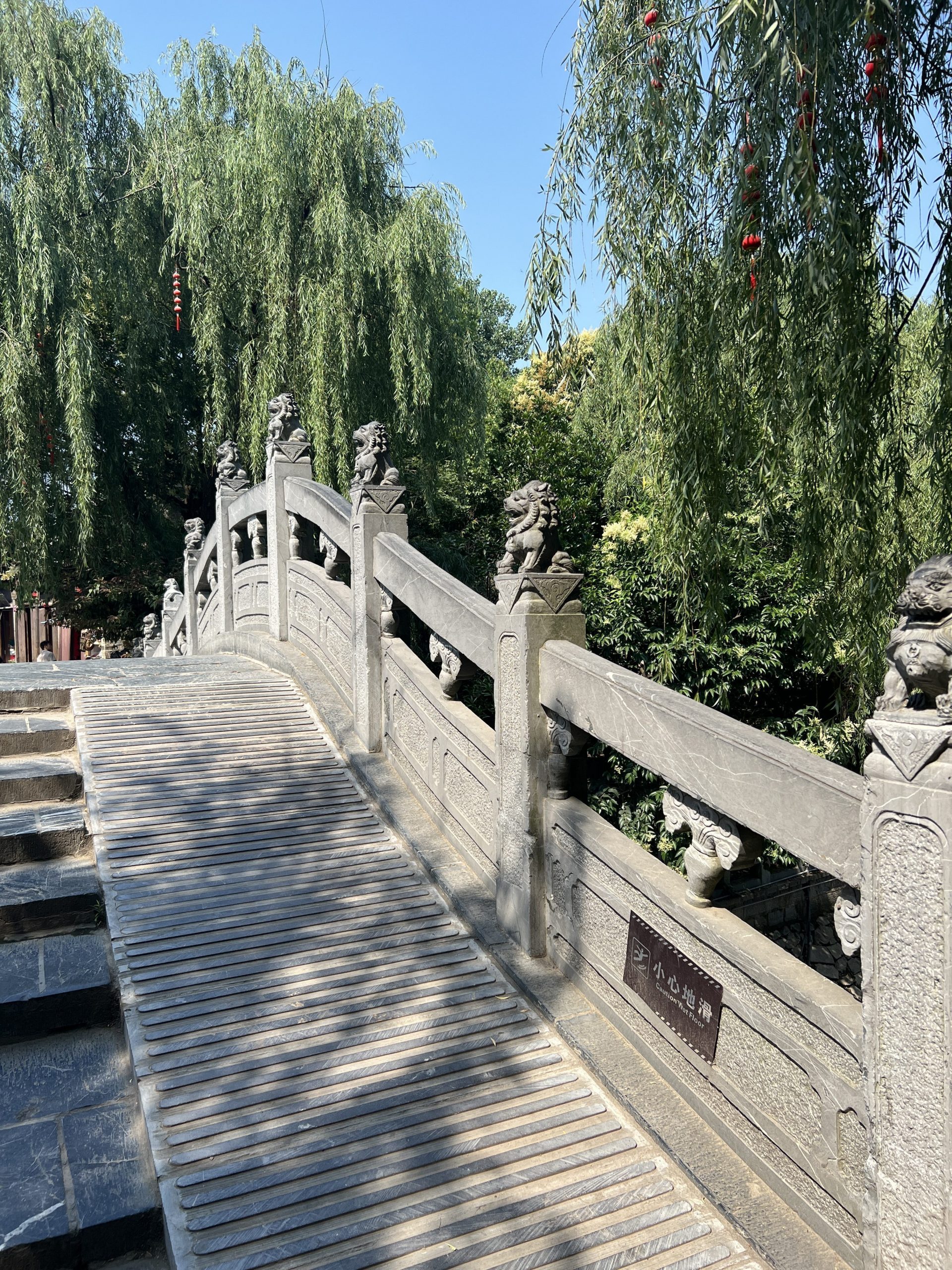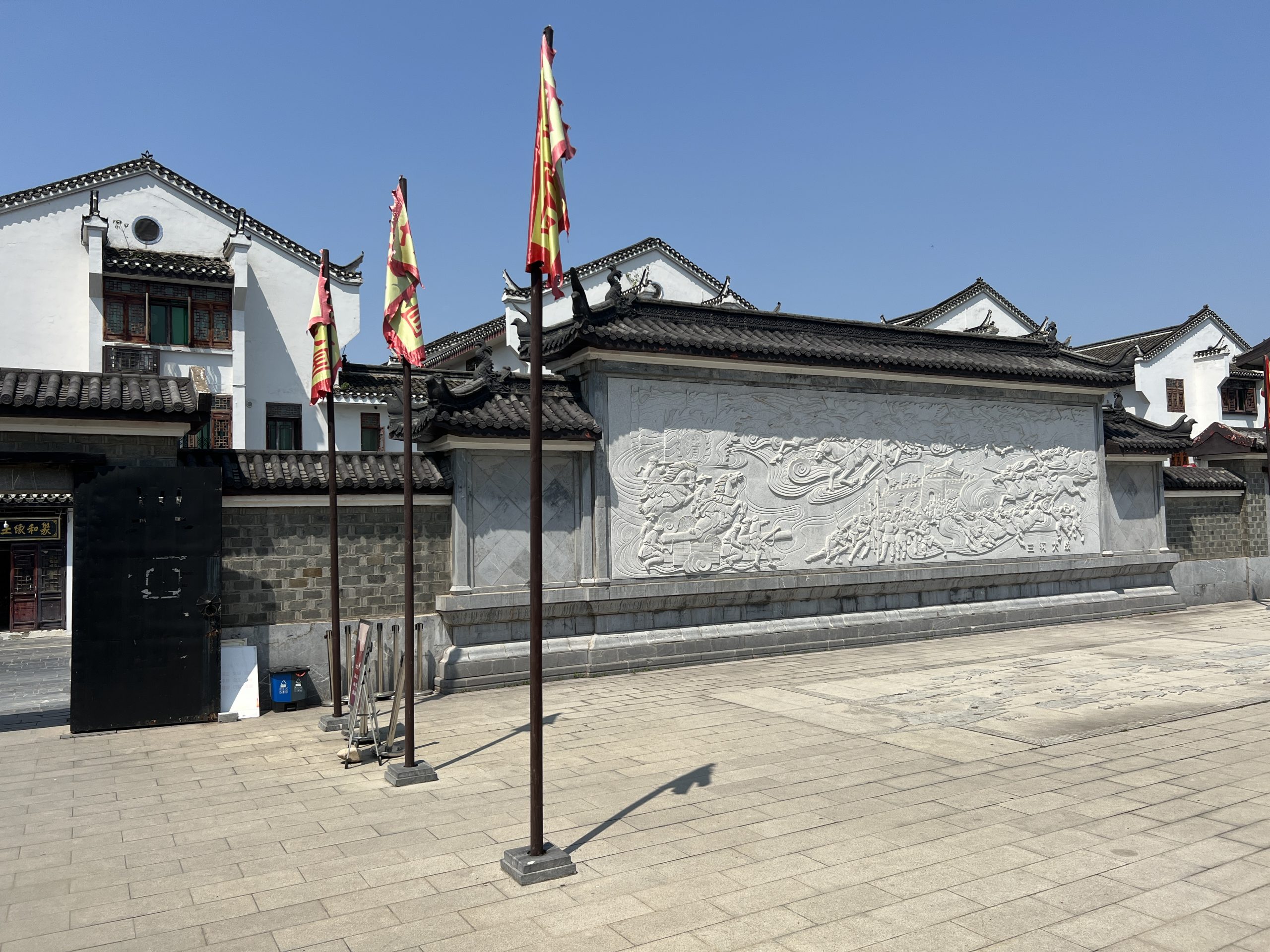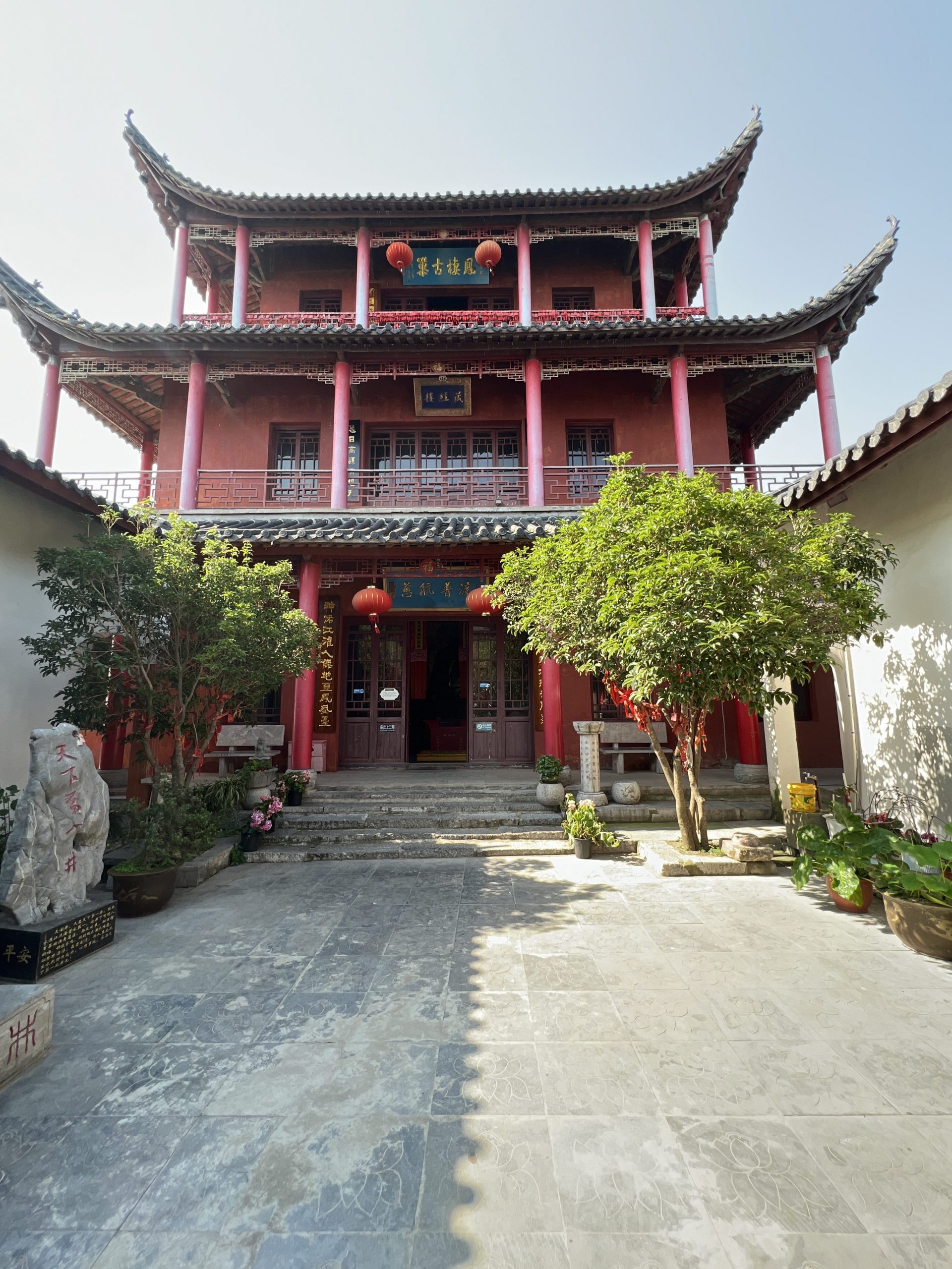 Auf dem Weg dorthin halten wir in Sanhe Ancient Town. Dieser Stadtteil hat eine 2500 jährige Geschichte und entstand am früheren Flusslauf des Yangtze River. Im chinesischen heißt die Stadt Three Rivers nach den Xiaonan, Hangfu und Fengle Flüssen, welche durch die Stadt flossen. Viele der Gebäude sind aus der Ming und Ding Dynastie. Es ist sehr beeindruckend, diese Gebäude zu sehen. In manchen befinden sich auch kleine Museen. In fast allen kann man Süßigkeiten, Souvenirs, Schildkröten, traditionelle Kleider usw. kaufen. Es macht richtig Spaß hier entlang zu laufen.