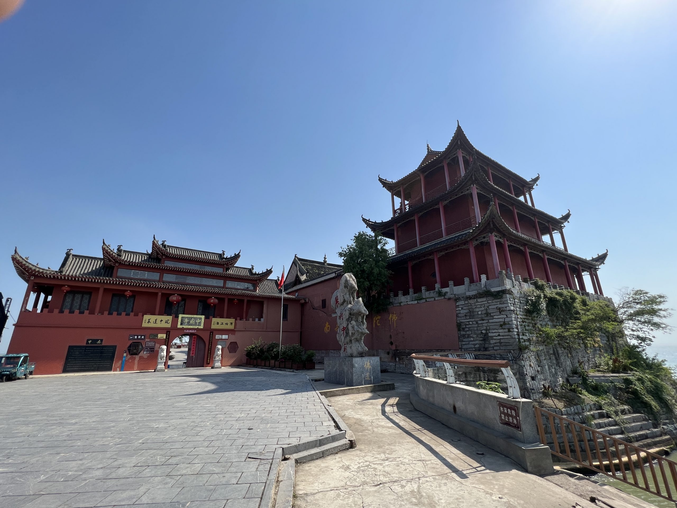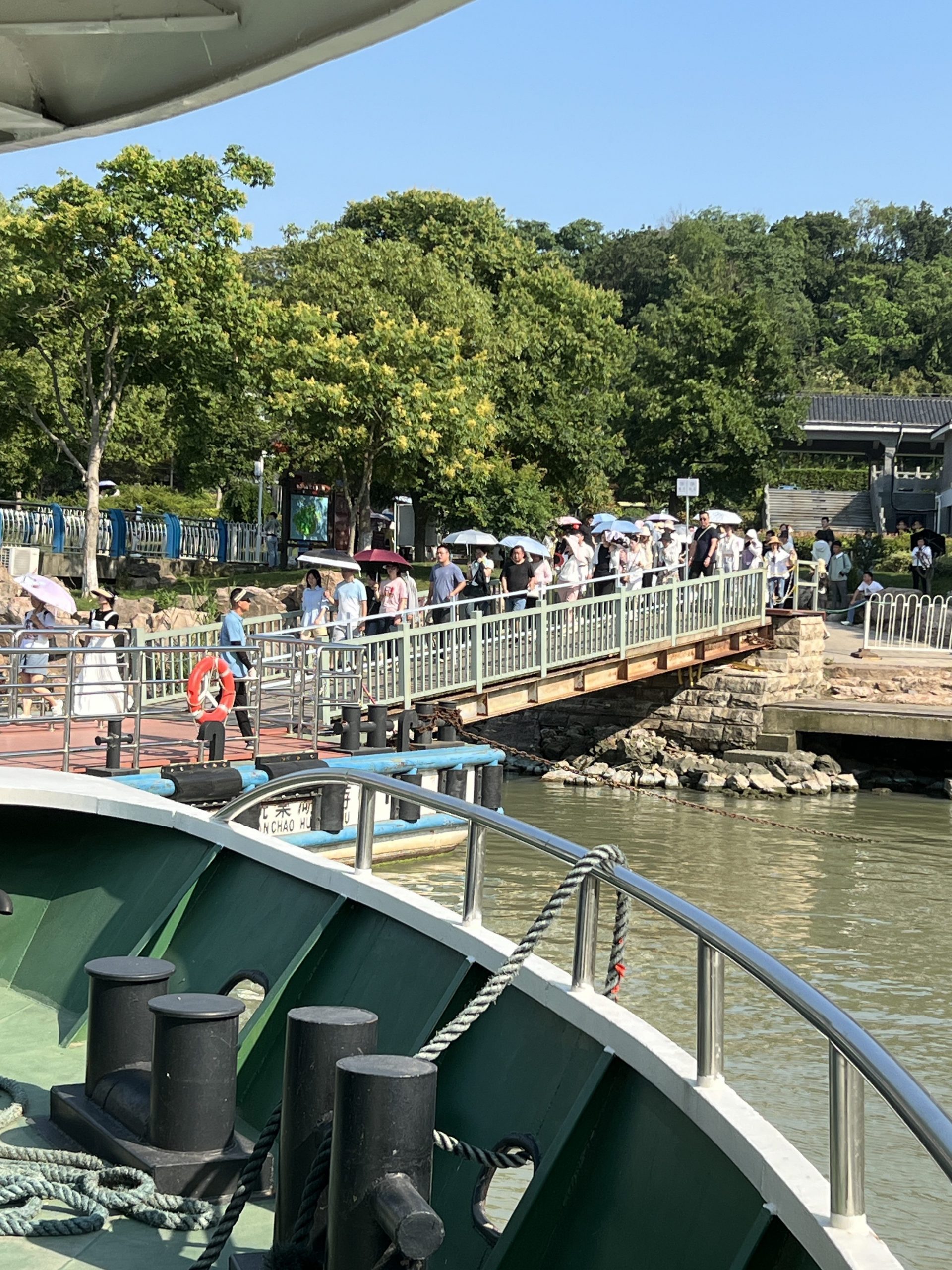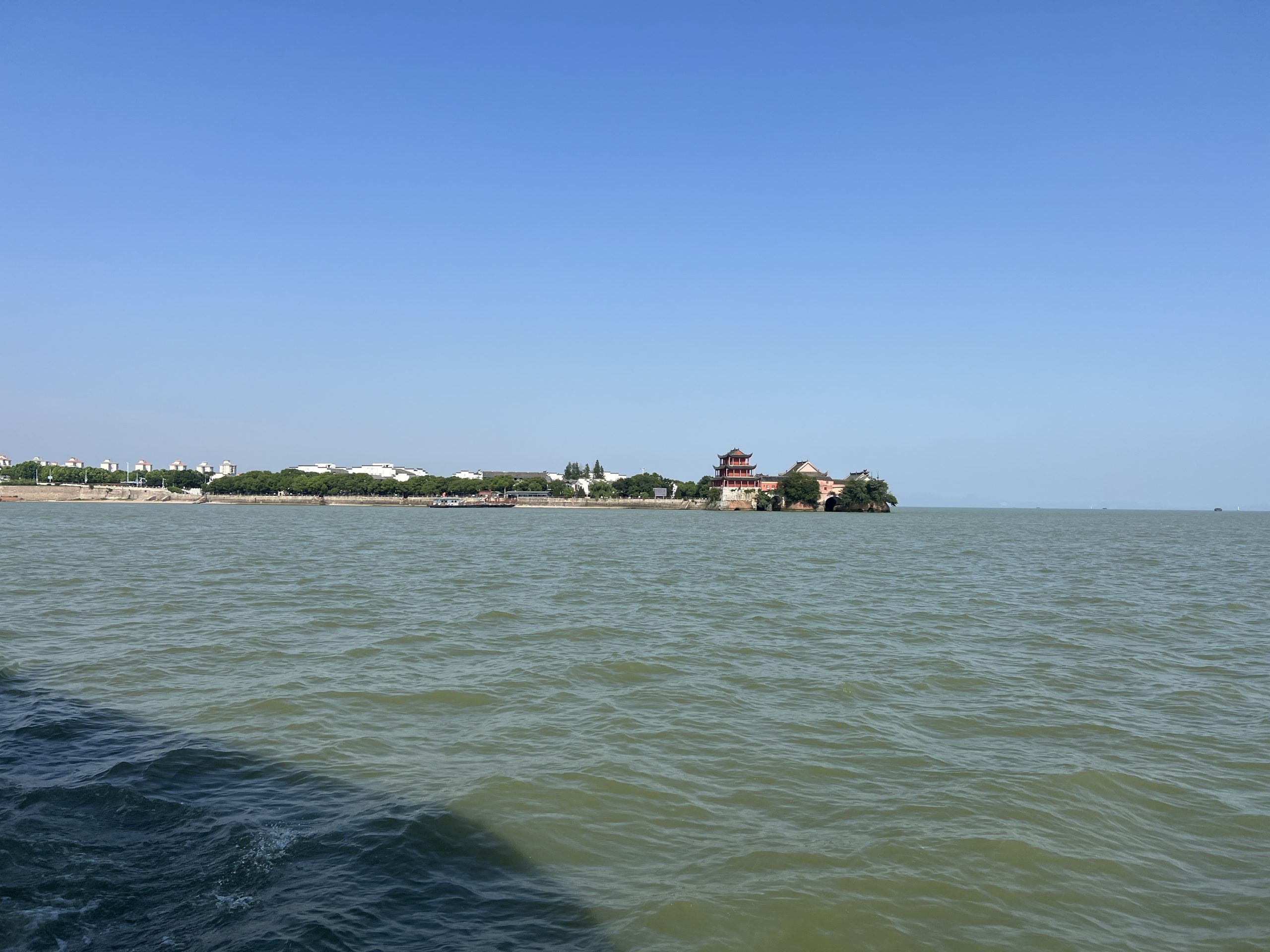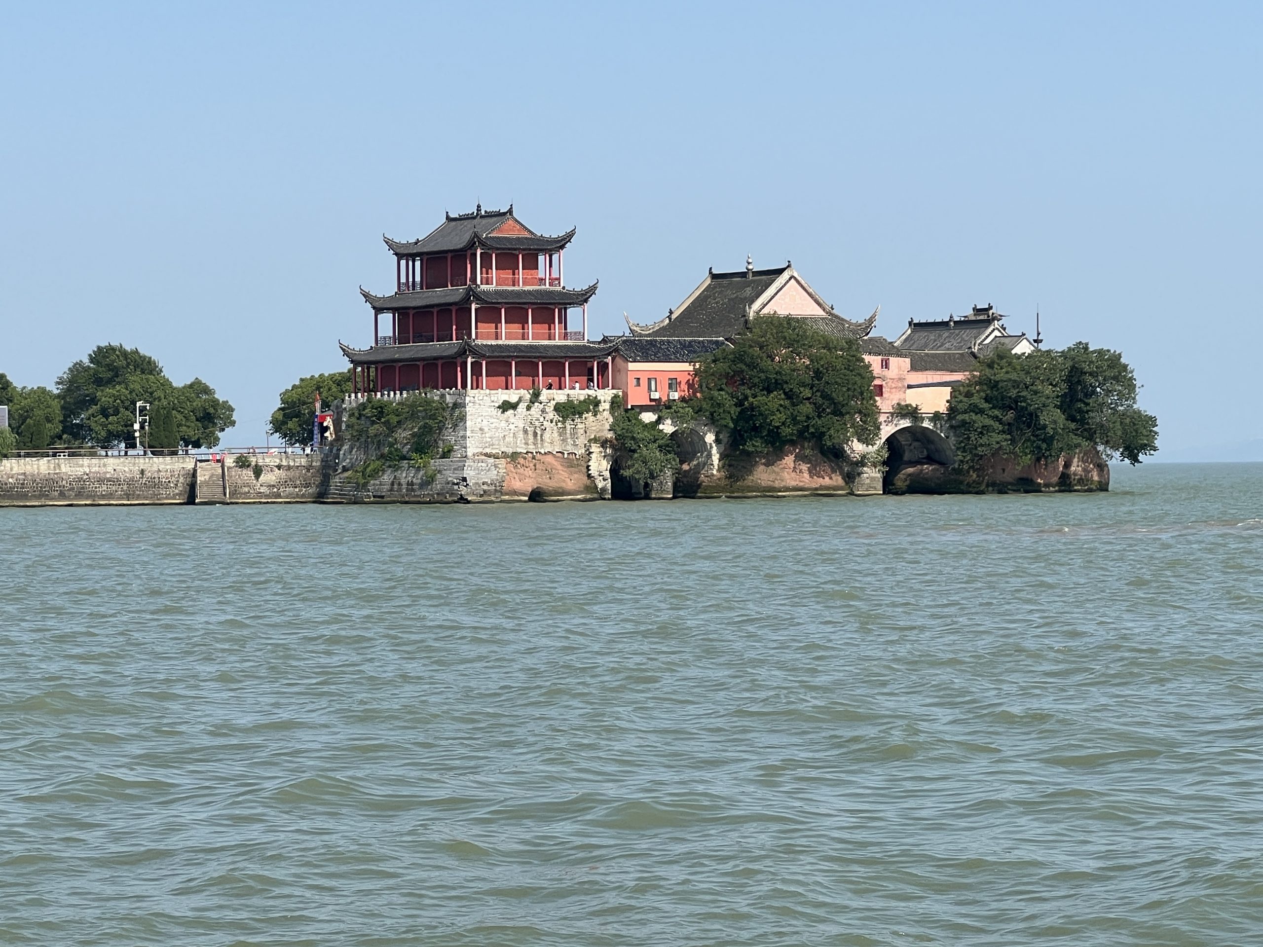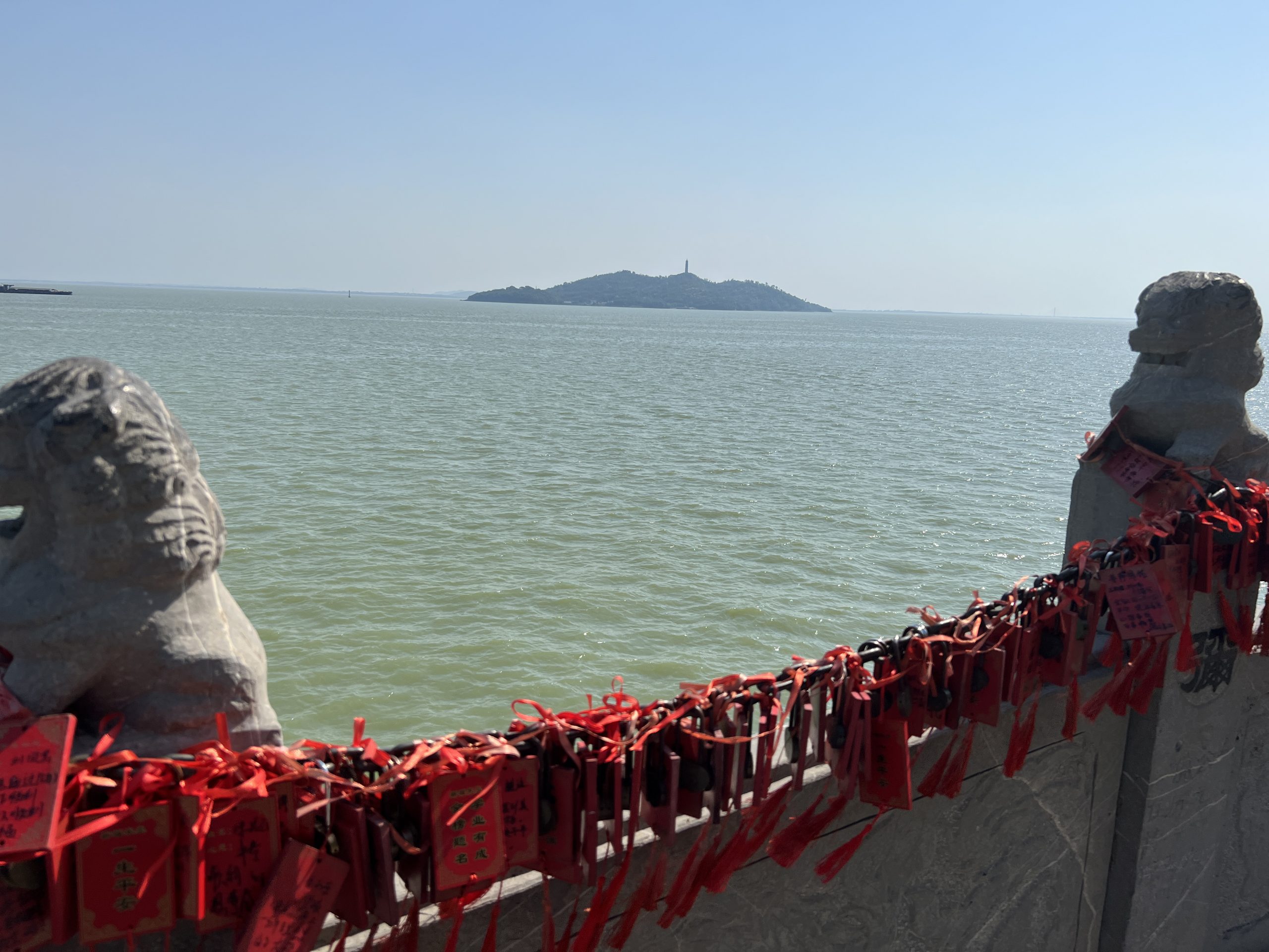 Gleich neben dem Tempel ist eine Bootsanlegestelle. Von hier aus kommt man zu einer der zwei Inseln im Chao Lake – Mushand Island. Die Legende besagt, dass einst eine Stadt namens Chaozhou existierte, welche voll mit Korruption und Bosheit war. Ein weißer Drache wurde ausgesendet, um alle auszulöschen. Doch er traf eine Frau namens Jiao und deren Tochter, welche gute Menschen waren. Deshalb sicherte er sie vor der Zerstörung, indem er sie in zwei Inseln verwandelte, welche im Wasser sitzen.
