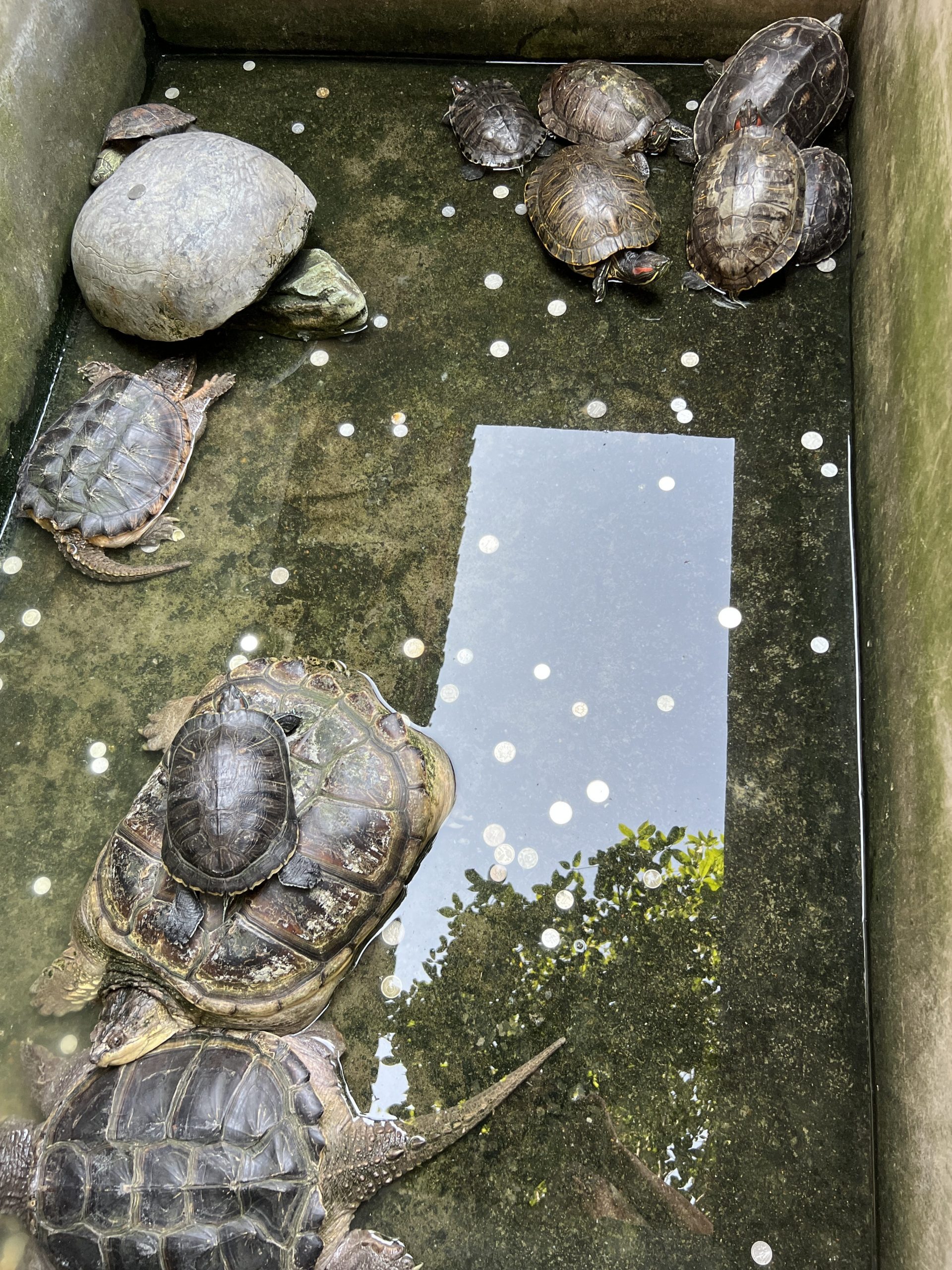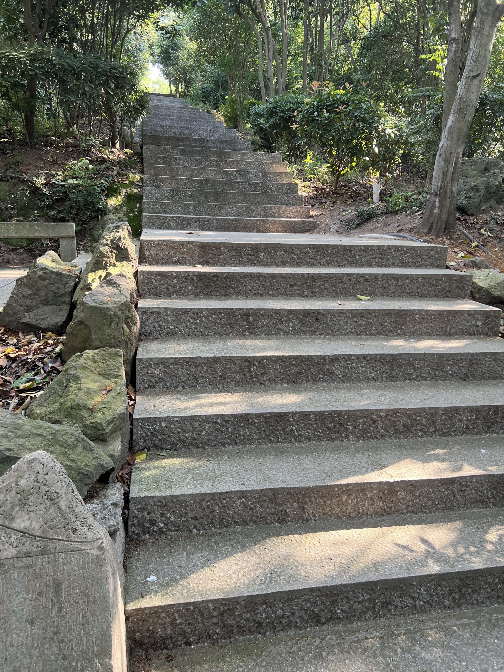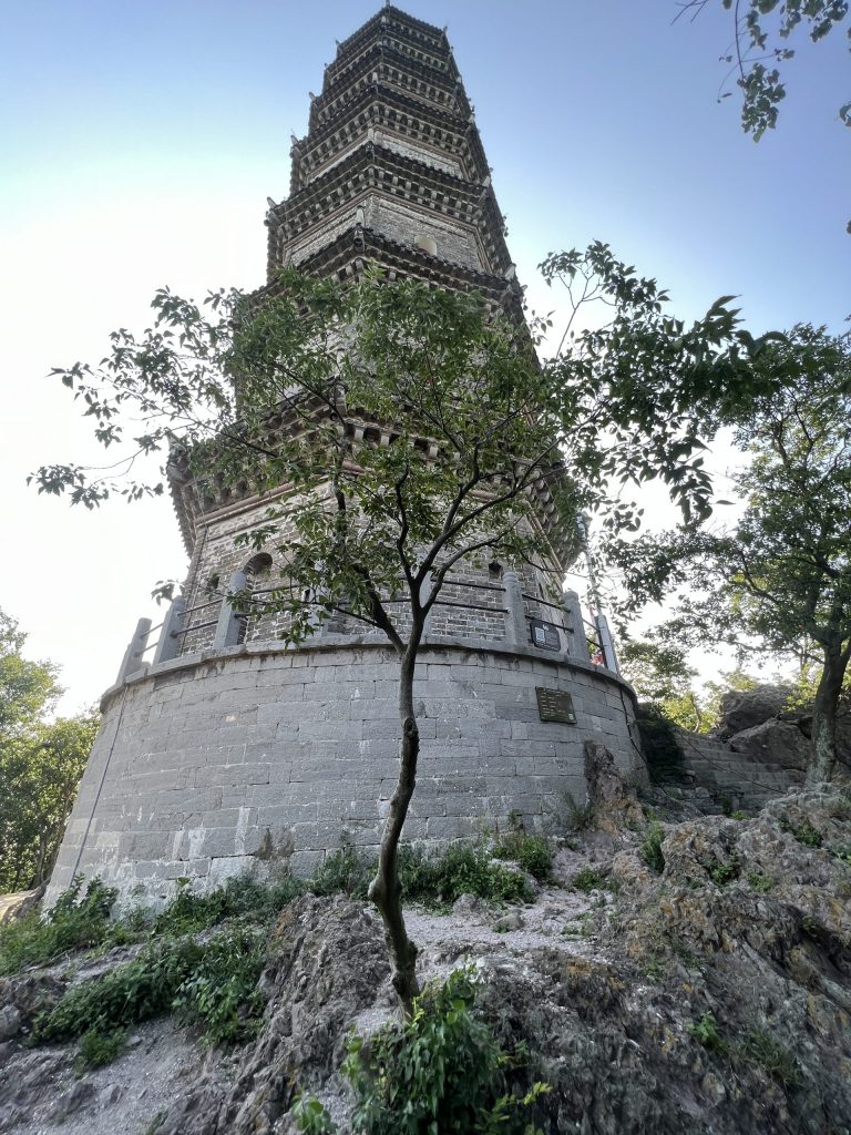 Auf der Insel führten uns viele, viele Stufen bergauf zu einem 400 Jahre alten Tower. Er beinhaltet 25 Steintafeln und 802 buddhistische Leitfäden. Nach ca. 30 Minuten bergauf und Treppen steigen, haben wir den Turm erreicht. Erleichtert werden sollten uns der Weg durch anspornende Lieder, die aus tierähnlichen Lautsprechern erschallen. Leider wurde er gerade umgebaut und war deshalb geschlossen. Also machten wir ein paar Bilder und stiegen wieder hinab.