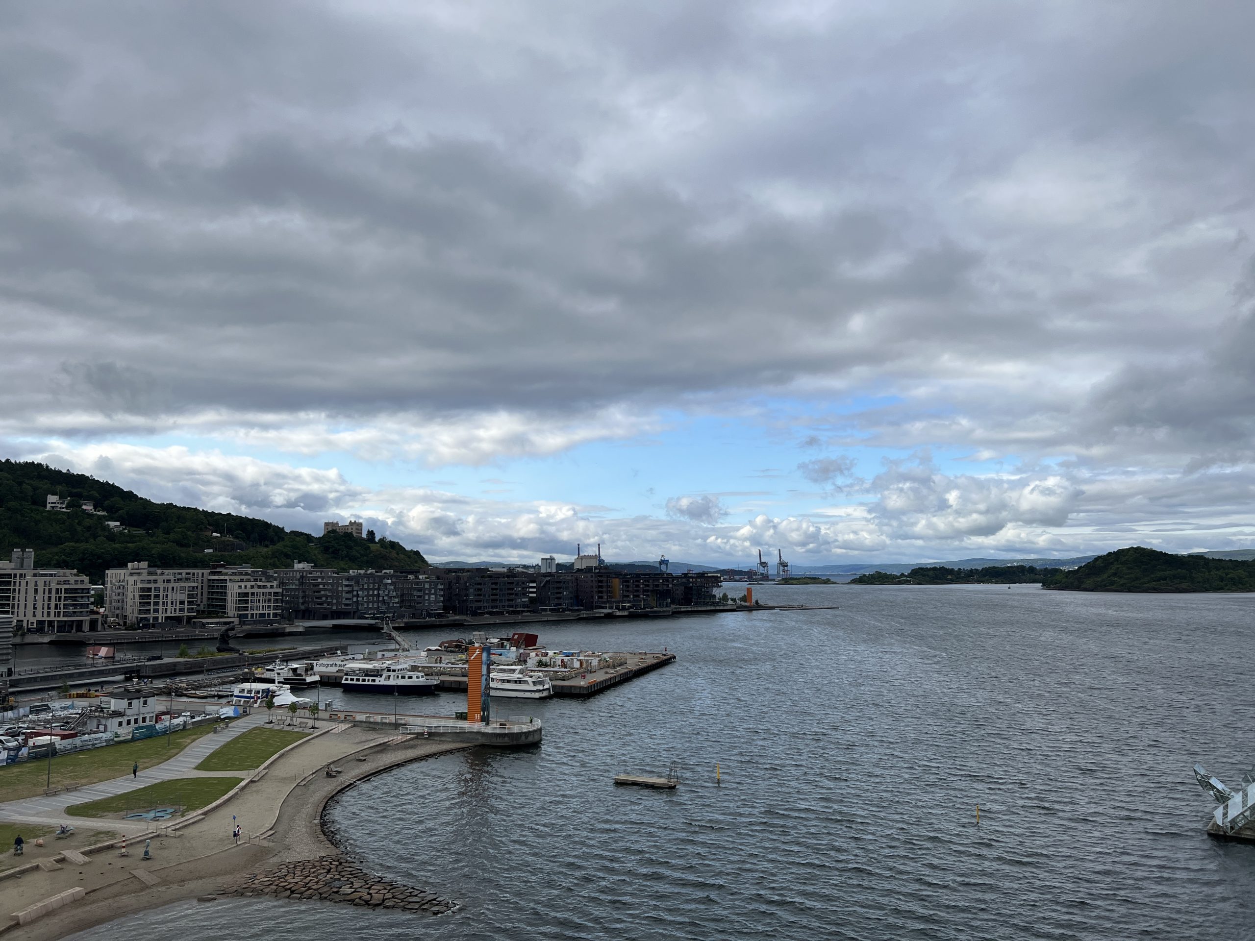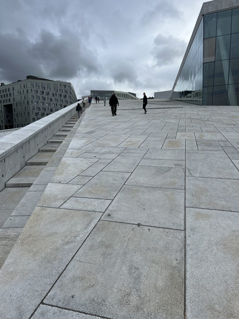Dann fahren wir mit der Straßenbahn direkt ins Zentrum. Wir starten mit dem Besuch der Oper. Nein, wir gehen nicht rein, sondern auf’s Dach. Es ist langgezogen bis nach unten und wenn man oben angekommen ist, hat man eine sehr schöne Aussicht über den Hafen. Bis die ersten Kreuzfahrtgäste hier ankommen, ist es ruhig. Dann machen wir uns aus dem Staub.