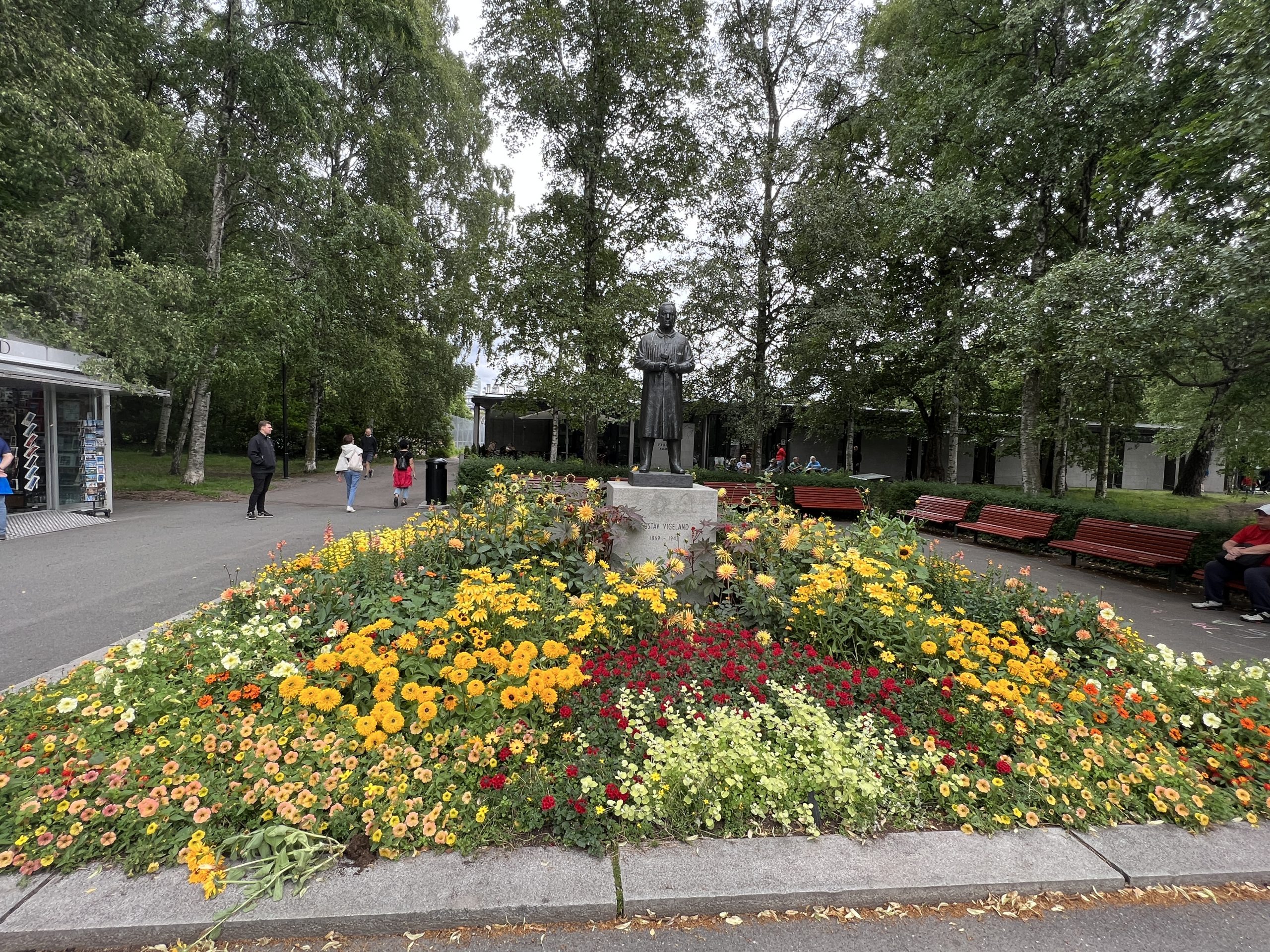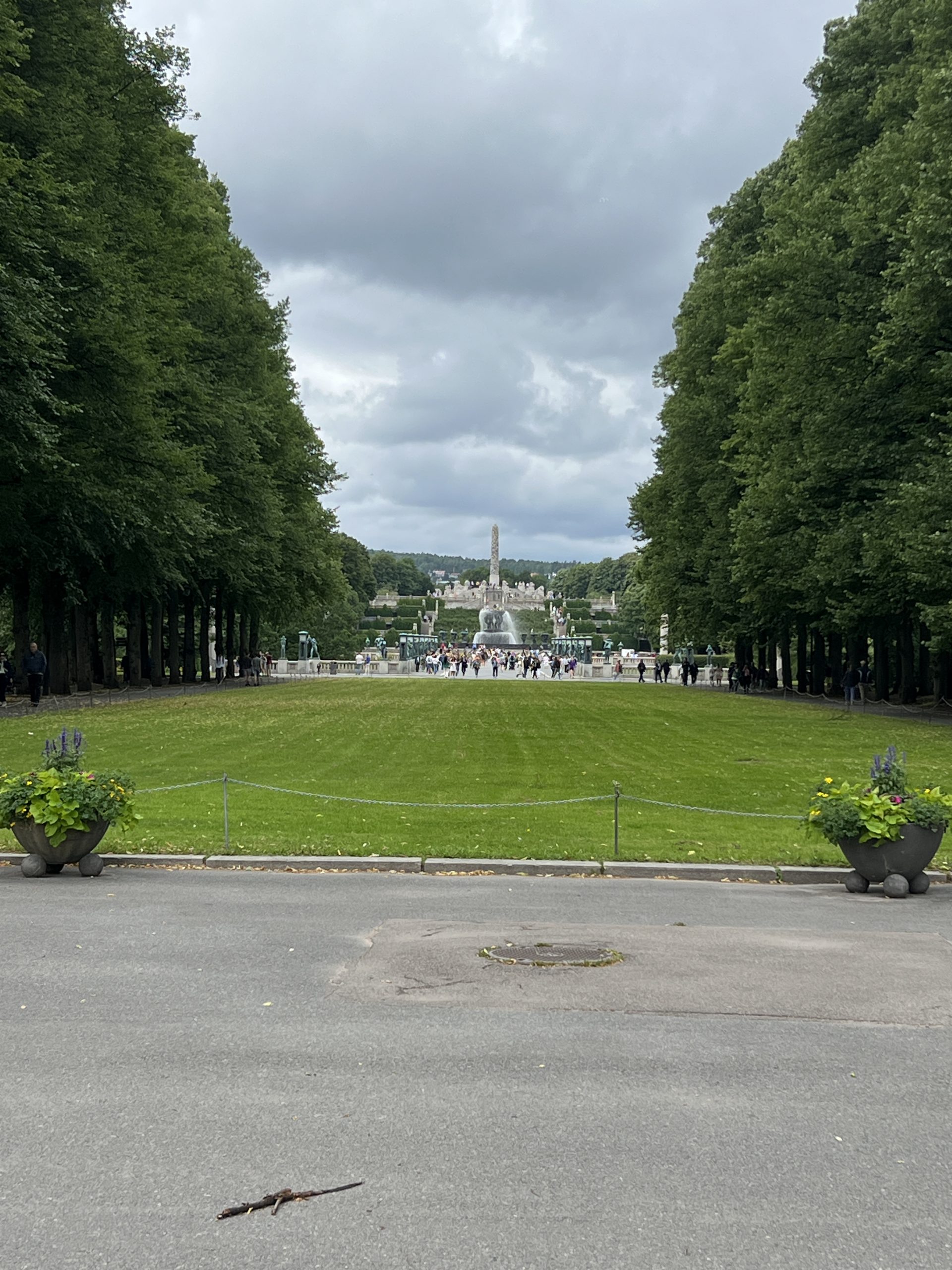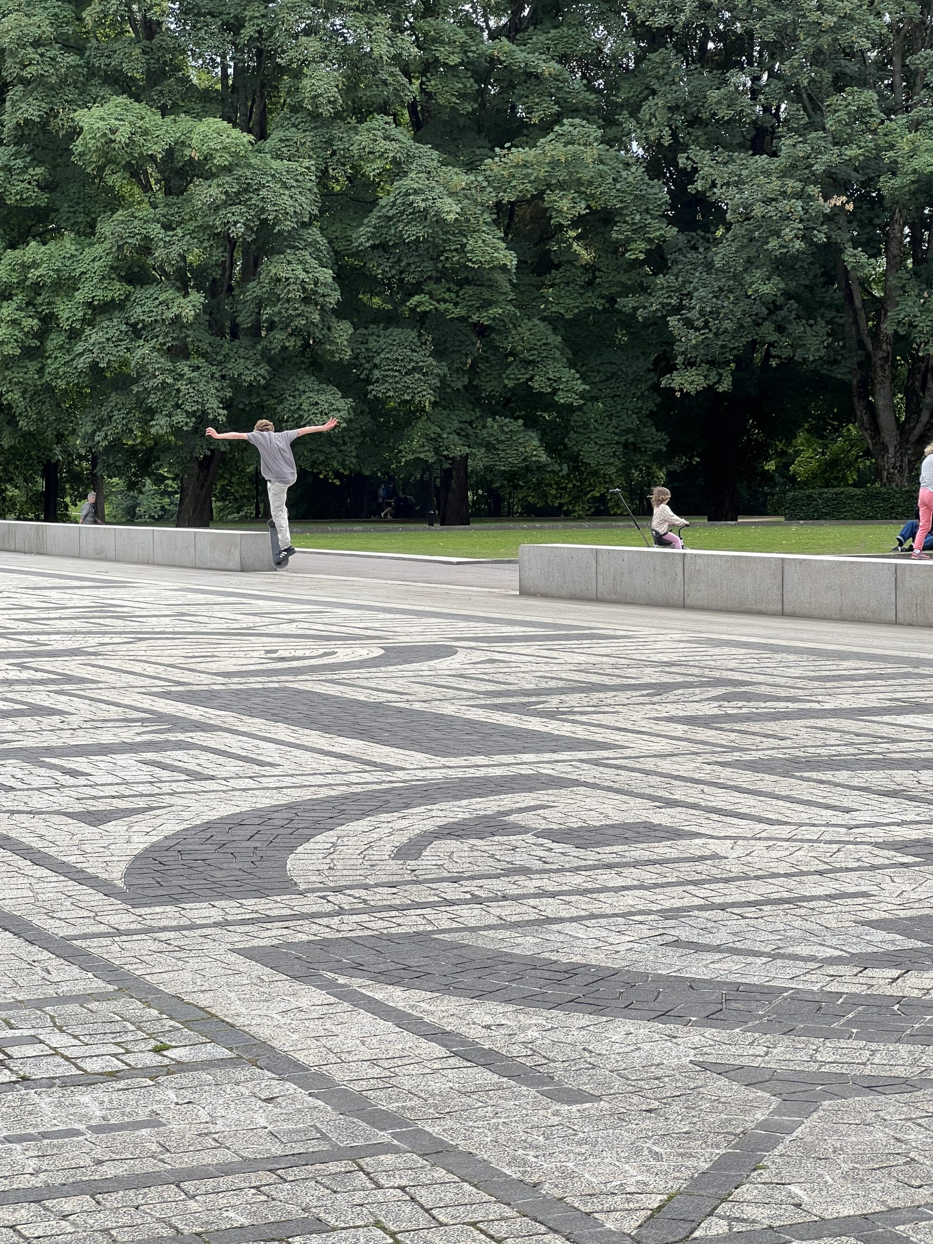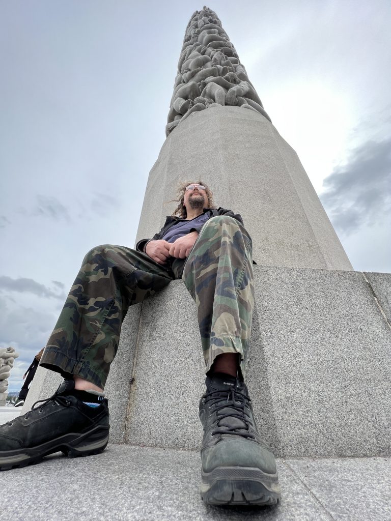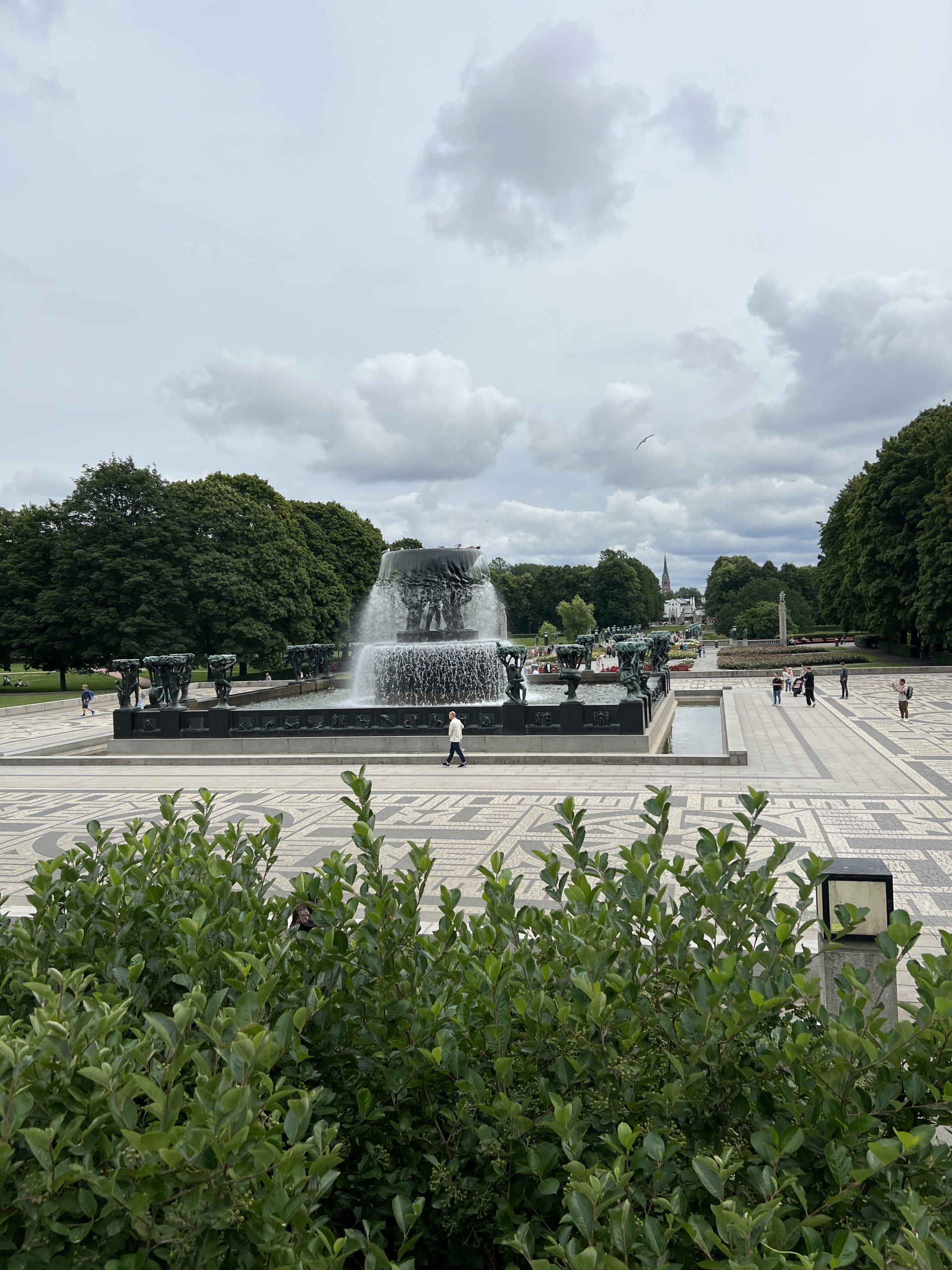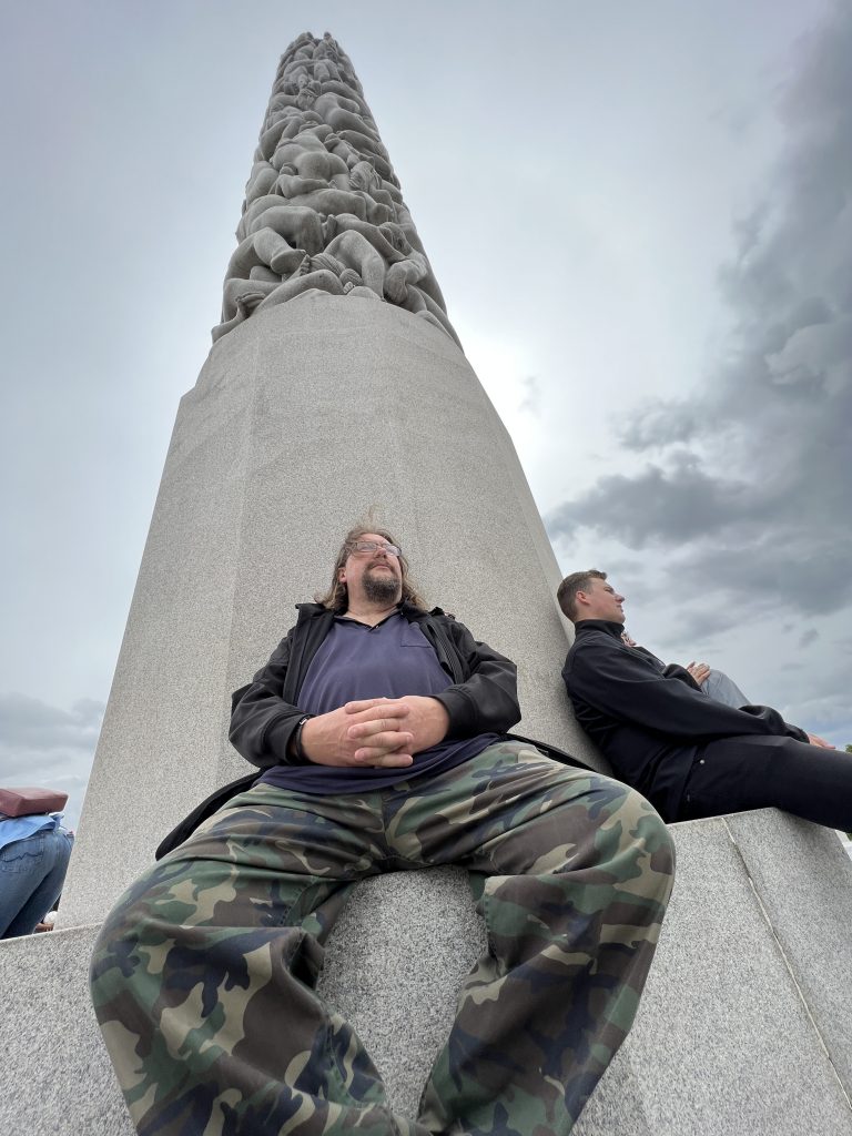 Der Skulpturenpark ist ca. 800 Meter lang und 800 Meter breit. Über 200 Figuren des Künstlers Vigeland befinden sich hier. Sie beschäftigen sich eigentlich alle mit dem Verhältnis von Männern und Frauen und Kindern. Wir gehen gemütlich spazieren und bestaunen einen Teil der Figuren, aber auch Skatebordfahrer, die versuchen über eine bestimmt 50cm hohe Kante zu springen.