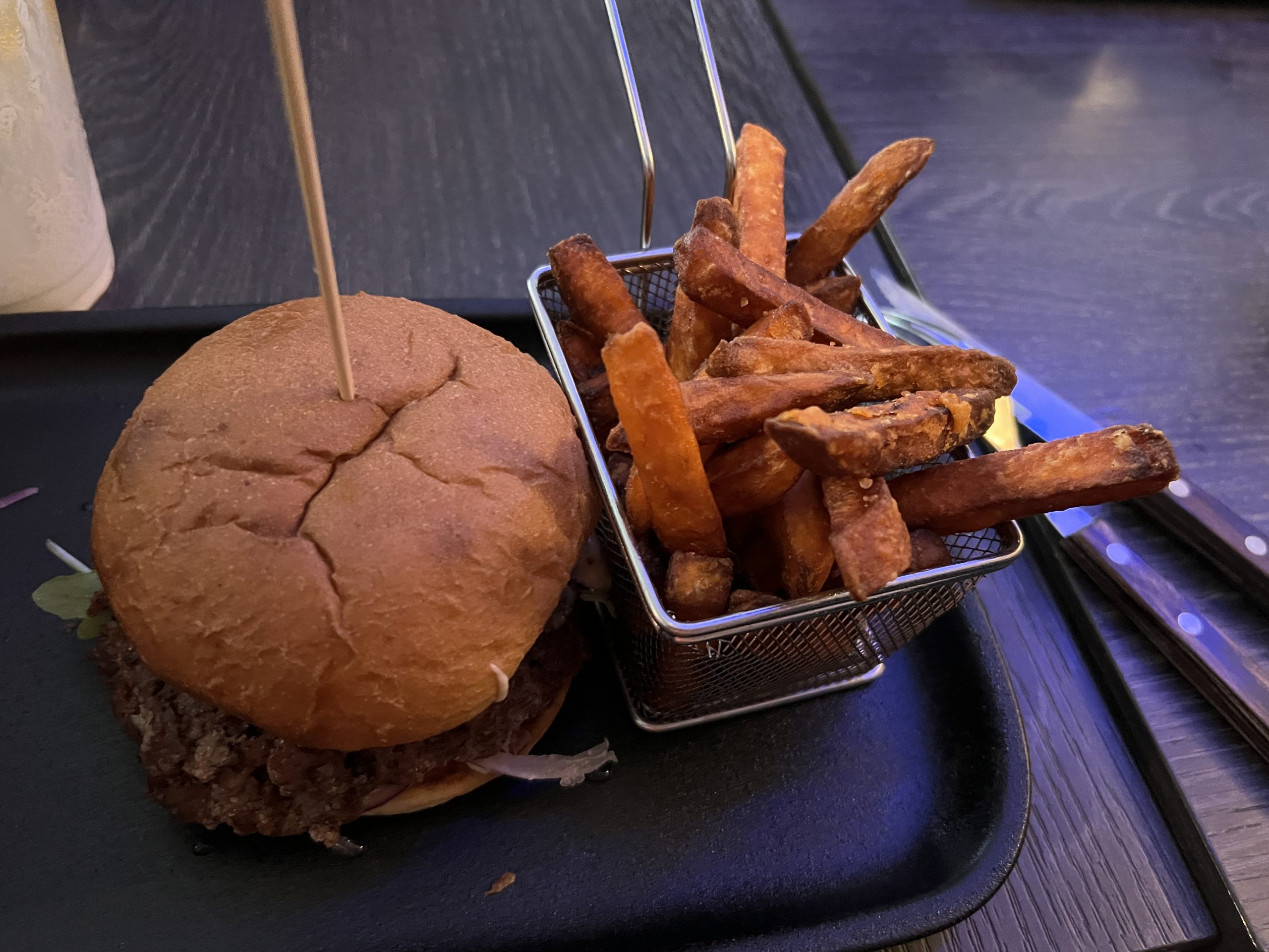 Auf dem Weg dorthin hat Celina einen Burger-Laden mit sehr guter Bewertung und relativ guten Preisen gefunden. Also steuern wir ihn an.
