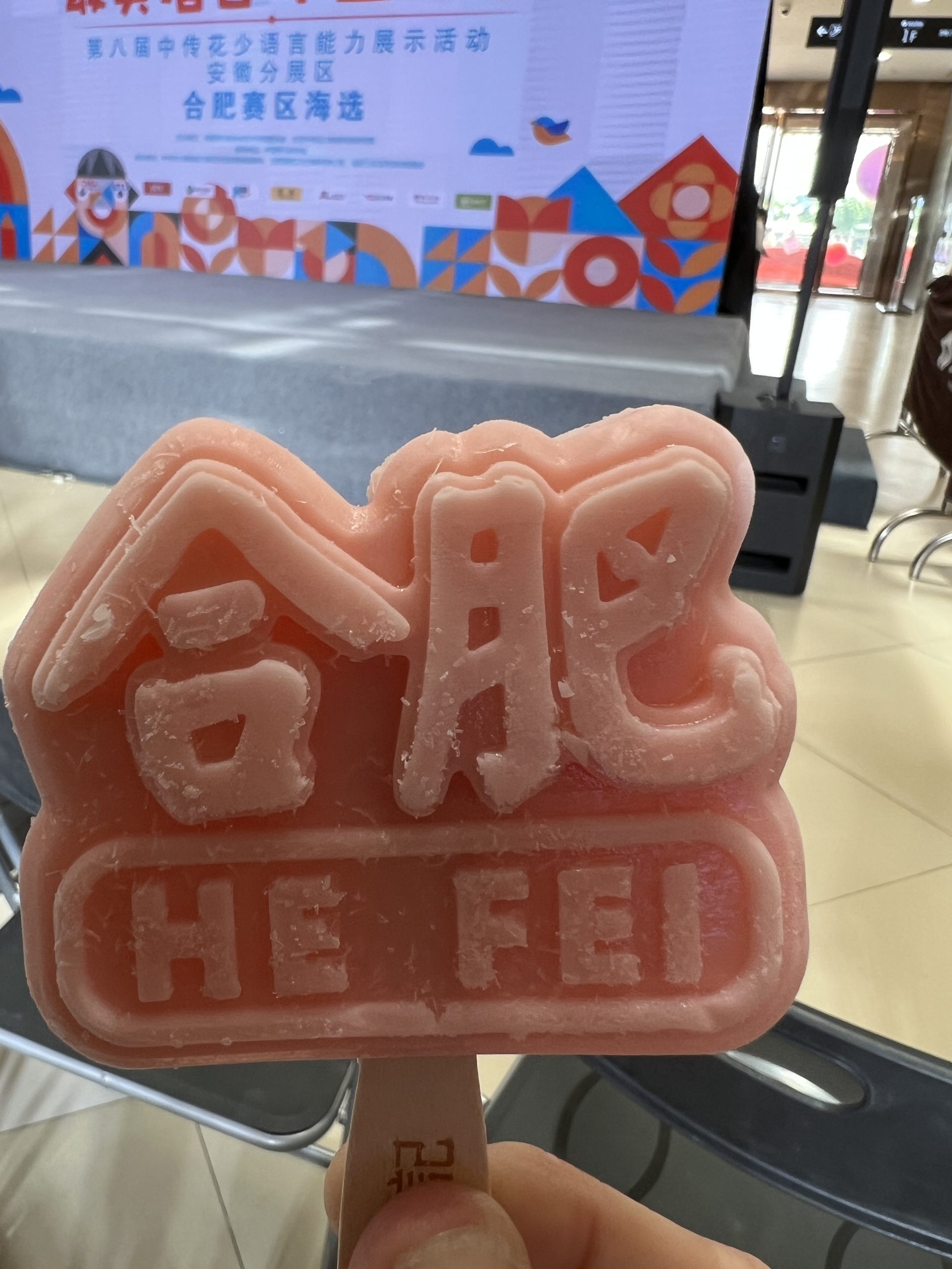 Als wir nach dem Einkaufen wieder am Ausgangspunkt ankamen, konnte Hefei-Eis erstanden werden. Wir hätten gern mit Alipay bezahlt, aber es kamen plötzlich Fragen, die wir alle nicht lesen konnten. Da hat uns die Austeilerin das Eis einfach so gegeben. Und es war lecker.