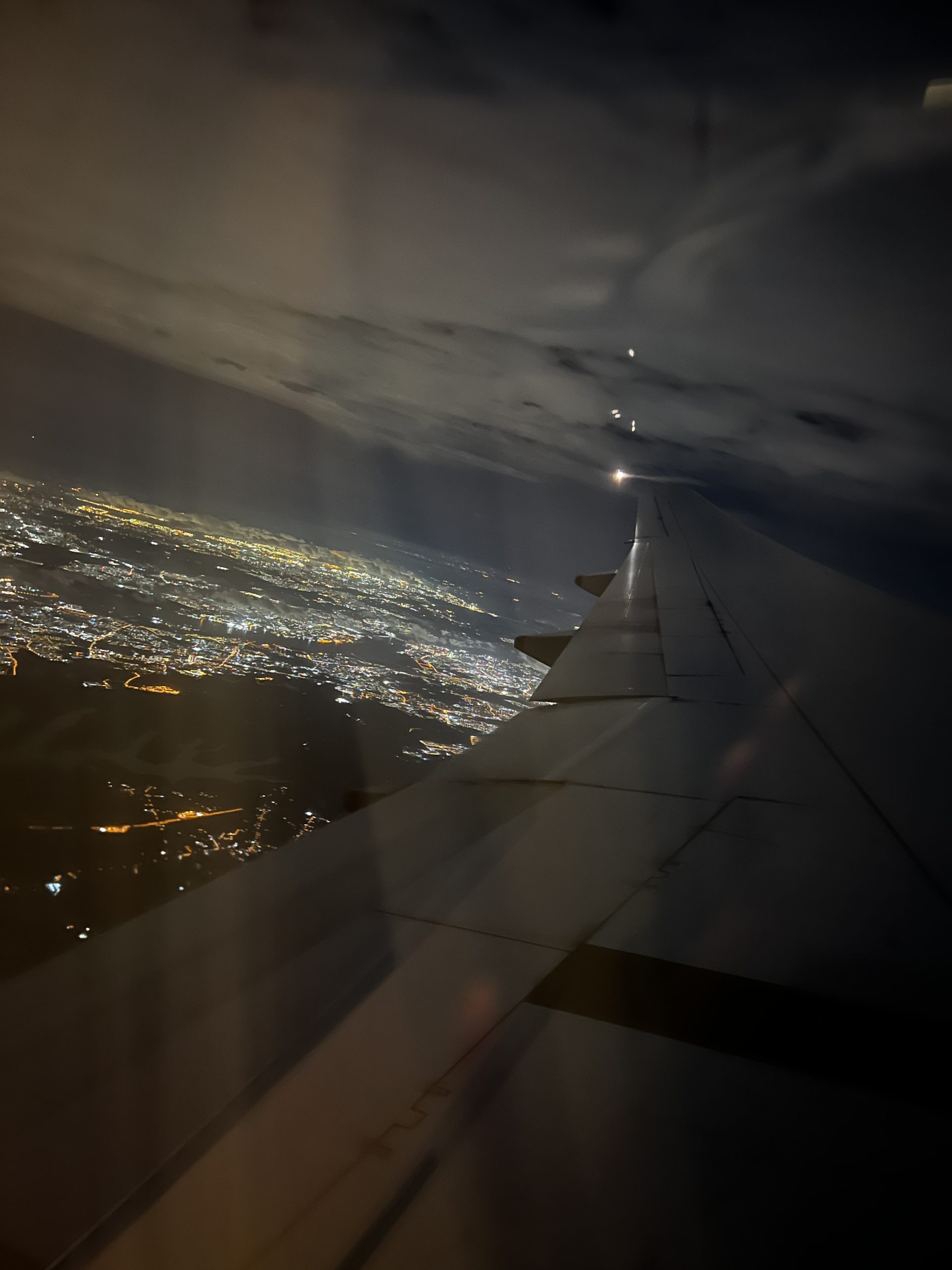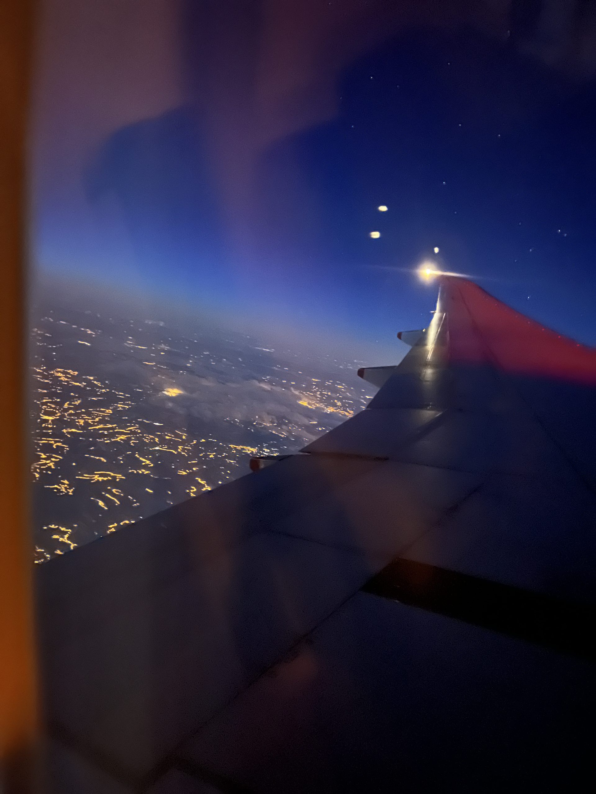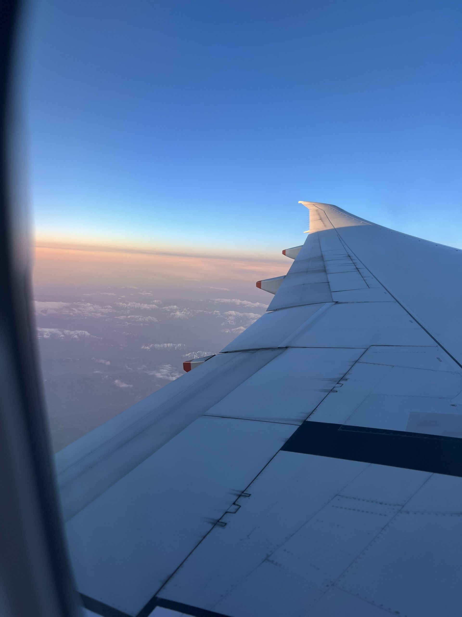 Pünktlich kurz vor 7 landen wir in Frankfurt. Als erstes fallen mir die vielen, vielen Windräder auf. Auch die schneebedeckten Spitzen der Alpen haben wir wieder gesehen.