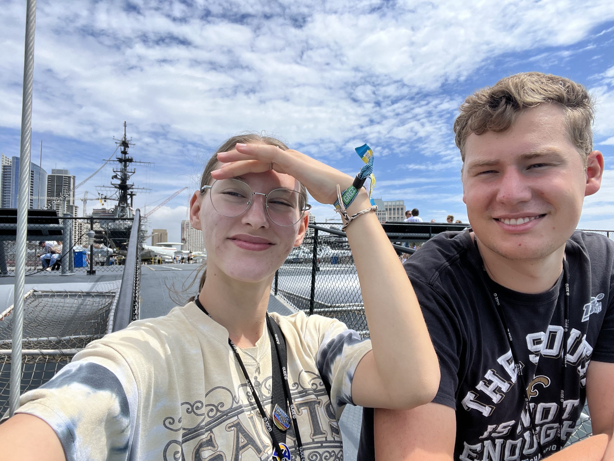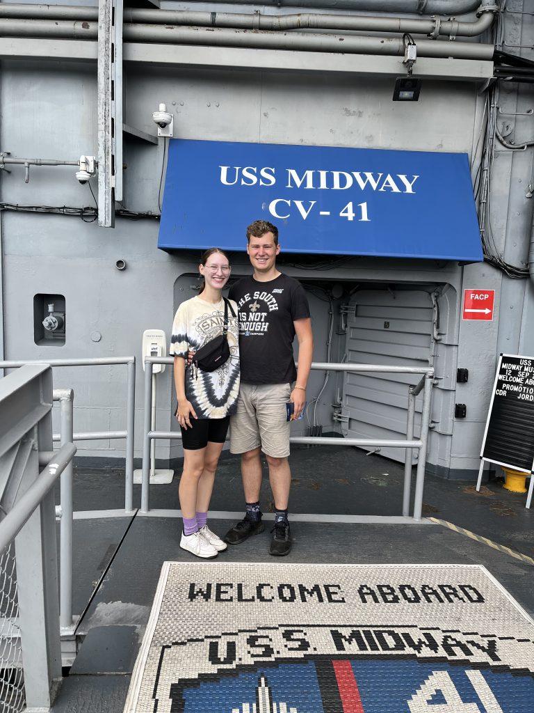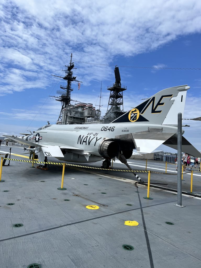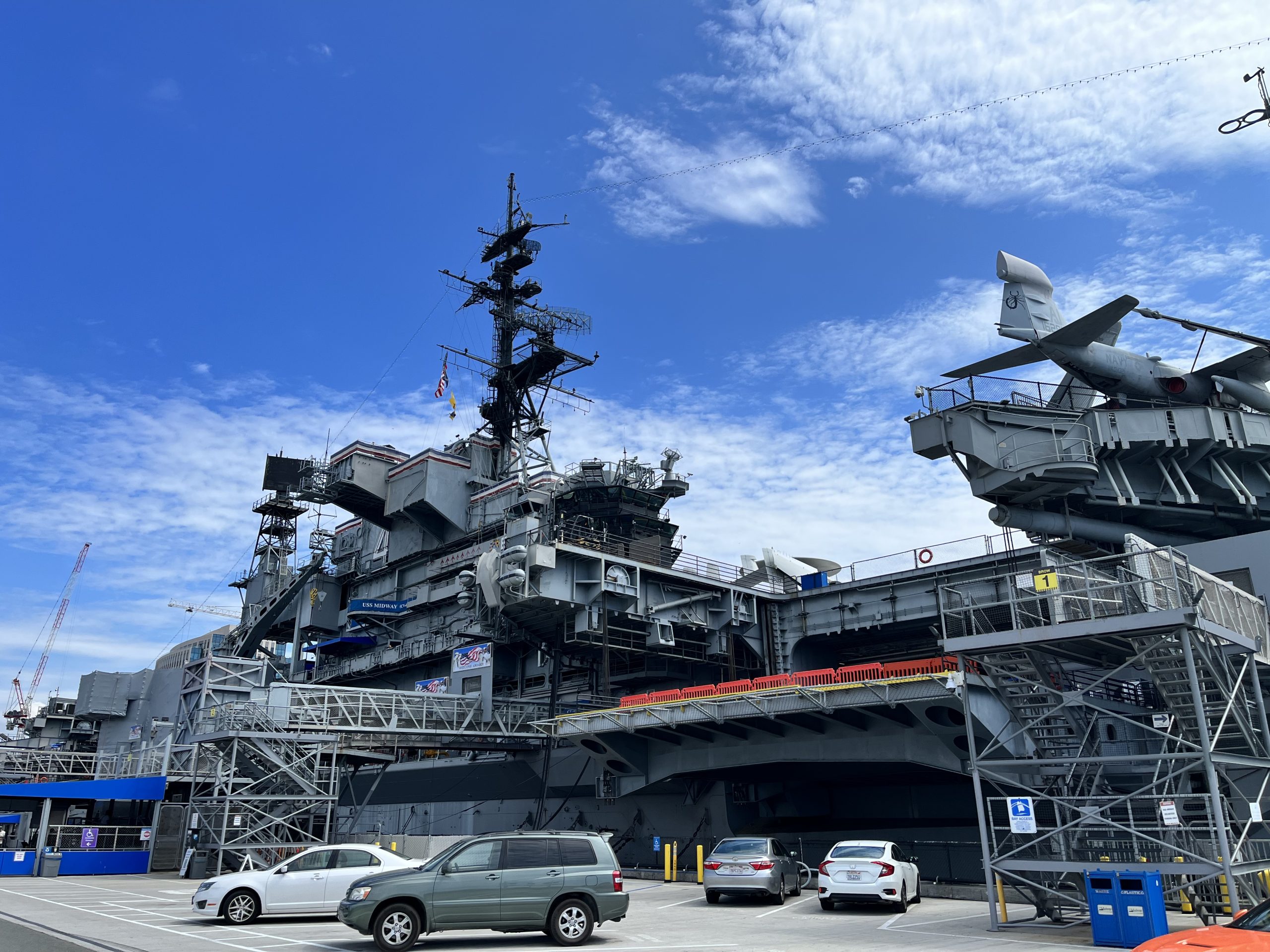 Gegen halb 11 kamen wir am Hafen an, denn heute stand das USS Midway Museum auf dem Plan. Dieses befindet sich in einem Flugzeugträger im Militärhafen von San Diego. Hier lagen auch noch aktive Flugzeugträger und Kriegsschiffe der US Navy vor Anker. Ben war mehr als begeistert. 🙂