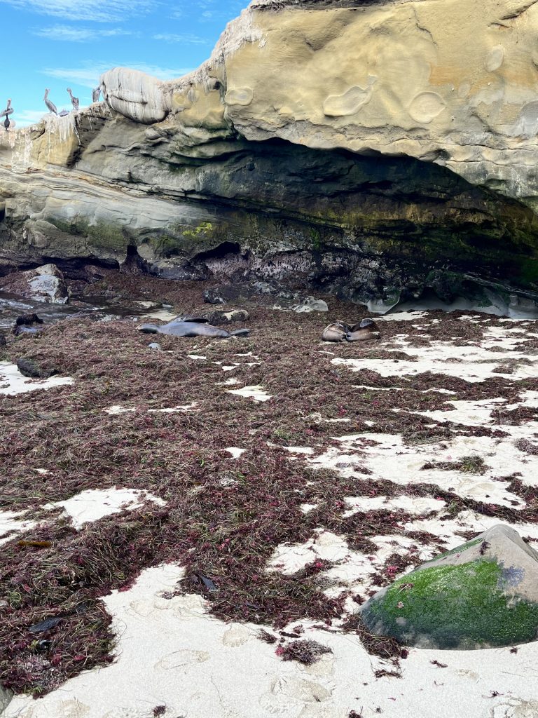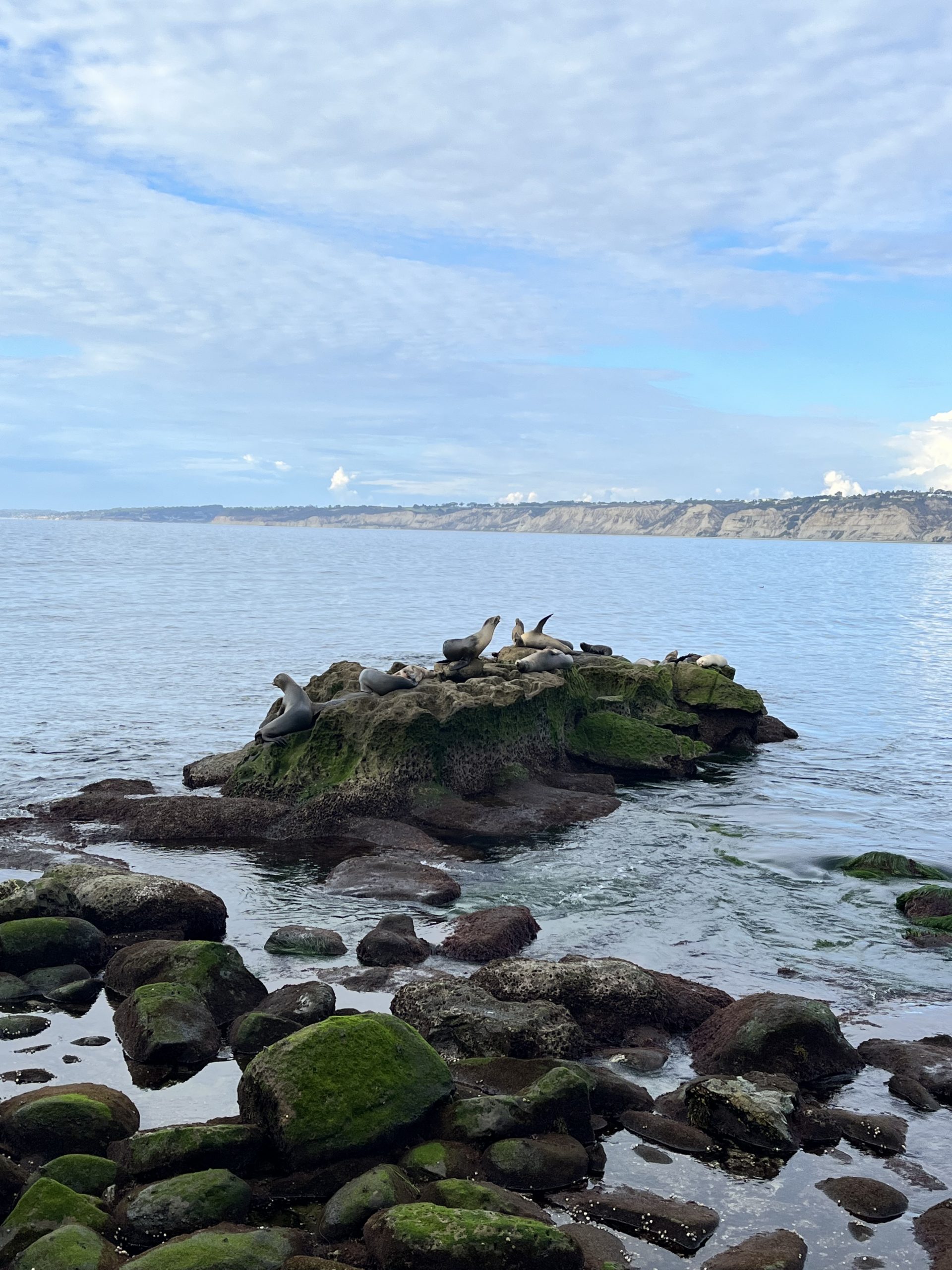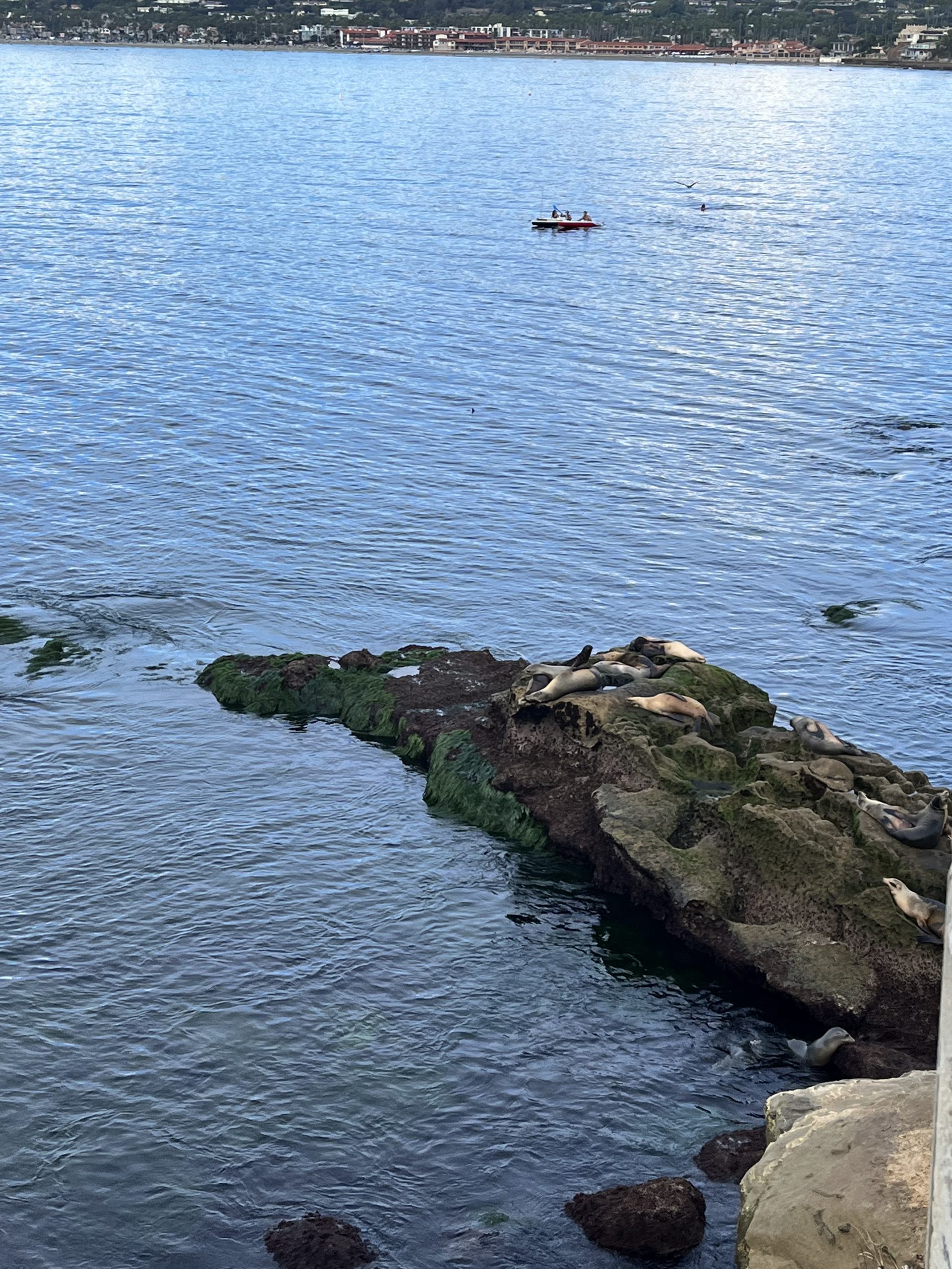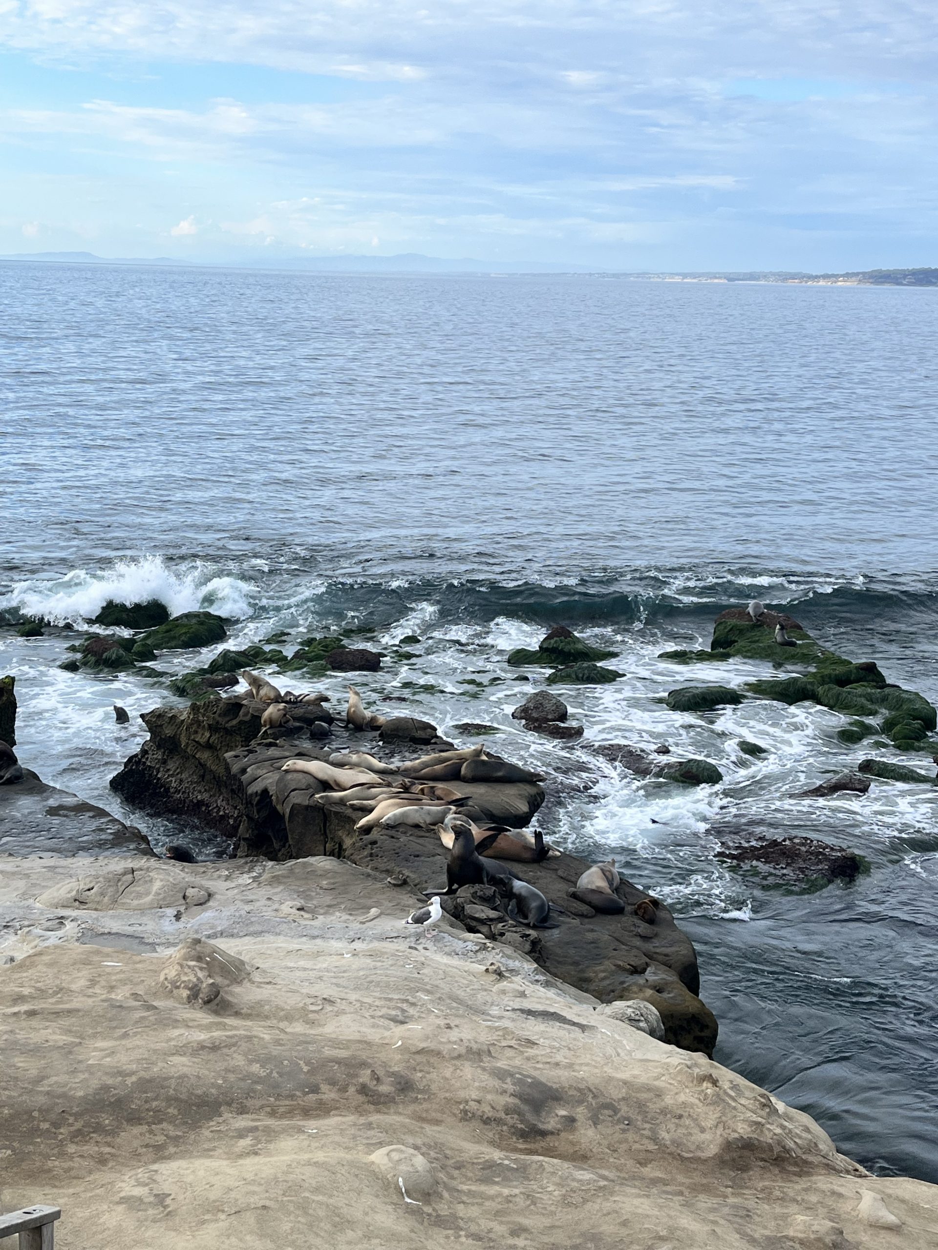 Dort fanden wir einen Parkplatz und stiegen aus. Schon von weiten rochen wir den ekligen Fischgeruch. Doch der Gestank lohnte sich, denn die La Jolla Cove ist bekannt als Ruhplatz für Robben und Seelöwen. Man konnte sogar zum Strand gehen, wo die Meeressäuger lagen. Einige Menschen waren im Wasser und schnorchelten. Doch mir war das nicht geheuer, denn es standen überall Schilder, dass man nicht zu nah an die Robben kommen sollte. Wir beobachteten die Tiere, beim ausruhen und konnten sogar einige Babys entdecken. Zwischen den Felsen waren auch einige Krabben, die dort lebten.