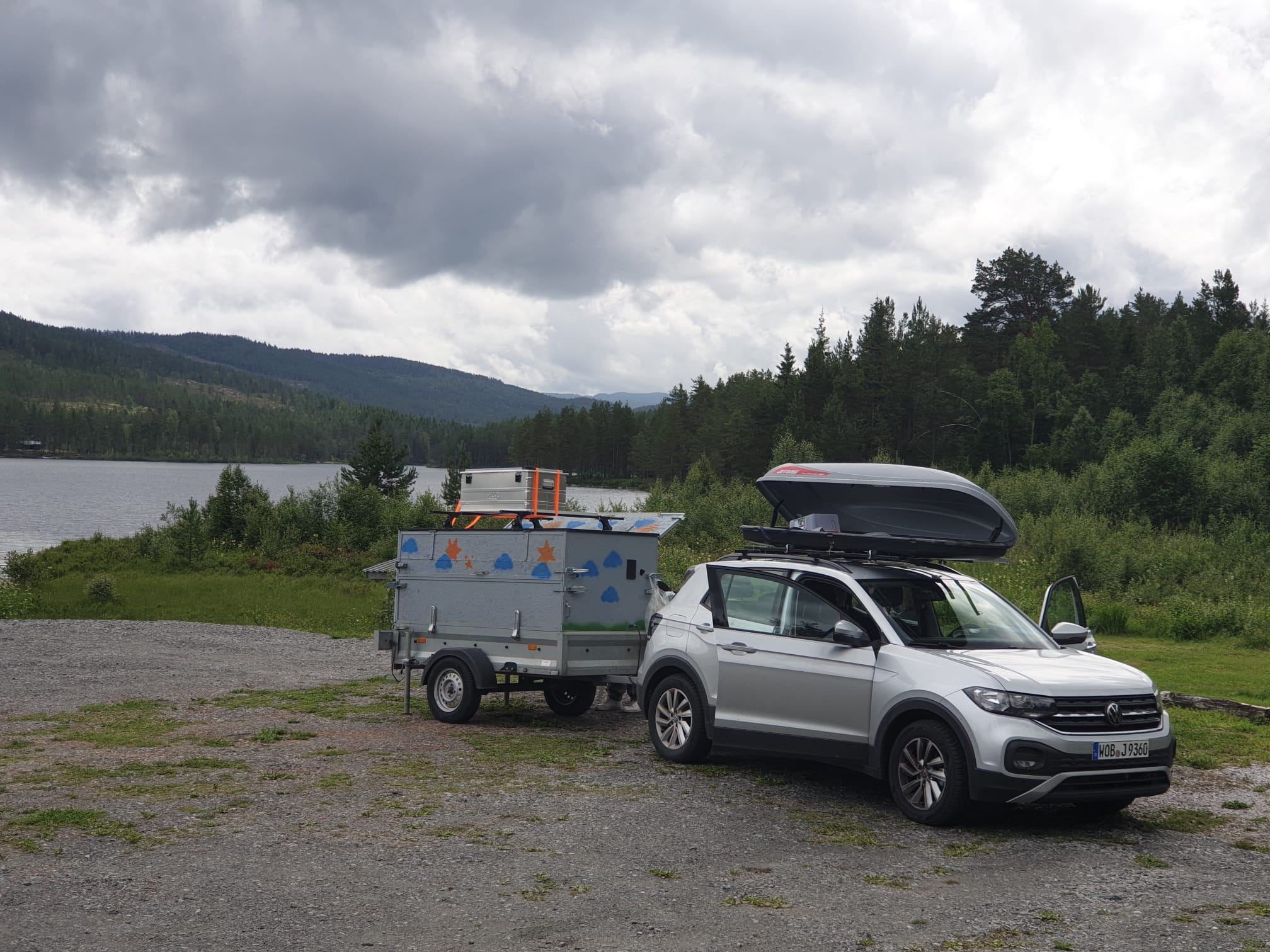 Doch vorher ist Zeit für Mittag. Wir halten an einem See und machen uns zum ersten Mal Nudeln mit Tomatensauce – herrlich.