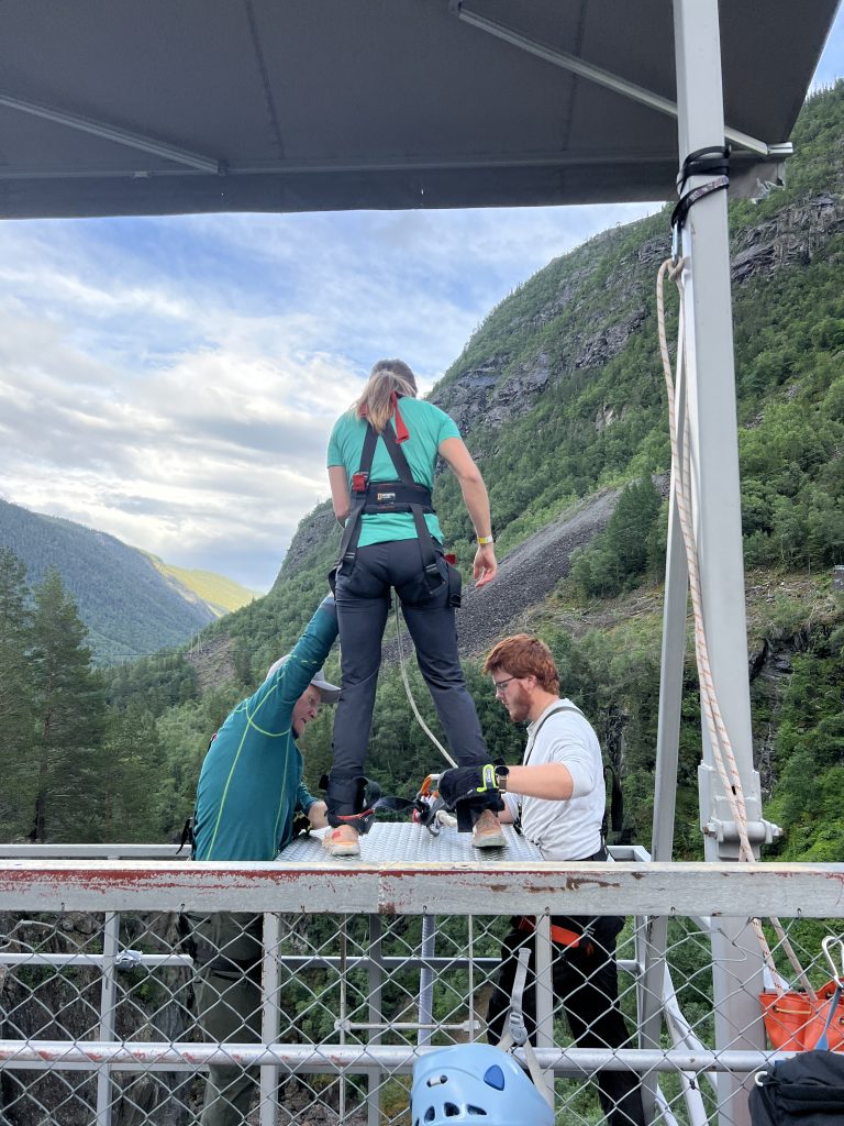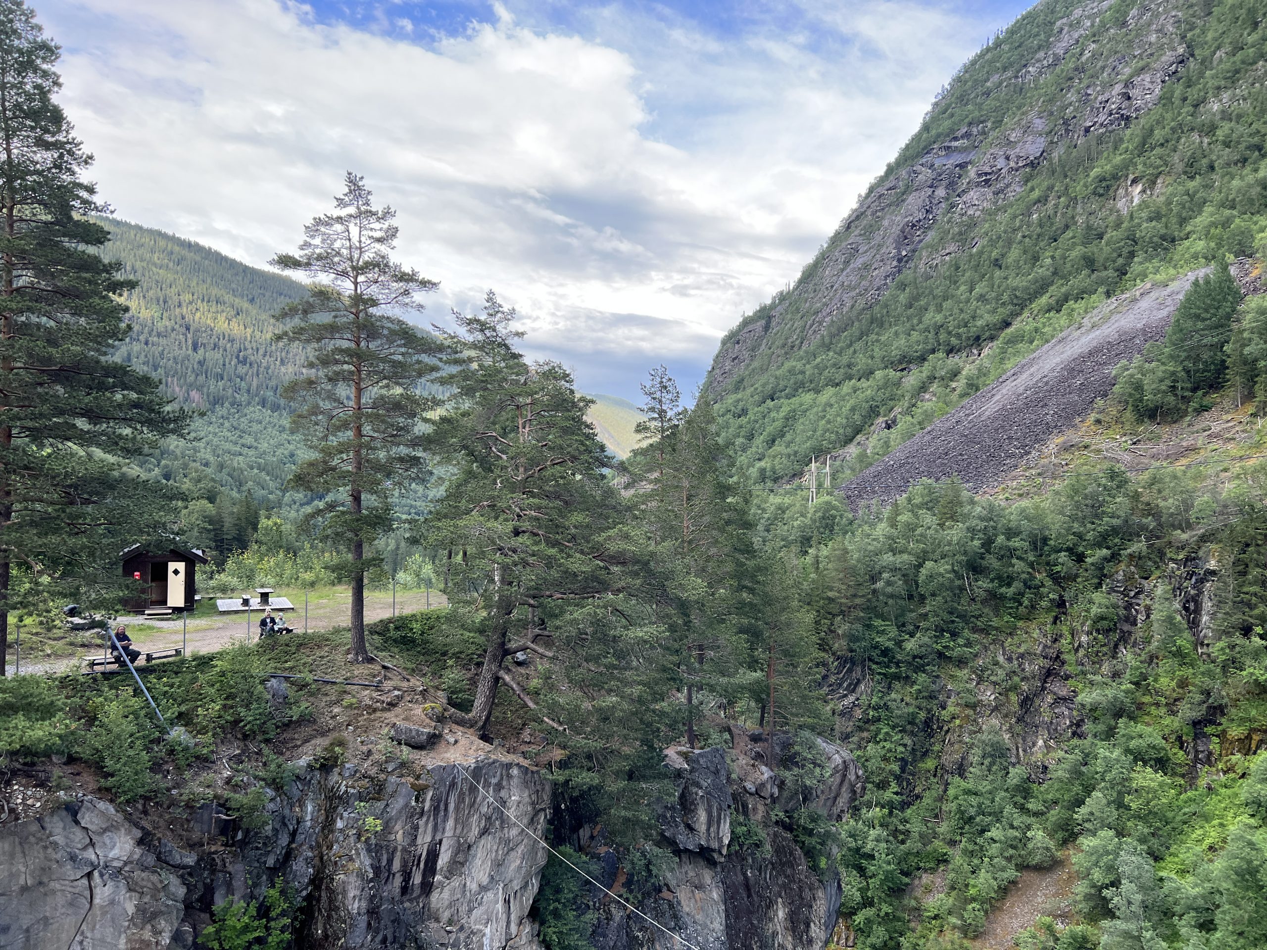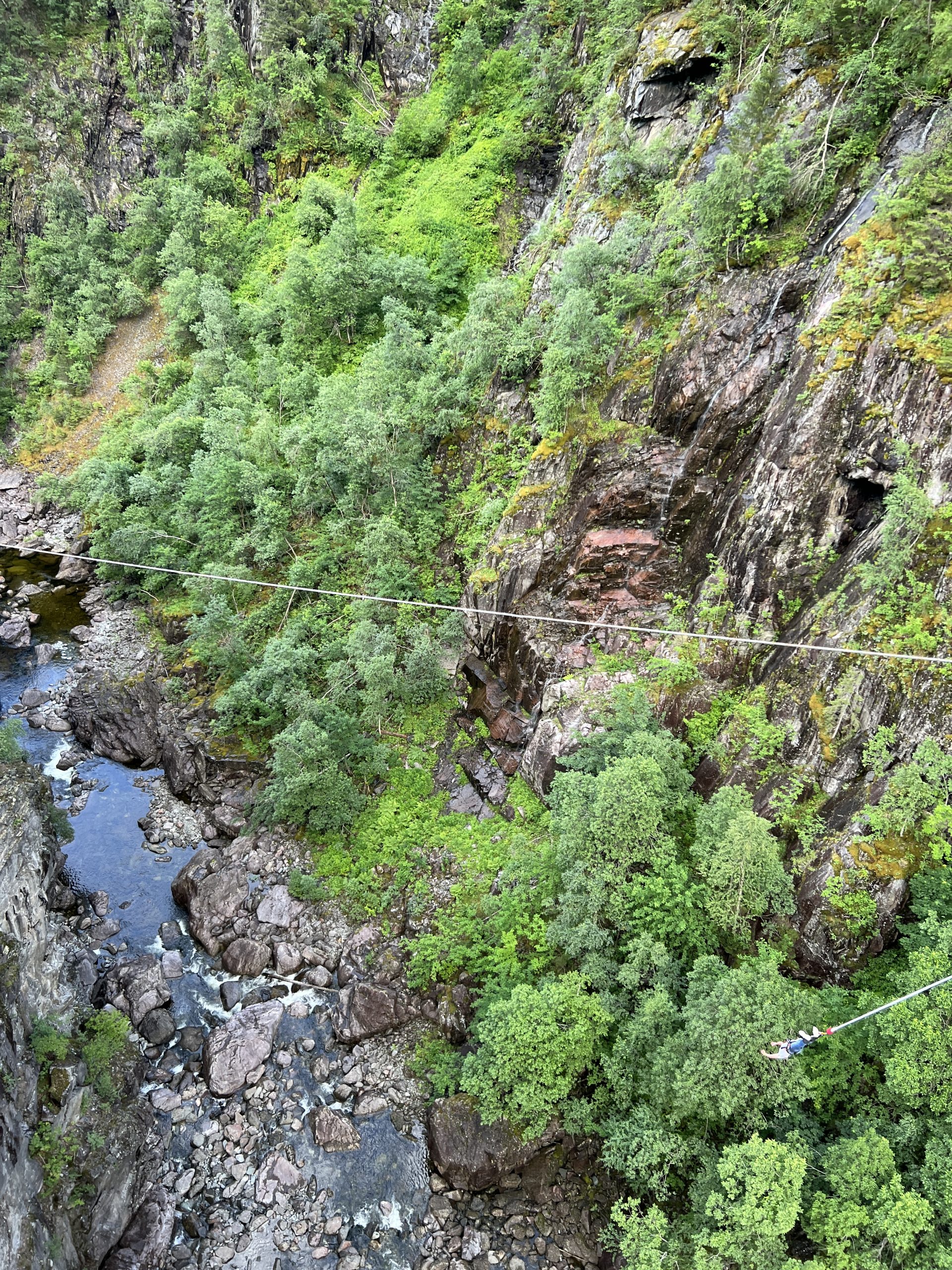 Eine Zipline gibt es auch – sie geht tatsächlich genau über der Schanze nach unten, da hätte man auch gleich das Gefühl von einem Sprung. Wer ist nur so verrückt und macht das?