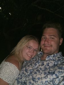 Bevor wir überhaupt mit unseren Handtüchern und der Tasche zum Strand gingen, mussten wir uns erst einmal im Wasser abkühlen gehen. Abgekühlt suchten wir uns einen Platz am Strand und zu meiner Überraschung wollte Tim wieder unter den selben Schirm wie gestern. Heute jedoch ohne sich den Kopf daran zu stoßen.