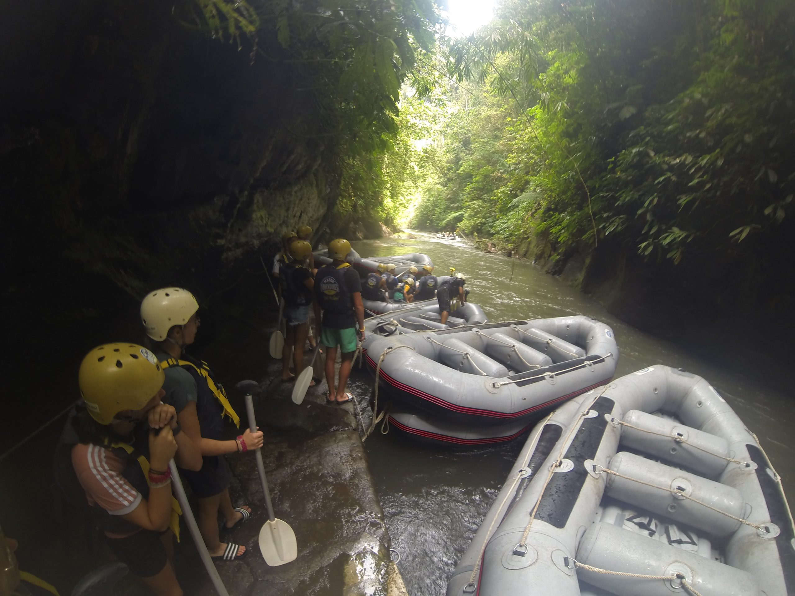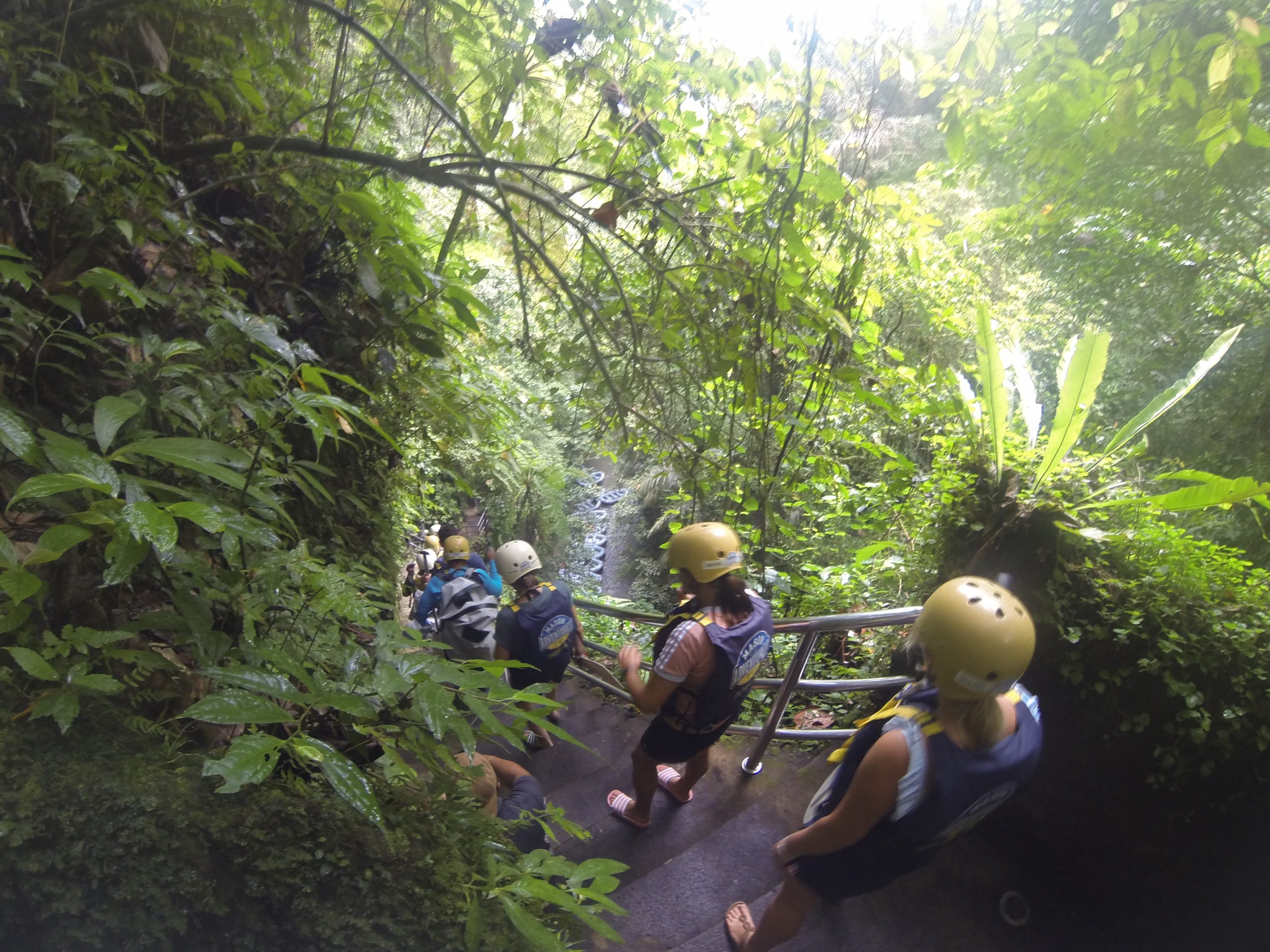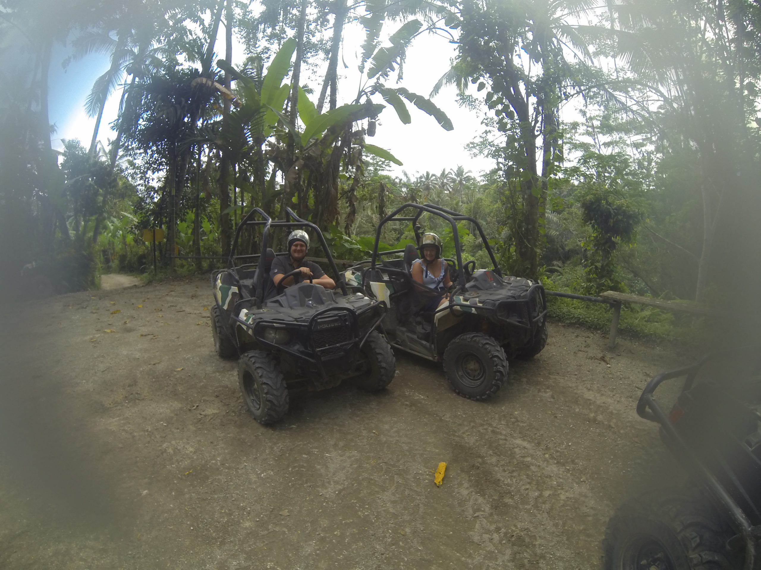 Ca. 7:15 Uhr wurden wir vom Hotel abgeholt. Heute sogar mit einem Bus. Wir hielten noch an zwei weiteren Hotels und sammelten dort die Leute ein bis es dann zum Rafting ging. Wir kamen am Standort der Mason Adventurs an. Dort konnten wir unsere Sachen in die Schließfächer bringen, bevor es dann mit dem Bus nochmal an einen anderen Standort ging. Dort bekamen wir Rettungswesten und Helme. Als jeder von uns die Ausrüstung anhatte ging es los. Zuerst mussten wir eine extrem steile Treppe nach unten bevor wir an den Booten ankamen. Dort befestigte unser Guide eine Kamera und ließ uns einsteigen. Er erklärte uns noch einige Sicherheitshinweise bevor es los ging. Unsere Rafting-Tour ging zwei Stunden und wir legten 12 km zurück. Zwischen durch meinte der Guide, dass wir ein Stück laufen müssen, da dieser Abschnitt zu gefährlich ist. Der Guide ist im Boot geblieben und zwischendurch konnten wir beobachten wir er sich durch diesen Abschnitt kämpfte und ich hatte nicht im Boot sitzen wollen. Der Weg neben dem Fluss war allerding auch nicht leicht. Wir hatten schon nasse Schuhe und ich fand keinen richtigen Halt und es ging entweder steil hinauf oder steil herab. Zurück im Boot ging es dann weiter. Wir konnten viel der Natur beobachten und der Dschungel war beeindruckend. Es machte Spaß den Fluss hinunter zu fahren. Am Ende der Tour mussten wir nochmal aussteigen, da die Rutsche wohl nicht gehen würde und das Boot alleine das steile Stück runter musste. Der Weg, welchen wir dann vor uns hatten, war definitiv nicht dazu gedacht dort entlang zu laufen. Wir hangelten uns an einem Geländer vorbei, zwischen die Palmen an steilen Stücken und kletterten über eine umgestürzte Palme. Als wir diese Stück endlich geschafft hatten ging es wieder bergauf. Die vielen Treppen, die nassen Schuhe und Kleidung und vor allem die Anstrengung des vorherigen Weges erschwerten den Weg nach oben. Zudem hatten wir die ganze Zeit nicht viel getrunken. Mir wurde Schwindelig und ich bekam starke Kopfschmerzen. Wir kamen wieder in dem Standort an, wo wir unsere Tasche hatten und gingen dann dort Mittagessen. Einer der Kellner bemerkte, dass es mir nicht gut geht und fragte ob er mir etwas gegen die Kopfschmerzen bringen kann. Ich bekam eine Paracetamol und einen süßen Tee. Die Fahrt bis zum Buggy fahren verbrachte ich mit schlafen und als wir angekommen waren ging es mir auch besser.