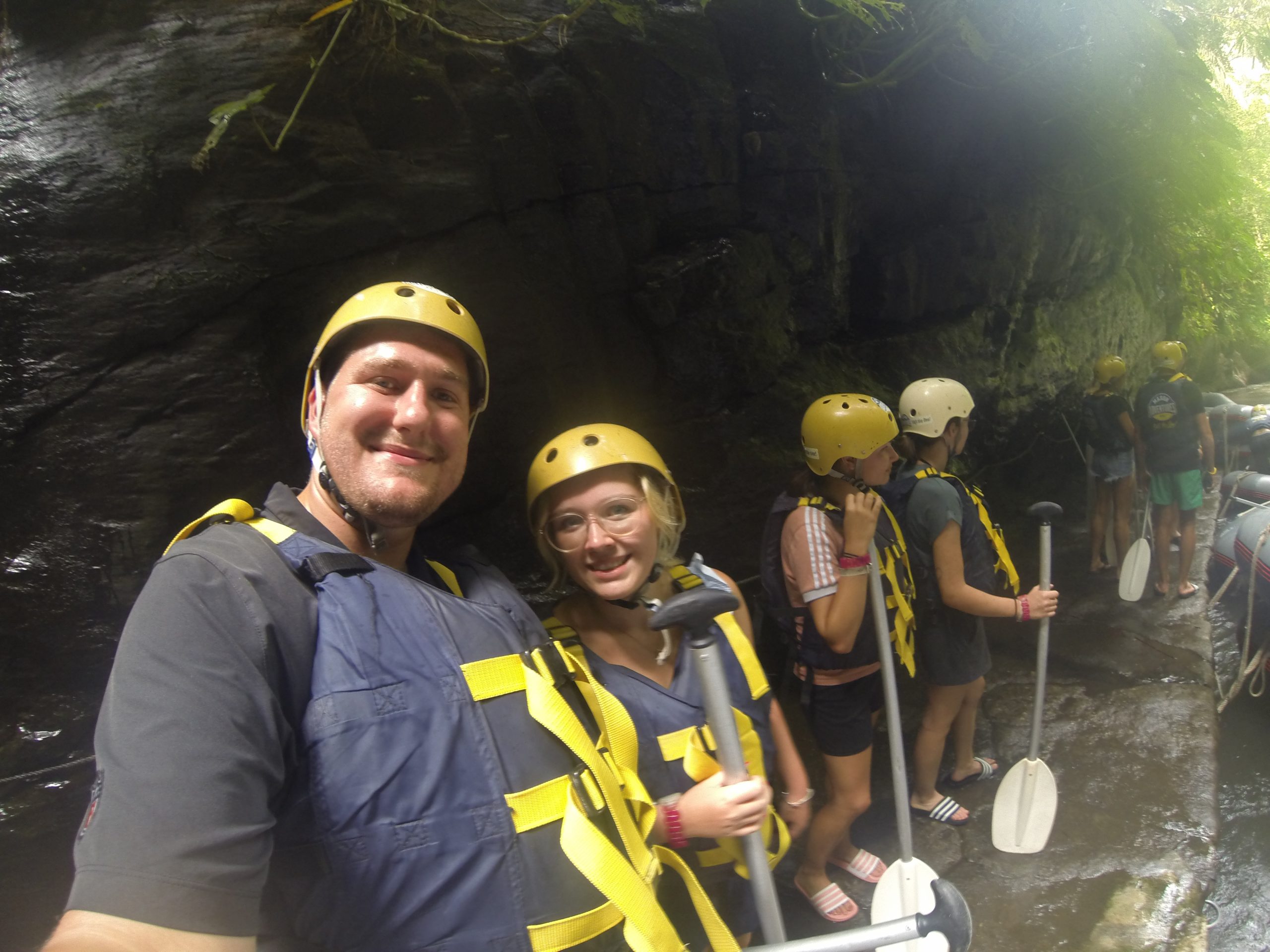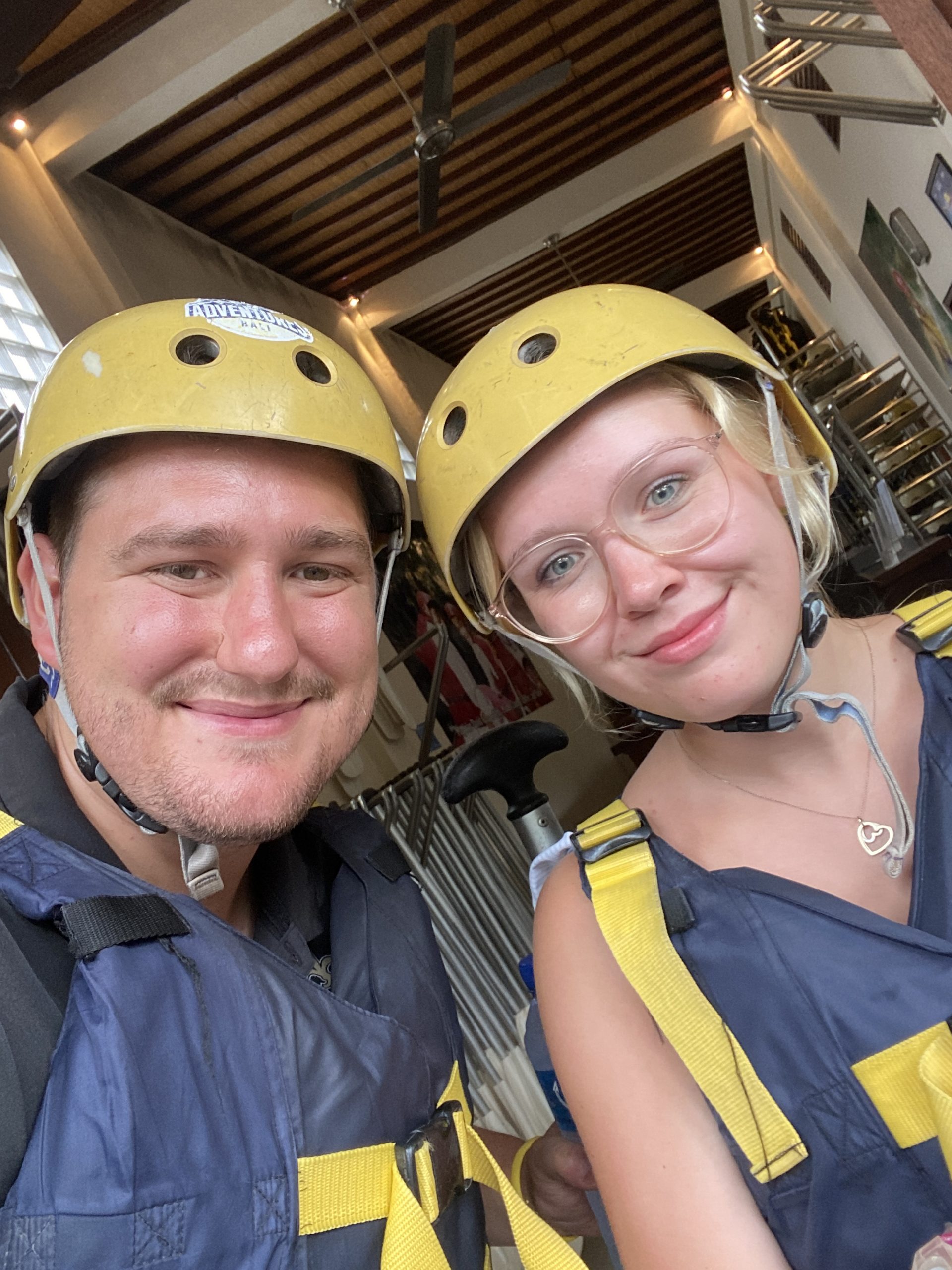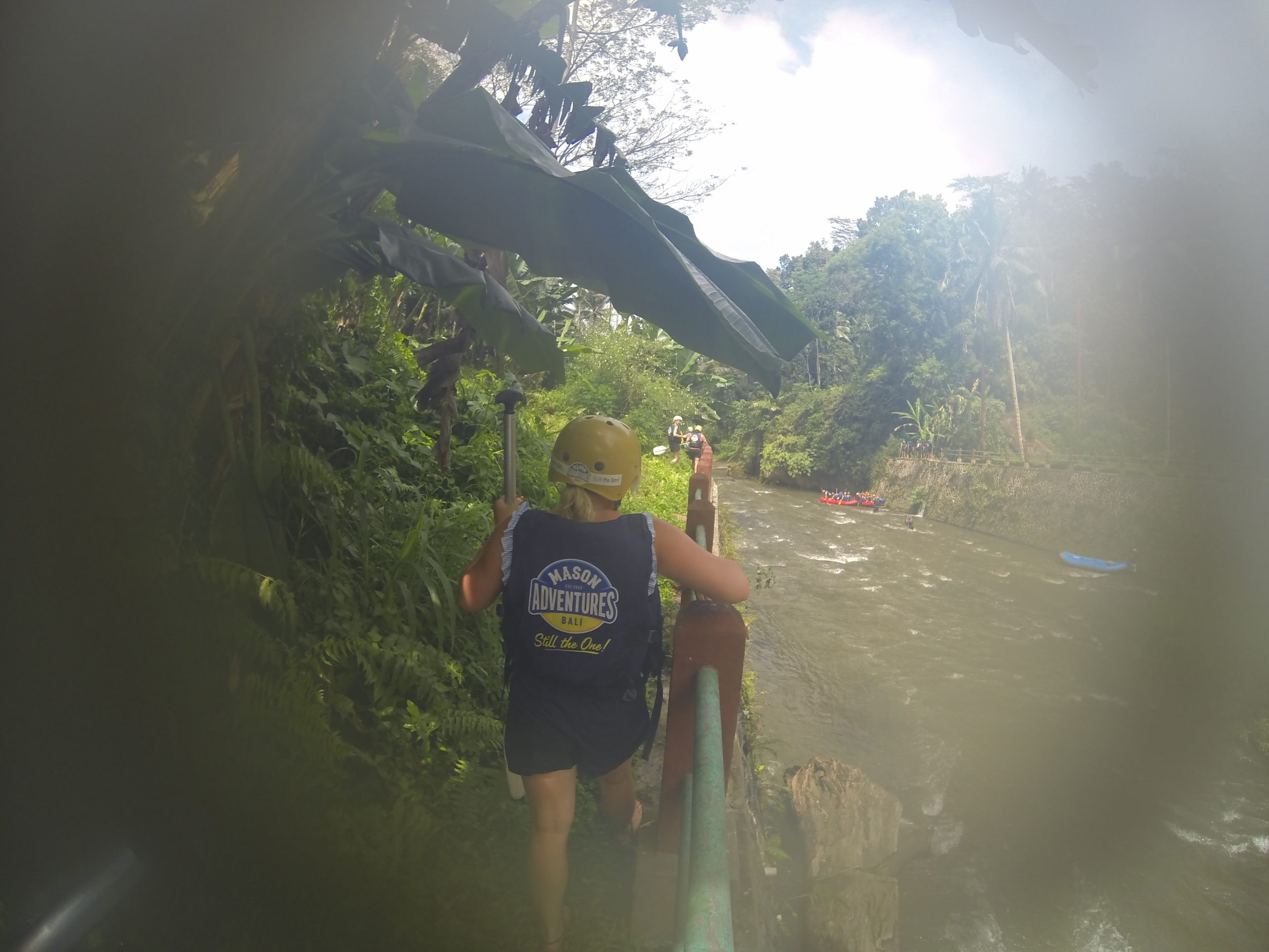 Ca. 7:15 Uhr wurden wir vom Hotel abgeholt. Heute sogar mit einem Bus. Wir hielten noch an zwei weiteren Hotels und sammelten dort die Leute ein bis es dann zum Rafting ging. Wir kamen am Standort der Mason Adventurs an. Dort konnten wir unsere Sachen in die Schließfächer bringen, bevor es dann mit dem Bus nochmal an einen anderen Standort ging. Dort bekamen wir Rettungswesten und Helme. Als jeder von uns die Ausrüstung anhatte ging es los. Zuerst mussten wir eine extrem steile Treppe nach unten bevor wir an den Booten ankamen. Dort befestigte unser Guide eine Kamera und ließ uns einsteigen. Er erklärte uns noch einige Sicherheitshinweise bevor es los ging. Unsere Rafting-Tour ging zwei Stunden und wir legten 12 km zurück. Zwischen durch meinte der Guide, dass wir ein Stück laufen müssen, da dieser Abschnitt zu gefährlich ist. Der Guide ist im Boot geblieben und zwischendurch konnten wir beobachten wir er sich durch diesen Abschnitt kämpfte und ich hatte nicht im Boot sitzen wollen. Der Weg neben dem Fluss war allerding auch nicht leicht. Wir hatten schon nasse Schuhe und ich fand keinen richtigen Halt und es ging entweder steil hinauf oder steil herab. Zurück im Boot ging es dann weiter. Wir konnten viel der Natur beobachten und der Dschungel war beeindruckend. Es machte Spaß den Fluss hinunter zu fahren. Am Ende der Tour mussten wir nochmal aussteigen, da die Rutsche wohl nicht gehen würde und das Boot alleine das steile Stück runter musste. Der Weg, welchen wir dann vor uns hatten, war definitiv nicht dazu gedacht dort entlang zu laufen. Wir hangelten uns an einem Geländer vorbei, zwischen die Palmen an steilen Stücken und kletterten über eine umgestürzte Palme. Als wir diese Stück endlich geschafft hatten ging es wieder bergauf. Die vielen Treppen, die nassen Schuhe und Kleidung und vor allem die Anstrengung des vorherigen Weges erschwerten den Weg nach oben. Zudem hatten wir die ganze Zeit nicht viel getrunken. Mir wurde Schwindelig und ich bekam starke Kopfschmerzen. Wir kamen wieder in dem Standort an, wo wir unsere Tasche hatten und gingen dann dort Mittagessen. Einer der Kellner bemerkte, dass es mir nicht gut geht und fragte ob er mir etwas gegen die Kopfschmerzen bringen kann. Ich bekam eine Paracetamol und einen süßen Tee. Die Fahrt bis zum Buggy fahren verbrachte ich mit schlafen und als wir angekommen waren ging es mir auch besser.