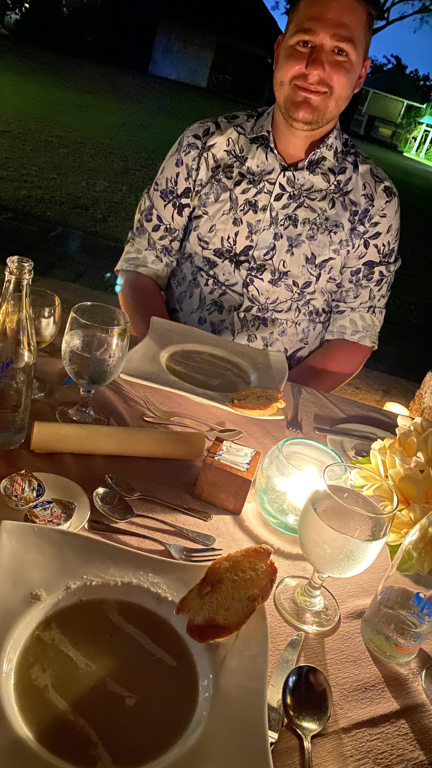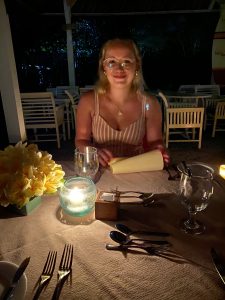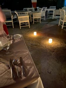 Noch etwas am schlummern bekam ich mit, dass Tim zurück war und dann klingelte plötzlich das Telefon. Nach dem zweiten mal das jemand anrief sagte Tim mir nur, dass das romantische Dinner am Strand, welches er für heute organisiert hatte ausfällt, da es regnet. Ich war total verwirrt und hätte gar nicht damit gerechnet, dass er es organisiert haben könnte. Ein bisschen traurig darüber machte ich mich trotzdem fürs Essen bereit. Als wir das Zimmer verließen und ich in Richtung Restaurant gehen wollte, zog mich Tim zurück und meinte, er möchte noch eine Runde spazieren gehen. Als wir am Restaurant Menega vorbei kamen sah ich, dass dort ein gedeckter Tisch im Kerzenlicht steht. Wir setzten uns und genossen die Ruhe. Es war ein wunderschönes und besonderes Essen.