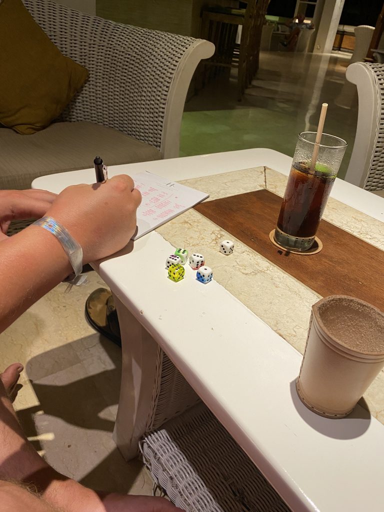 Wir gingen heute relativ spät zurück ins Zimmer, erst dreiviertel sieben. Wir machten uns fürs Abendessen fertig und aßen heute noch einmal a la Card. Nach dem Essen wollten wir gern noch eine Runde Billard spielen, doch leider war der Raum heute schon belegt gewesen. Also gingen wir in die Lobby und spielen dort noch ein paar Runden „bis 10.000“. Auf dem Weg ins Zimmer versuchten wir es nochmal am Billardraum, doch da dieser immer noch belegt war, gingen wir weiter.