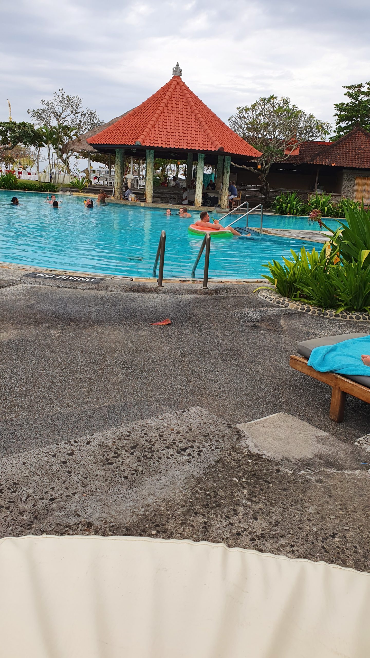 Nach dem Frühstück packten wir unsere Strandtasche und suchten uns am Strand eine schöne Liege aus. Tim schlief noch etwas und ich arbeitete die restlichen Tagebucheinträge auf. Als ich damit fertig war schnappten wir uns unseren Meloneschwimmring und gingen ins Meer. Es passte gut, da gerade Flut war. Die letzten Tage des Urlaubs, rückte der Zeitpunkt der Flut immer mehr in die Mittagszeit, was für uns natürlich praktischer war, als früh zeitig und am Abend.