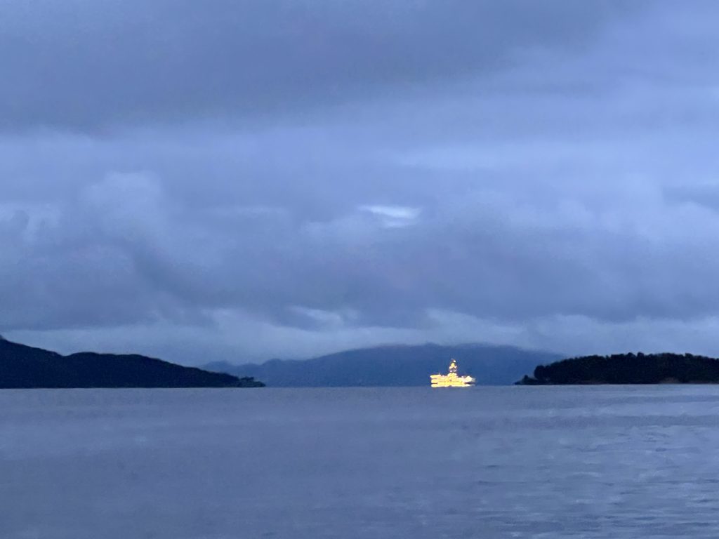 Nach dem Abendbrot, so um 21:00 Uhr fahren wir nochmal raus. Es ist relativ kühl (11 Grad) und es regnet etwas.