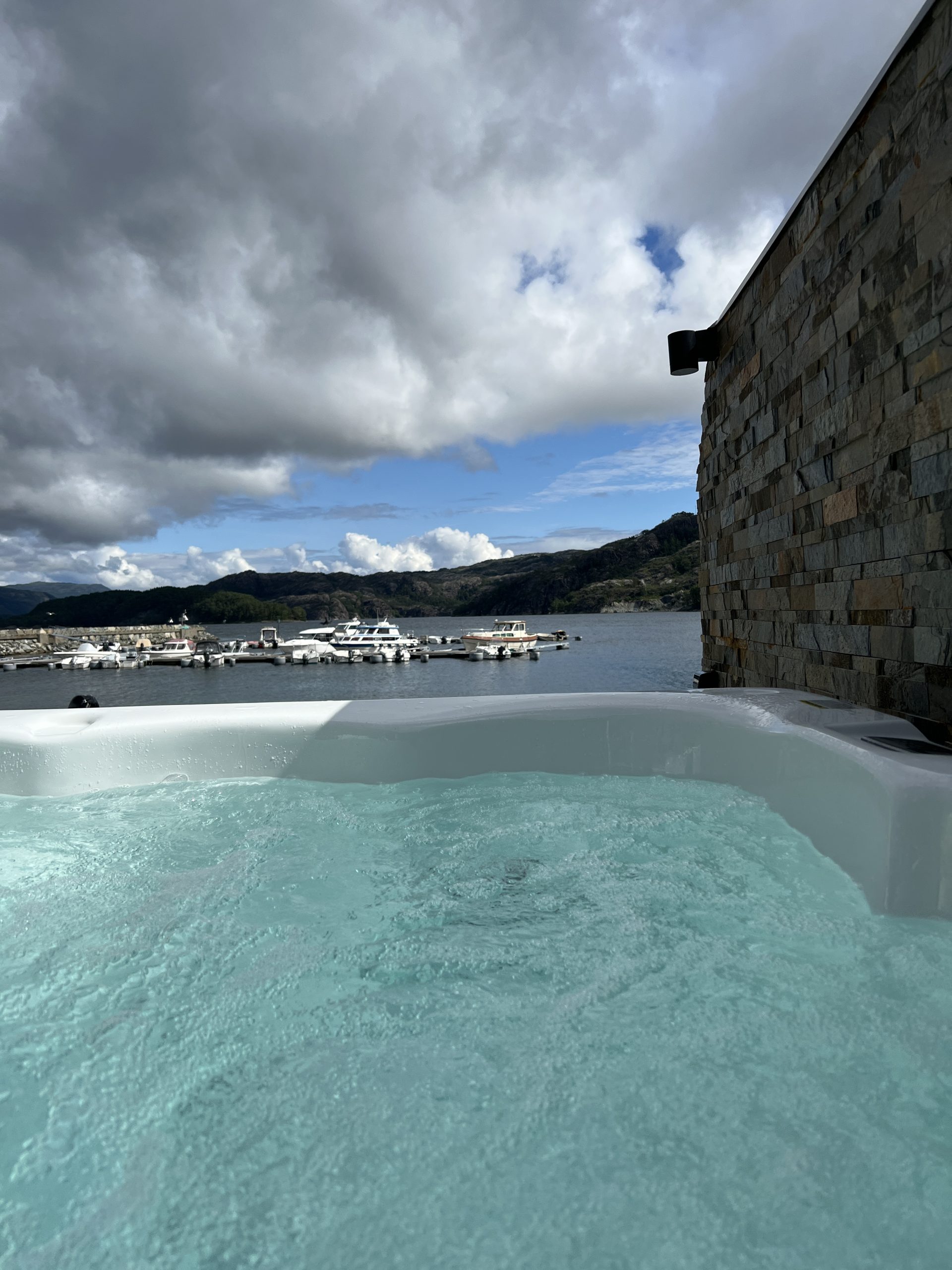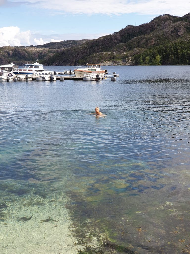Dann teste ich doch mal den Fjord-Wasser. Ich kann doch nicht abreisen ohne einmal im Wasser gewesen zu sein. Und zum Aufwärmen gehe ich gleich im Anschluss in unseren Spa – herrlich.