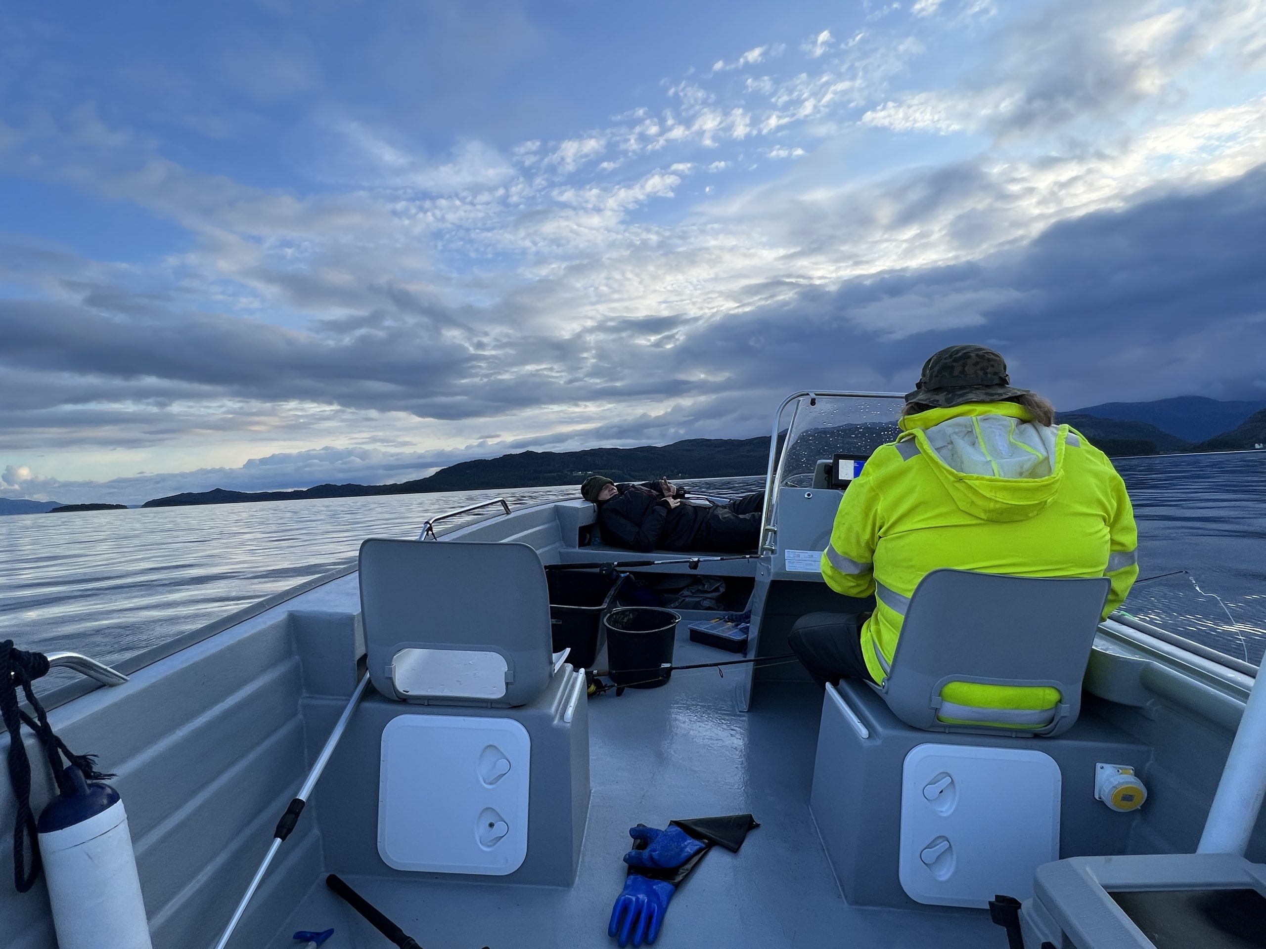 Das Wasser ist herrlich ruhig, es regnet nicht und es ist ganz still. Wir fangen zwar keinen Fisch, aber wir genießen es trotzdem.
