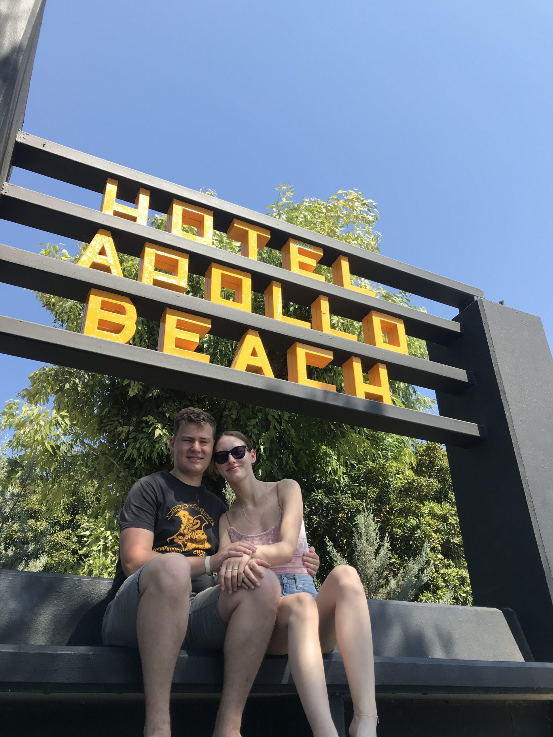 Nachdem wir gegessen hatten, gingen wir an den Strand und schwammen das erste Mal diesen Urlaub im Meer. Das Wasser war angenehm kühl und die Menschenmassen waren auch auszuhalten. Nachdem wir eine Runde geschwommen sind, wollten wir eine Sandburg bauen, doch leider bauten wir recht nah am Wasser, sodass der Schutzwall der Burg immer unterspült wurde. Spontan entschieden wir und nur eine Kuhle zu bauen, die man als Sitz nutzen konnte (und ich auch gemacht habe). Dann gingen wir zurück auf unsere Liege und genossen die Sonne für ein paar Stündchen.