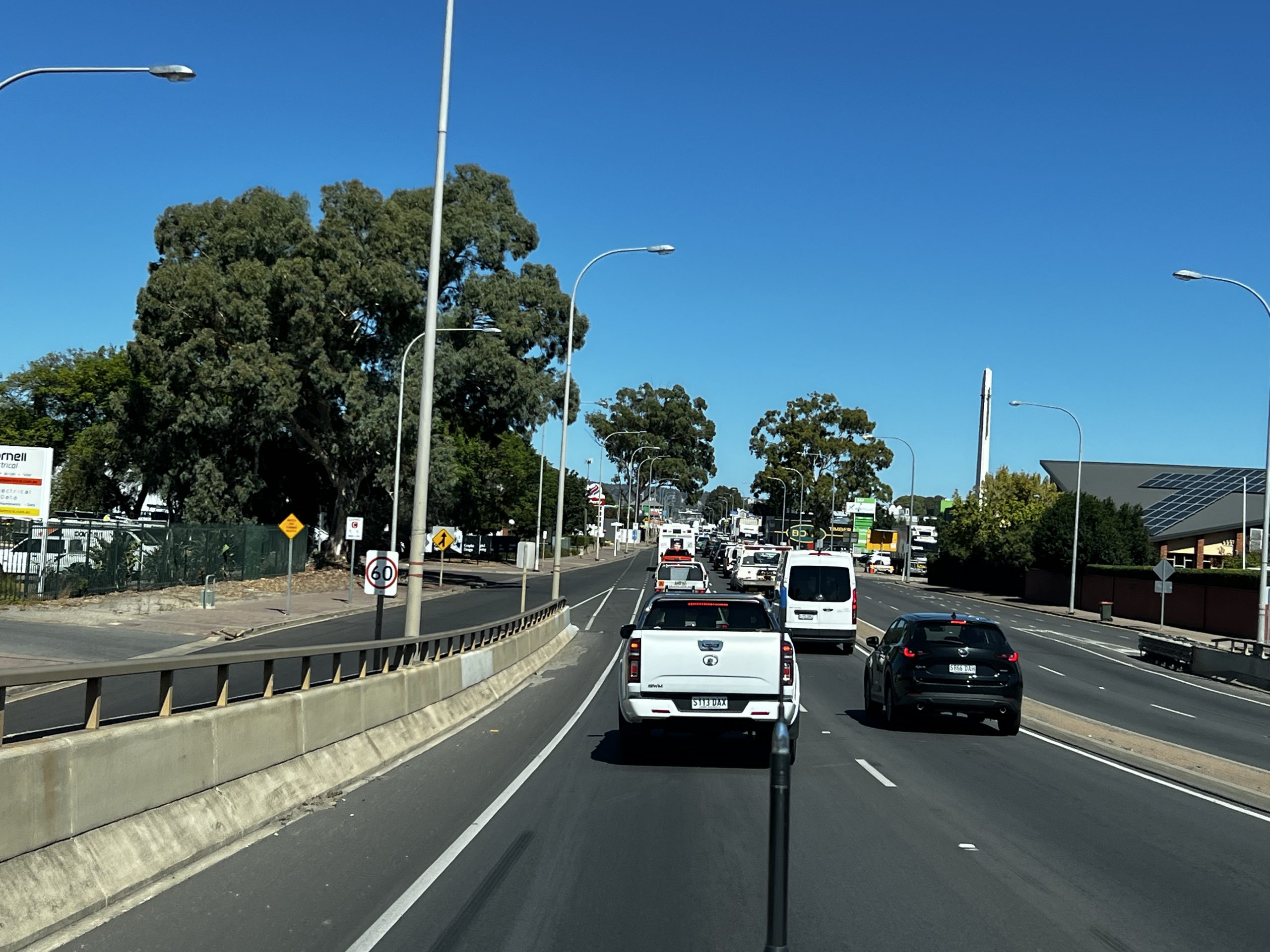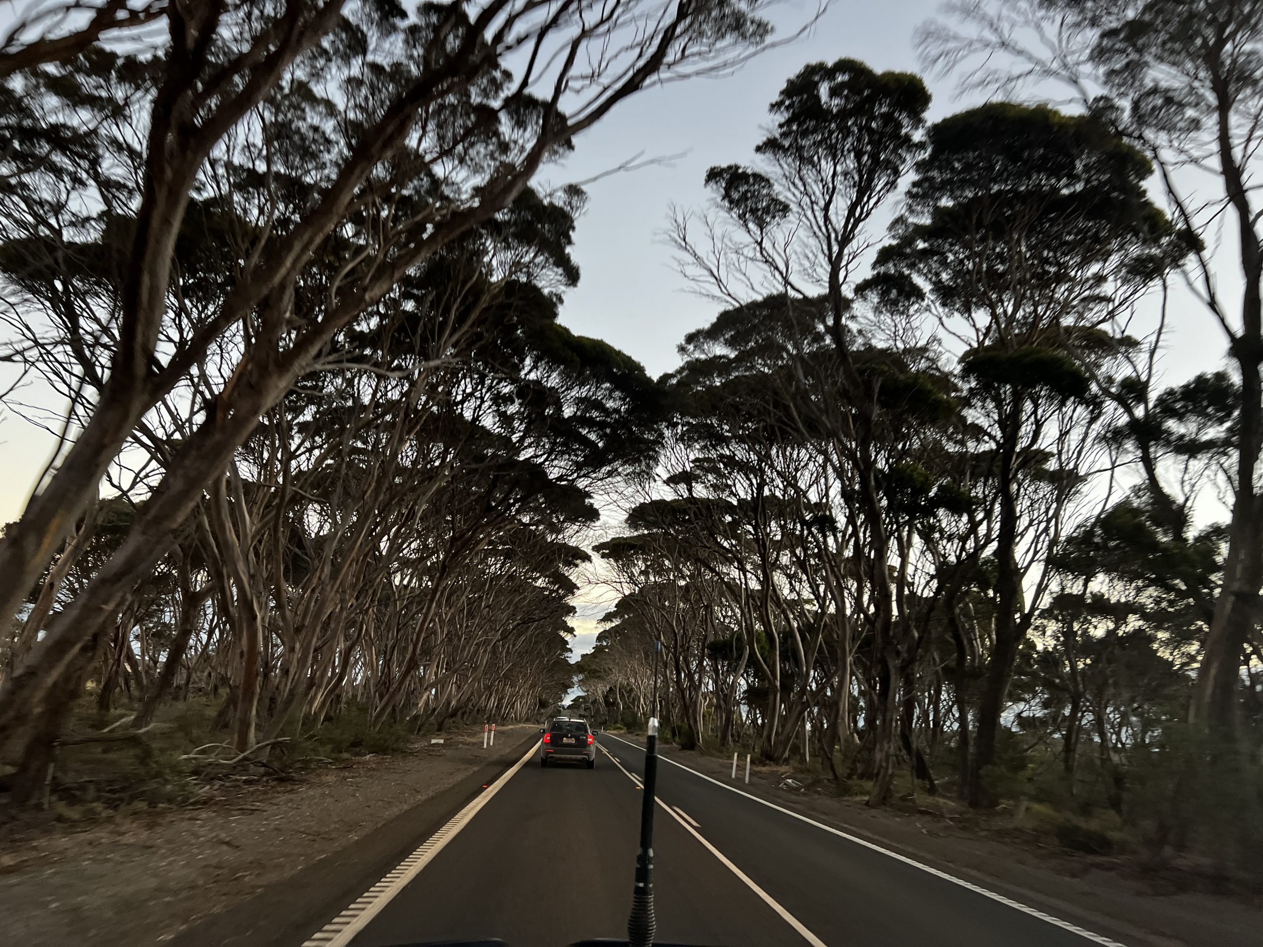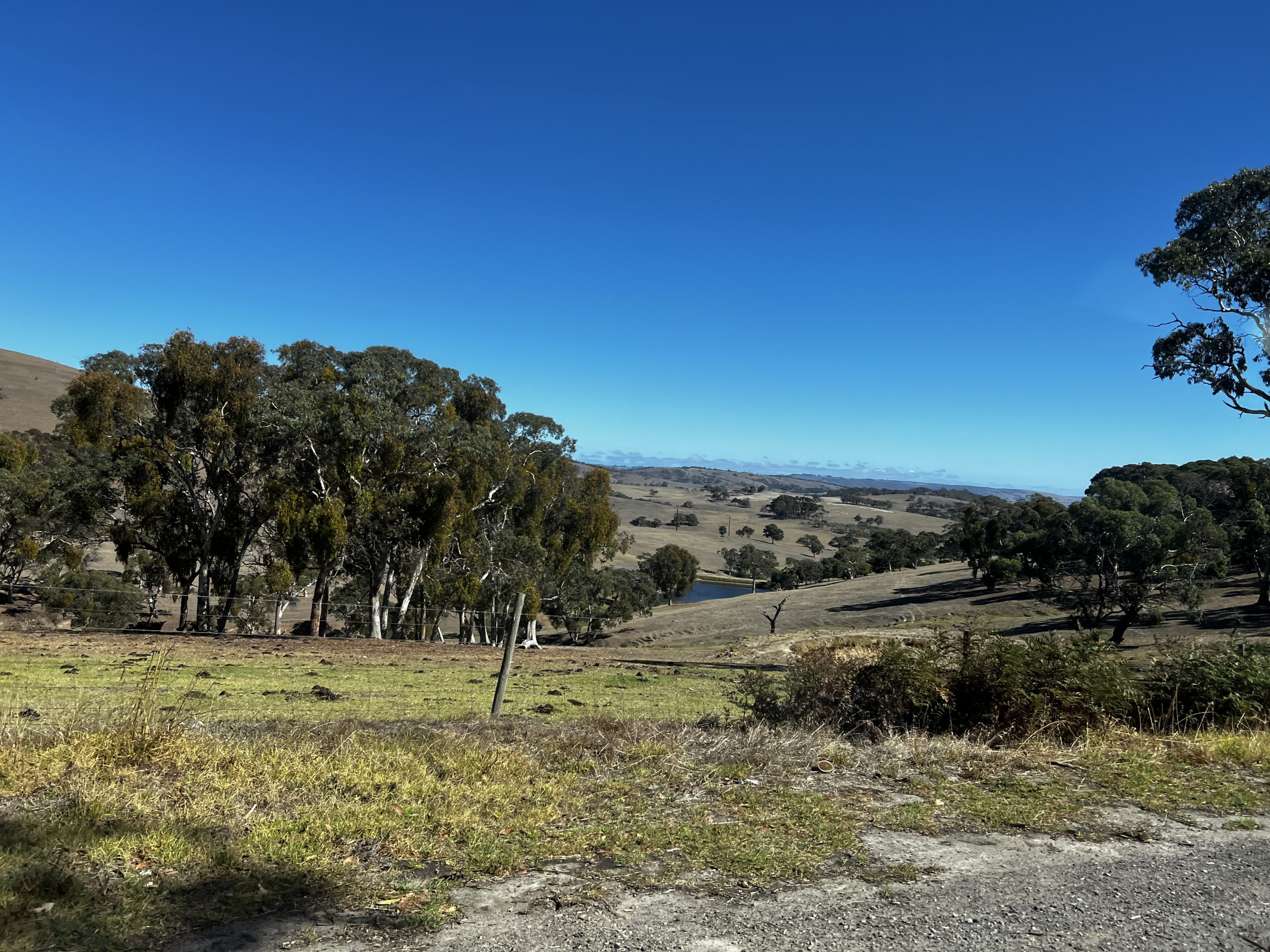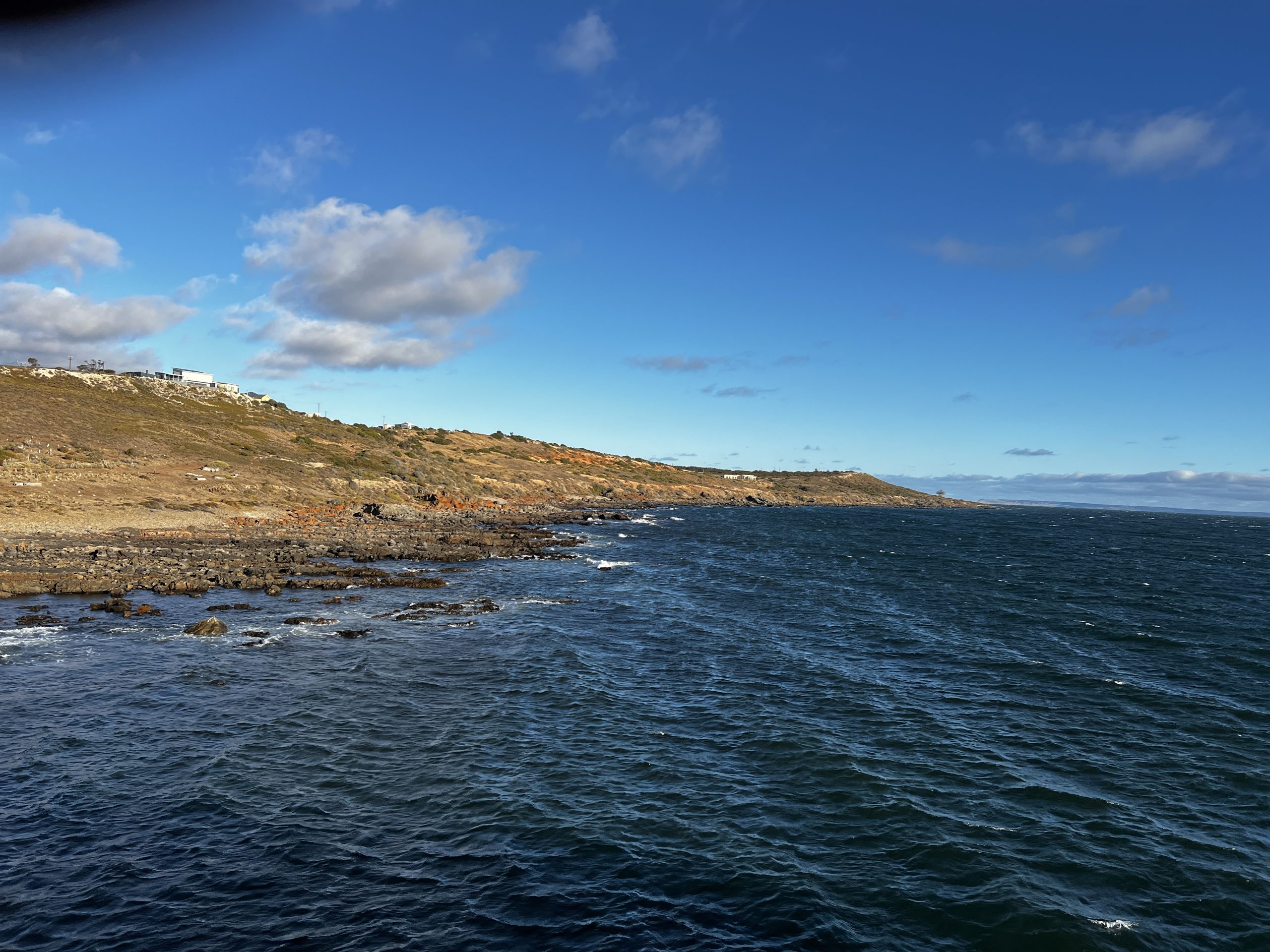 Dann fahren wir in Richtung Fährhafen für Kangaroo Island. Die Einsamkeit ist vorbei, es gibt riesige Felder, Weinplantagen, Olivenplantagen und Tierfarmen. Nach und nach wird es wieder grüner und auch bergiger.