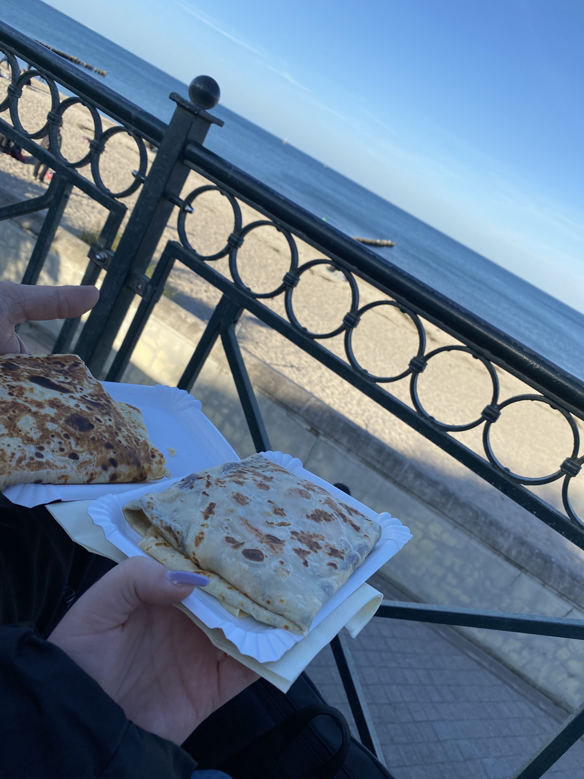 Auf dem Weg vom Hafen zurück suchten wir nun eine ganze Weile nach einer Gelegenheit, um am Abend essen zu gehen. Nach einigem suchen wurden wir dann zum Glück noch fündig. Wir saßen draußen und hatten eine wunderschöne Aussicht auf das Meer, sowie das Riesenrad.