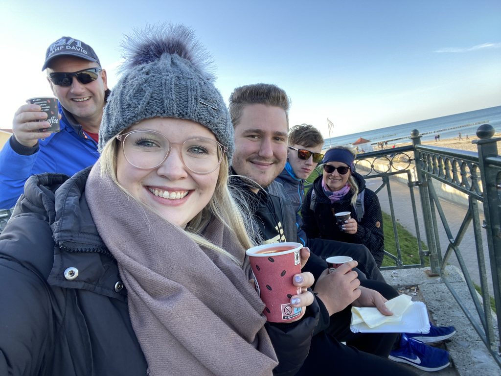 Gerade als wir gemütlich beim Frühstück saßen rief auch schon Mama an und berichtete davon, dass sie angekommen sind. Wir haben dann alles aufgeräumt und nahmen wieder den Weg in Richtung Seebrücke auf, um uns dort mit den Dreien zu treffen. Es dauerte einige Zeit, eh wir uns gefunden haben, aber wir haben es geschafft.