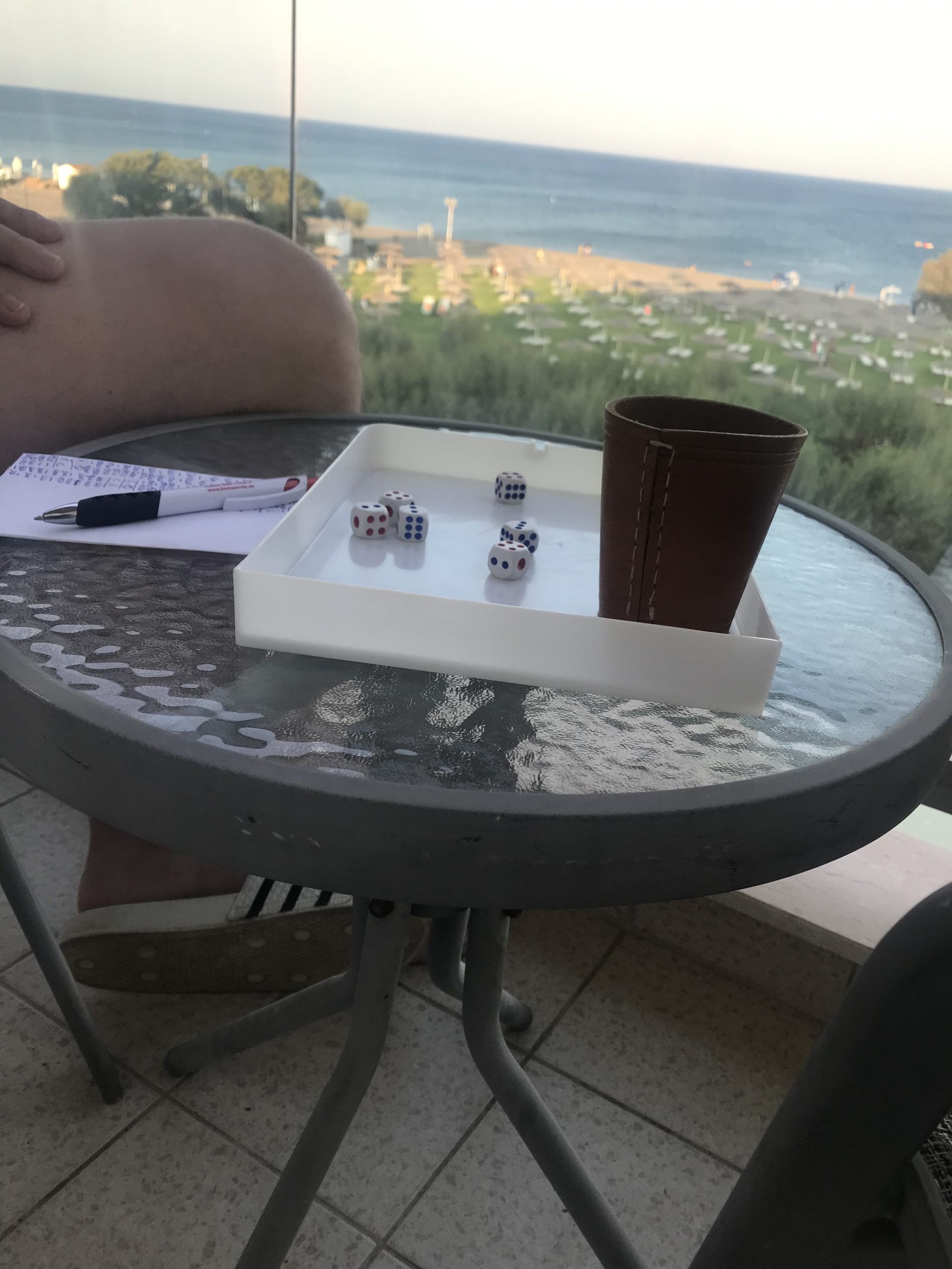 Den Abend ließen wir mit ein paar Runden würfeln, leckerem Abendbrot, griechischer Musik von der Live-Band und einem Cocktail ausklingen.