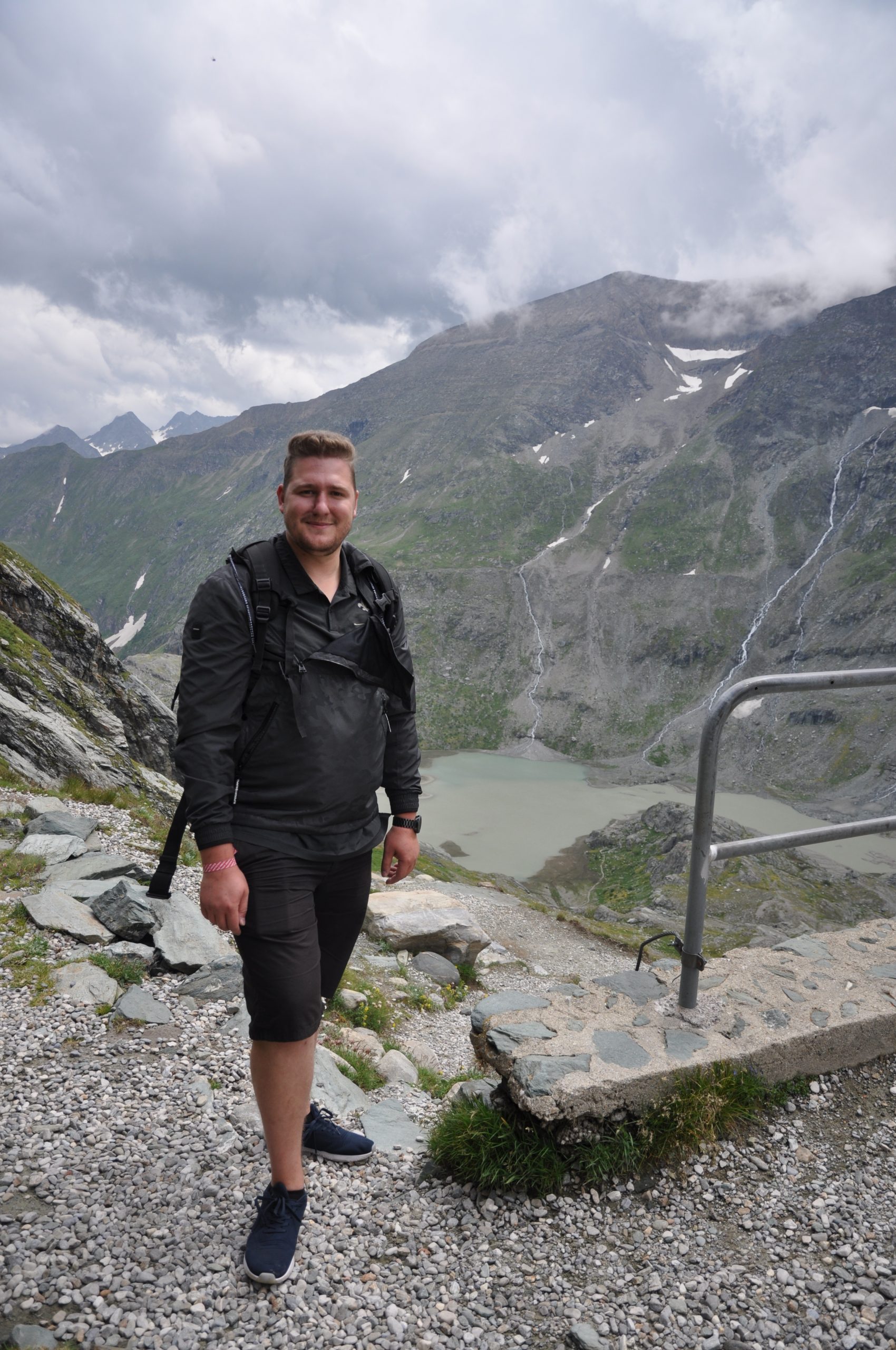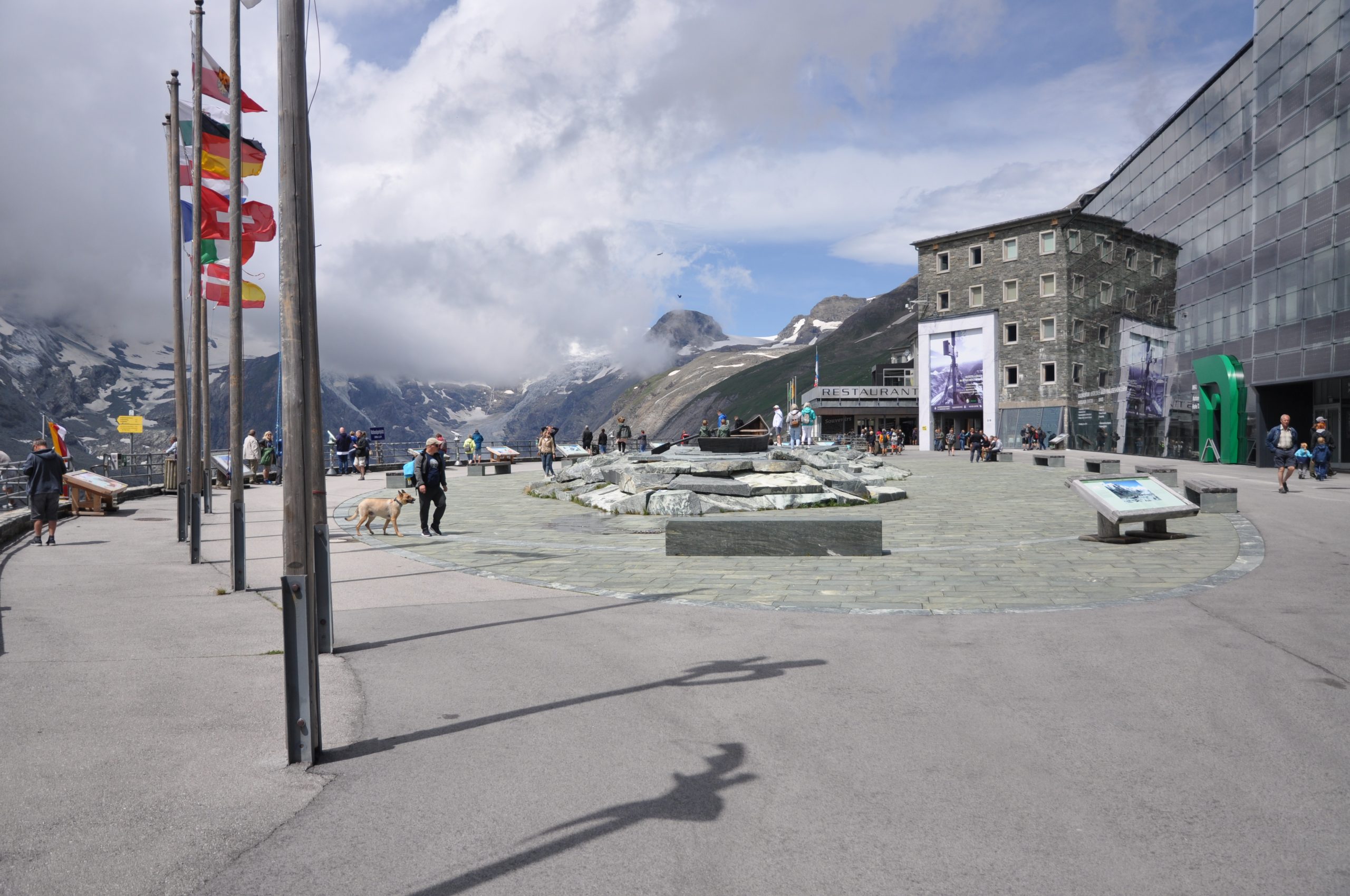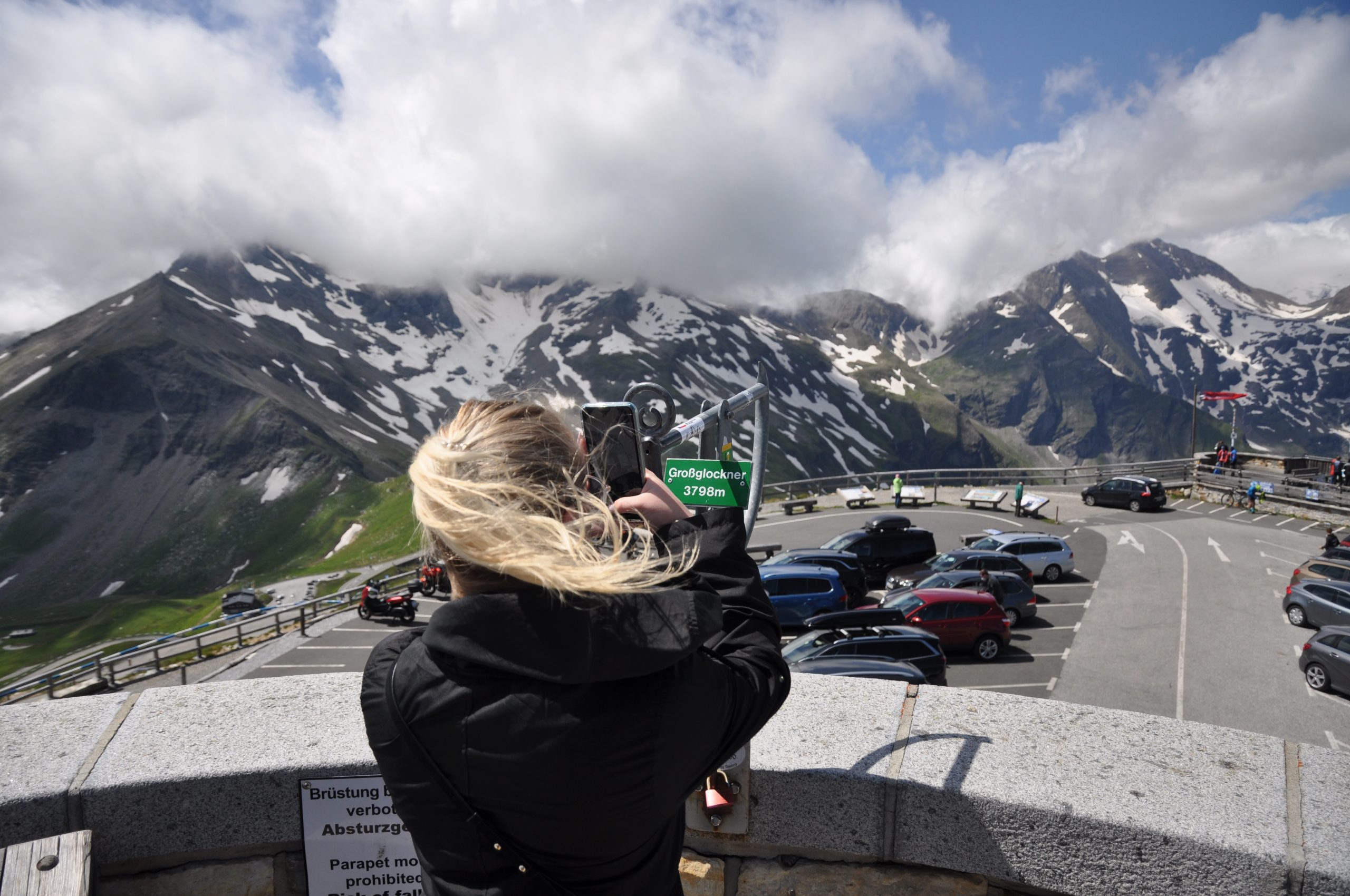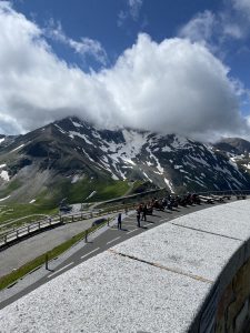 Unser erster Zwischenhalt war die Aussichtsplattform, von welcher man den Großglockner bestaunen kann. Dort konnten wir auch letztes Jahr schon einige beeindruckende Eindrücke aufsammeln. Auch dieses Mal mussten wir ein paar Bilder machen. Den Großglockner konnten wir heute leider nur erahnen, da er von einer dichten Wolkenschicht verdeckt wurde.