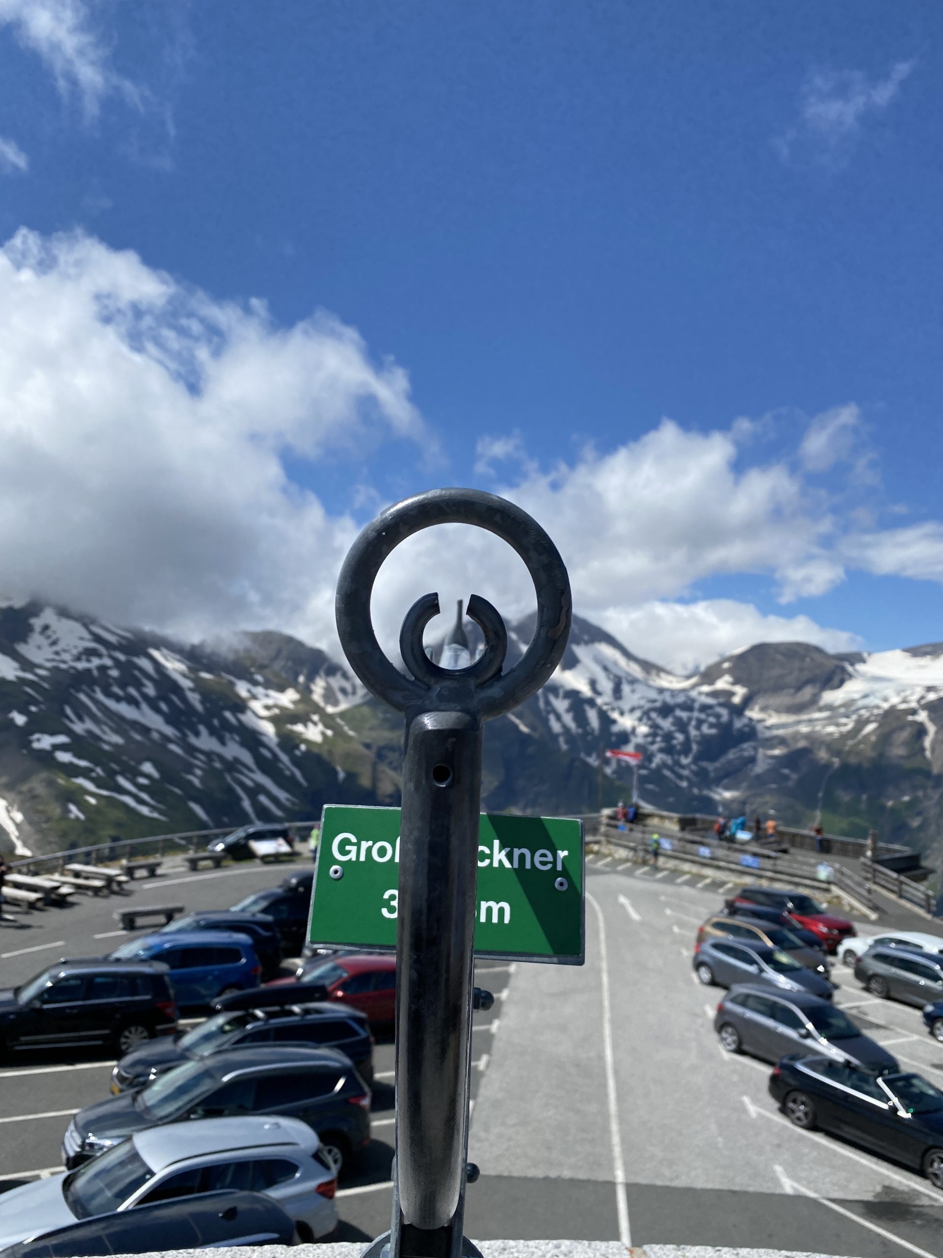 Da wir von allen hörten, dass eine Gletscherbahn uns zu den Murmeltieren führen würde, machten wir uns auf die Suche nach dieser. Wir fuhren dazu auf die Edelweißspitze. Dort stellten wir ernüchternd fest, dass es keine Gletscherbahn gibt. Wir gingen trotzdem ein paar Stufen nach oben, um die Aussicht zu genießen. Leider hielten wir es dort nicht so lang aus, da es unglaublich windig war, weshalb wir uns zurück ins Auto setzten und dort nach der besagten Bahn suchten. Nach etwas Recherche meinte Tim zu mir, dass wir nicht weit genug gefahren sind und die Straße noch weiterführt. Zuletzt dachten wir, dass es auf der anderen Seite der Aussichtsplattform einfach wieder runter geht und die Hochalpenstraße in eine weitere Richtung führt. Mit dem neu erlangten Wissen fuhren wir nun weiter. Vorbei am Parkplatz der Aussichtsplattform, um die erste Kurve und siehe da, ein großes Schild mit der Aufschrift „Großglockner – 20 km“.