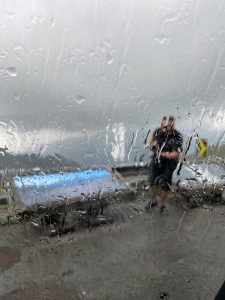 Wir nahmen um 15:30 Uhr eine der letzten Bahnen, die wieder nach oben führten. Dort angekommen stöberten wir noch ein paar Minuten in einem Souvenirshop und fanden dann auch unsere Murmeltiere. Zwar nicht ganz lebendig, aber dafür schön weich und zutraulich. Im Anschluss gingen wir wieder zum Auto und nahmen den Rückweg auf uns. Kaum aus dem Parkhaus heraus begann es stark zu regnen. Schon die ganze Zeit konnten wir beobachten, wie sich der Himmel immer mehr zusammenzog und sich die Wolken in den Bergen sammelten.
