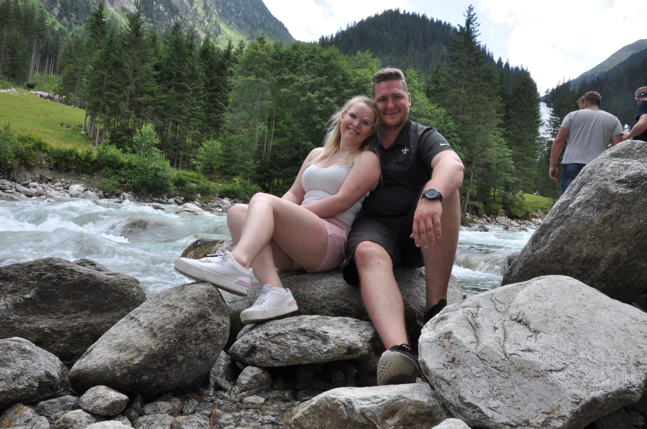 Natürlich schnappten wir uns wieder den Rucksack mit der Kamera und Wasserflasche. Dann ging es los in Richtung Wasserfälle. Wir kamen an ein Haus, bei welchem ich mir sicher war, dass wir dort bezahlen müssen, doch Tim behielt dieses Mal Recht: Es war nicht die richtige Kasse. Die Toiletten nutzen wir dort dennoch. Nach ca. fünf Minuten Fußweg erreichten wir dann wirklich die Bezahlstation. Ich ging hin, zeigte unsere PillerseeTal Karte, mit welcher wir eigentlich 10% Rabatt bekommen hätten, und bezahlte dann. Die Dame an der Kasse akzeptierte nur leider unsere PillerseeTal Karte nicht und so mussten wir den vollen Preis bezahlen. Aber das sollte uns nicht weiter beschäftigen und wir machten uns auf den Weg.