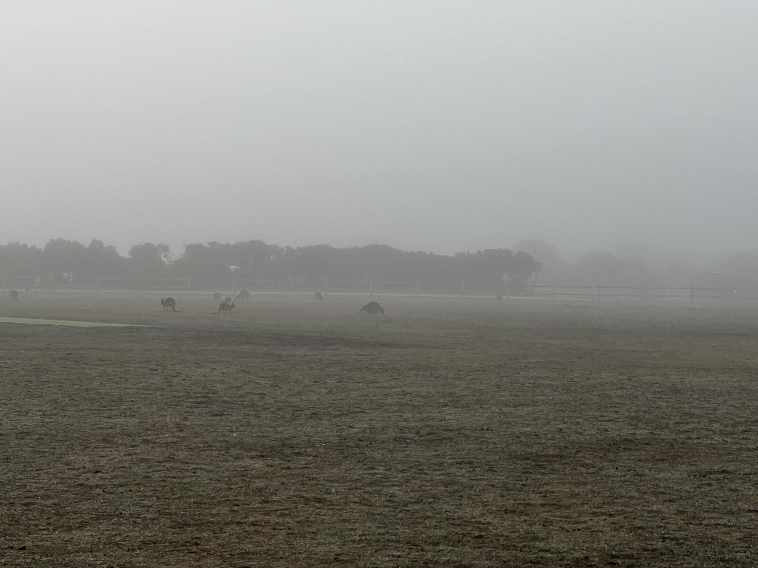 Früh waren die Kängurus verschwunden, wie sich herausstellte waren sie nun auf dem benachbarten Sportplatz.