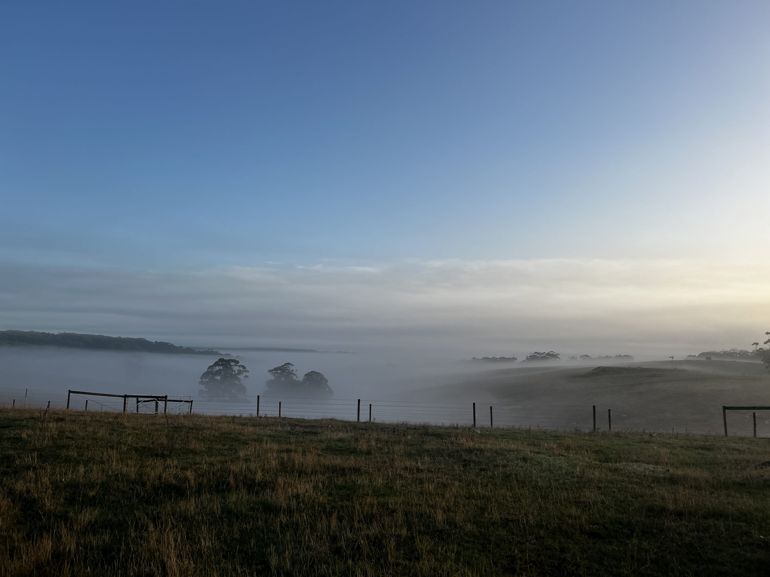 Losgekommen sind wir etwa eine Stunde später. Es war ein herrlicher Anblick. Alles lag im morgendlichen Nebel und ganz langsam setze sich die Sonne durch.