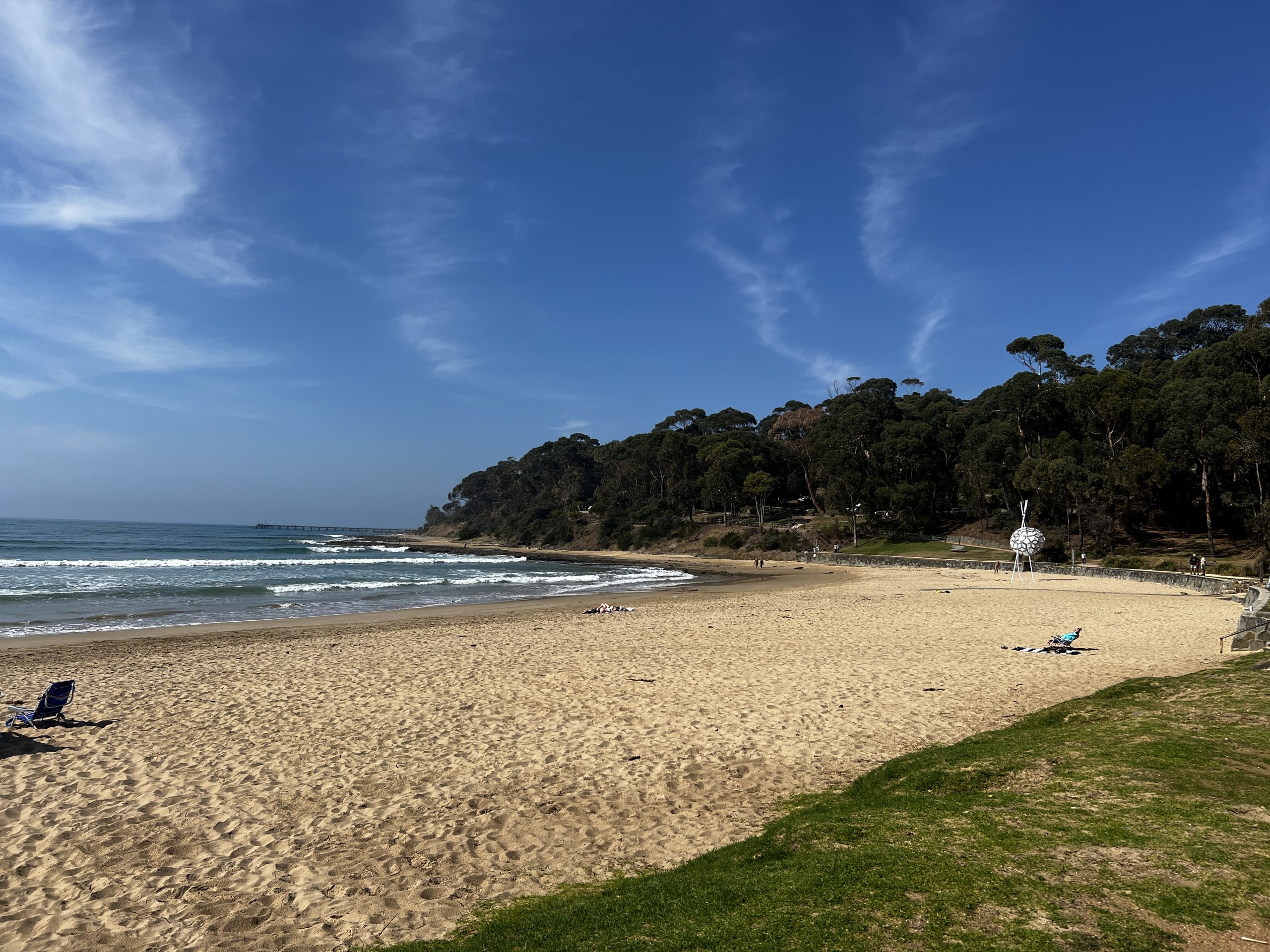 Strände und Klippen wechselten sich ab und alles direkt von der Straße aus sichtbar. Im fast letzten Ort der Great Ocean Road ging es für uns nochmal ins Wasser. Die Wellen waren nicht zu hoch und das Wasser hatte wohl etwas um die 20 Grad. Es gab keine Quallen und keinen Seetang – herrlich!