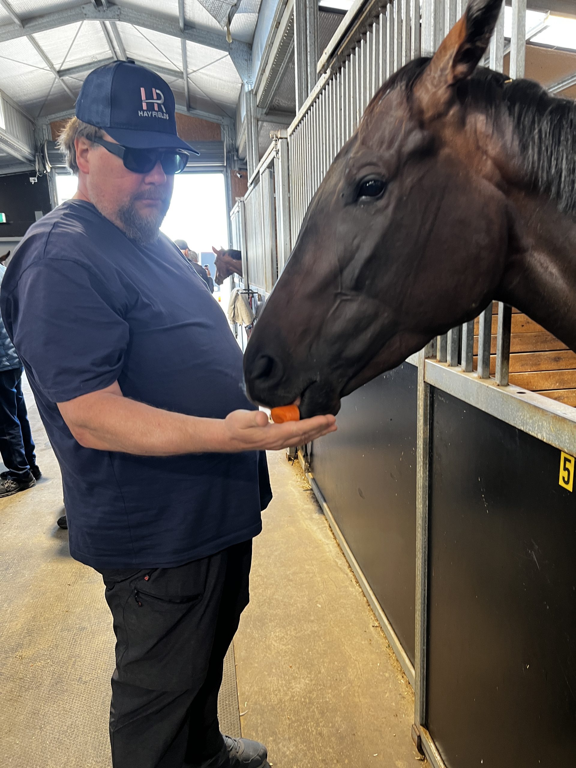 Wir sind in einem riesigen Gestüt gelandet. Ein paar der Pferde dürfen gefüttert, gestreichelt und begutachtet werden. Das ist ja genau mein Ding (nicht).