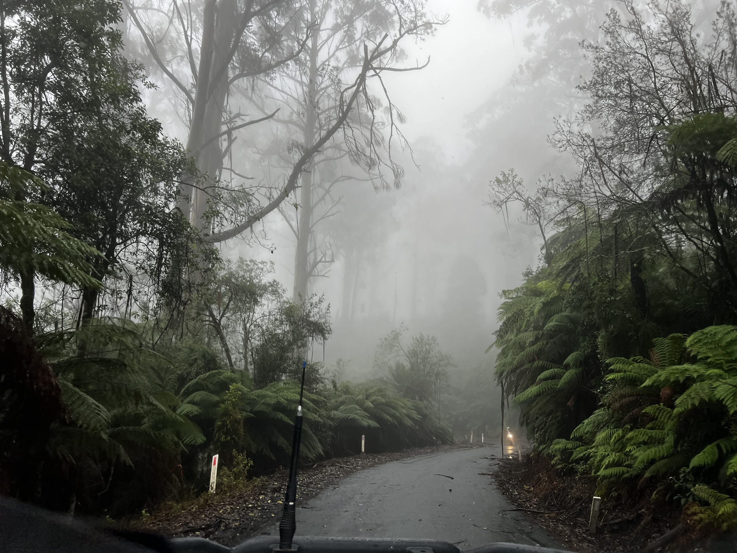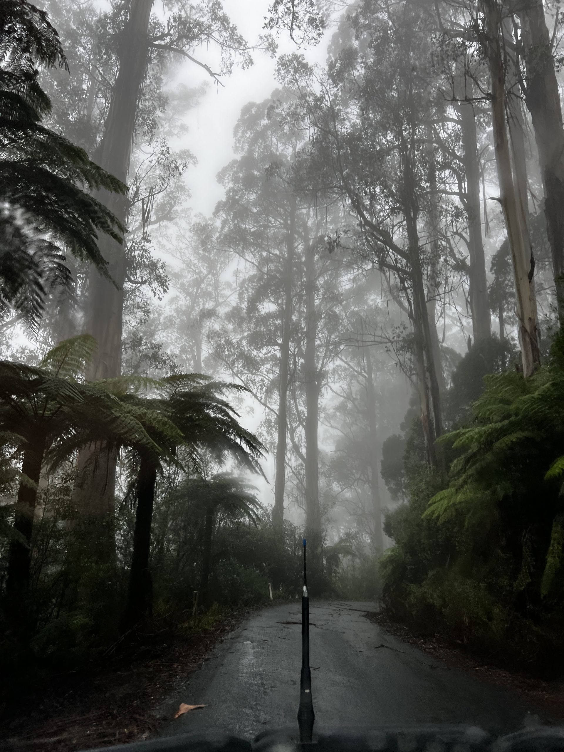 Lakes Enteance erreichen wir nicht. Kurz vorher gibt es eine Abbiegung auf die Great Alpine Road. Die könnten wir uns ja mal anschauen und Strand lohnt bei diesem Wetter sowieso nicht.