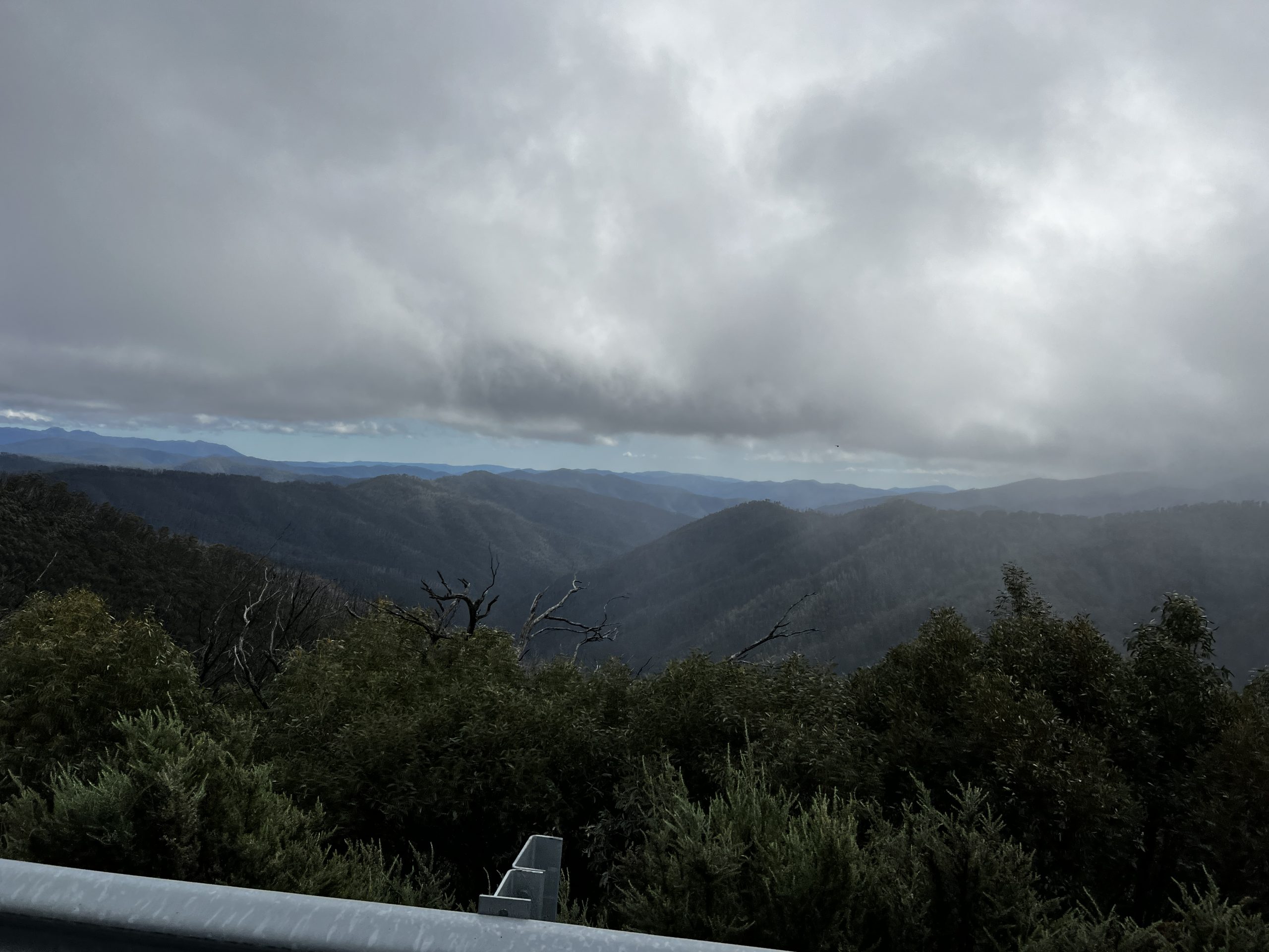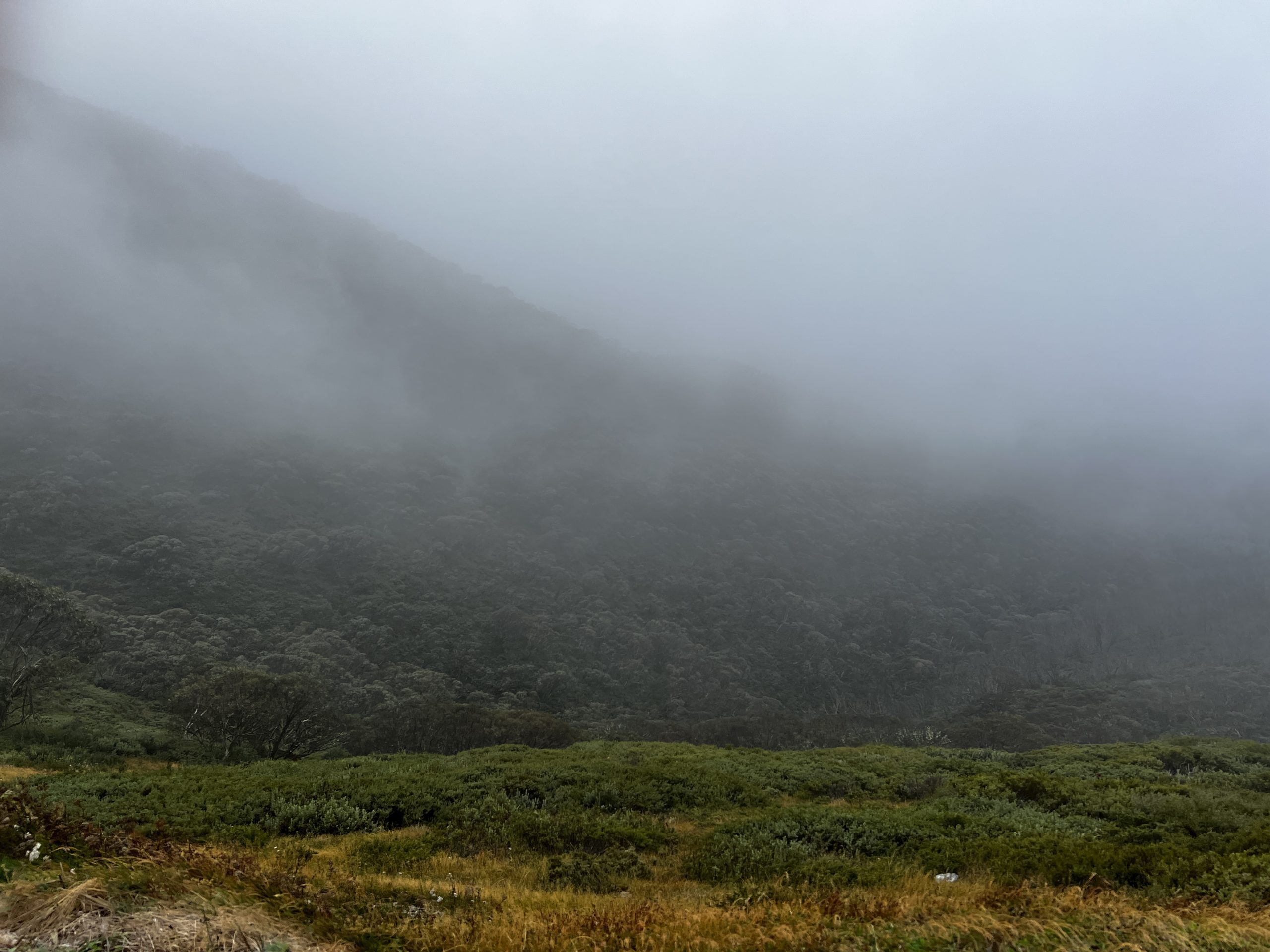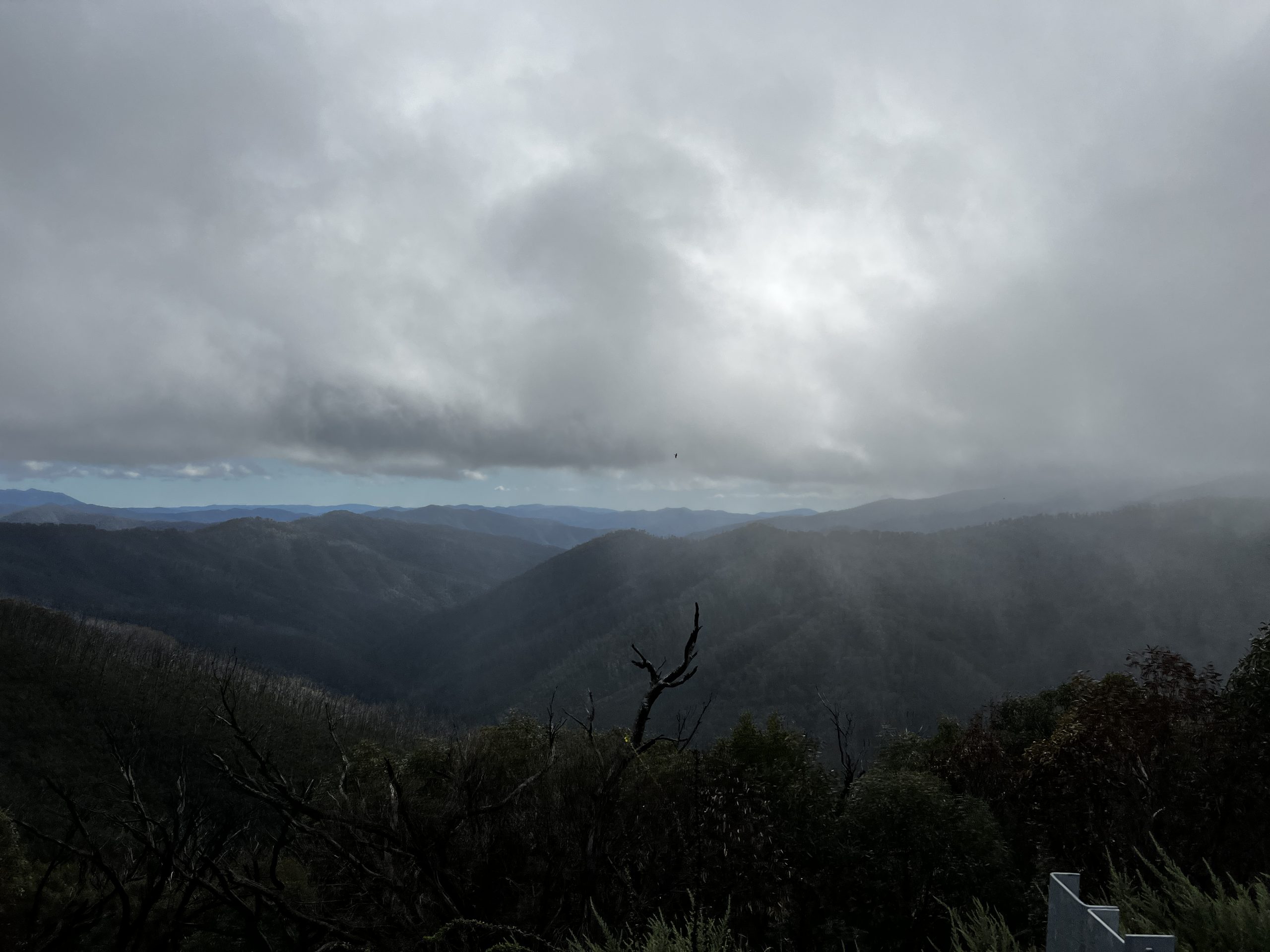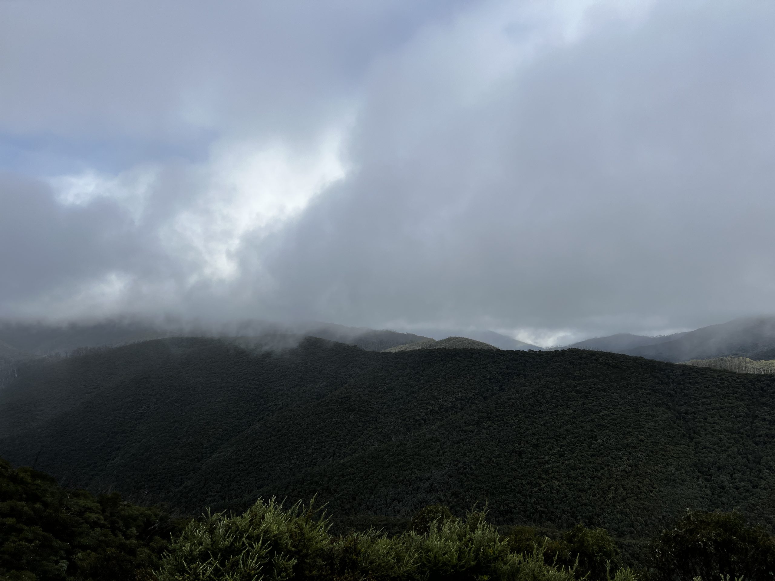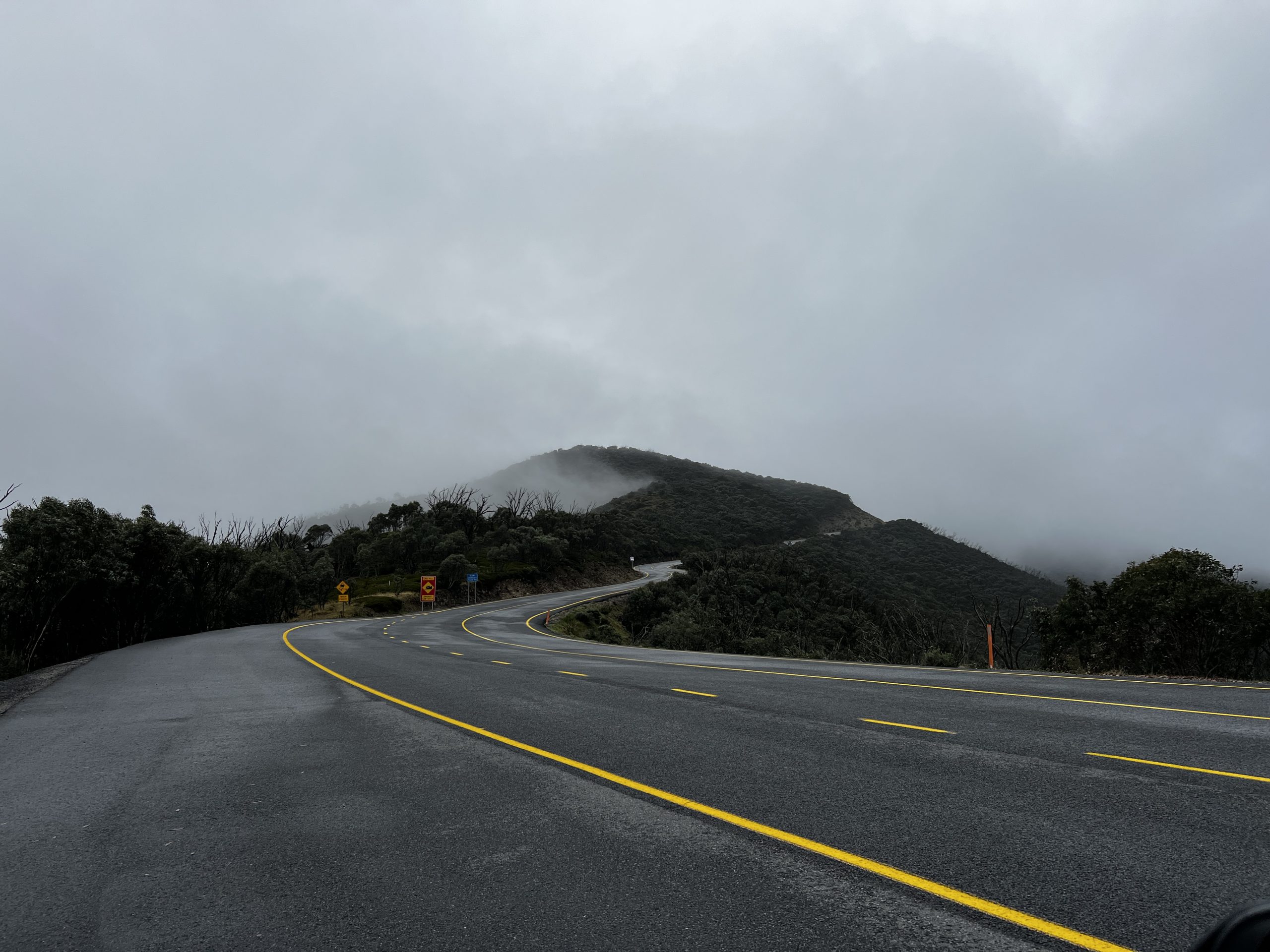 Die Great Alpine Road zeigte sich von einer mystischen Seite. Nebel und Wolken hingen in den Tälern. Wir hielten oft, fotografierten und genossen den Anblick. Der einzige Nachteil war, dass auch die Gipfel – fast 1800 m hoch – in den Wolken hingen.