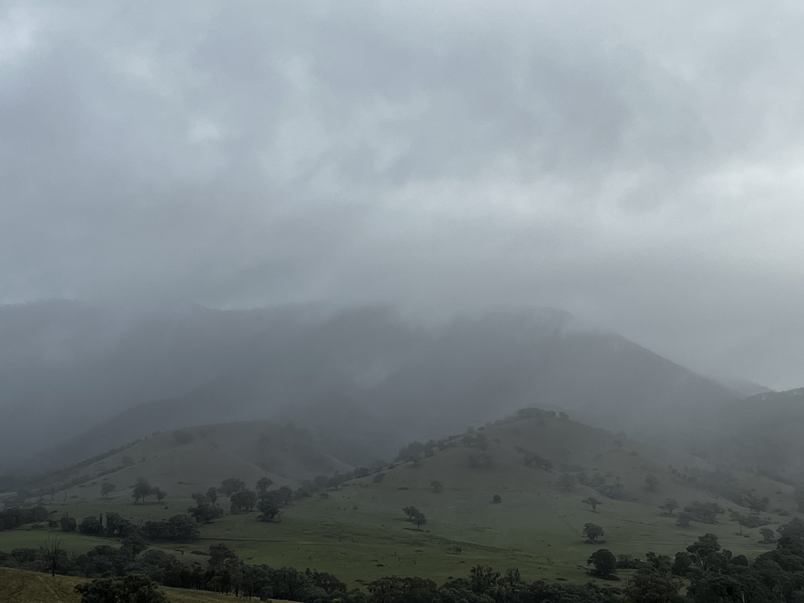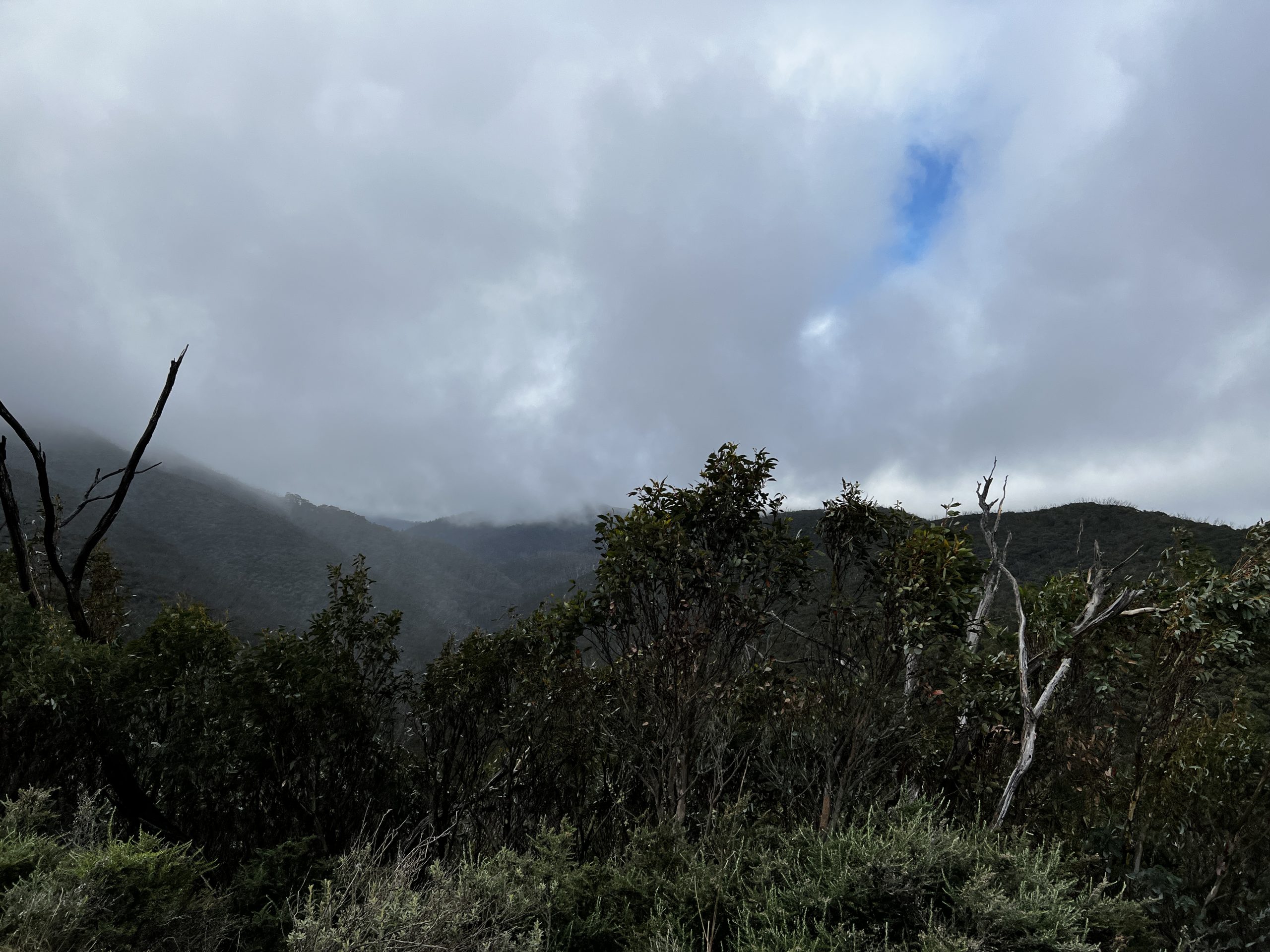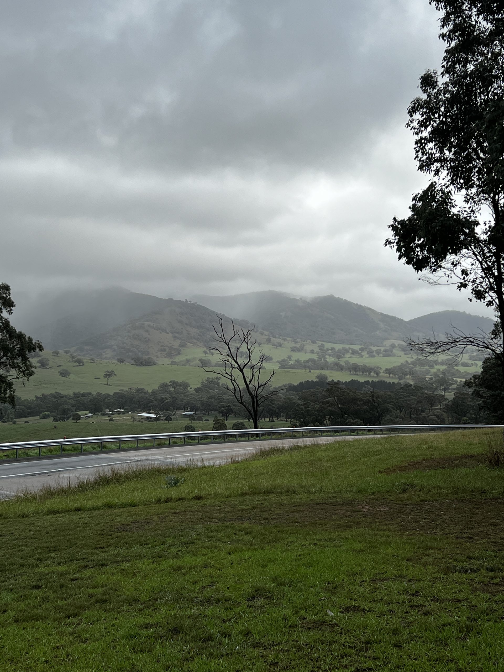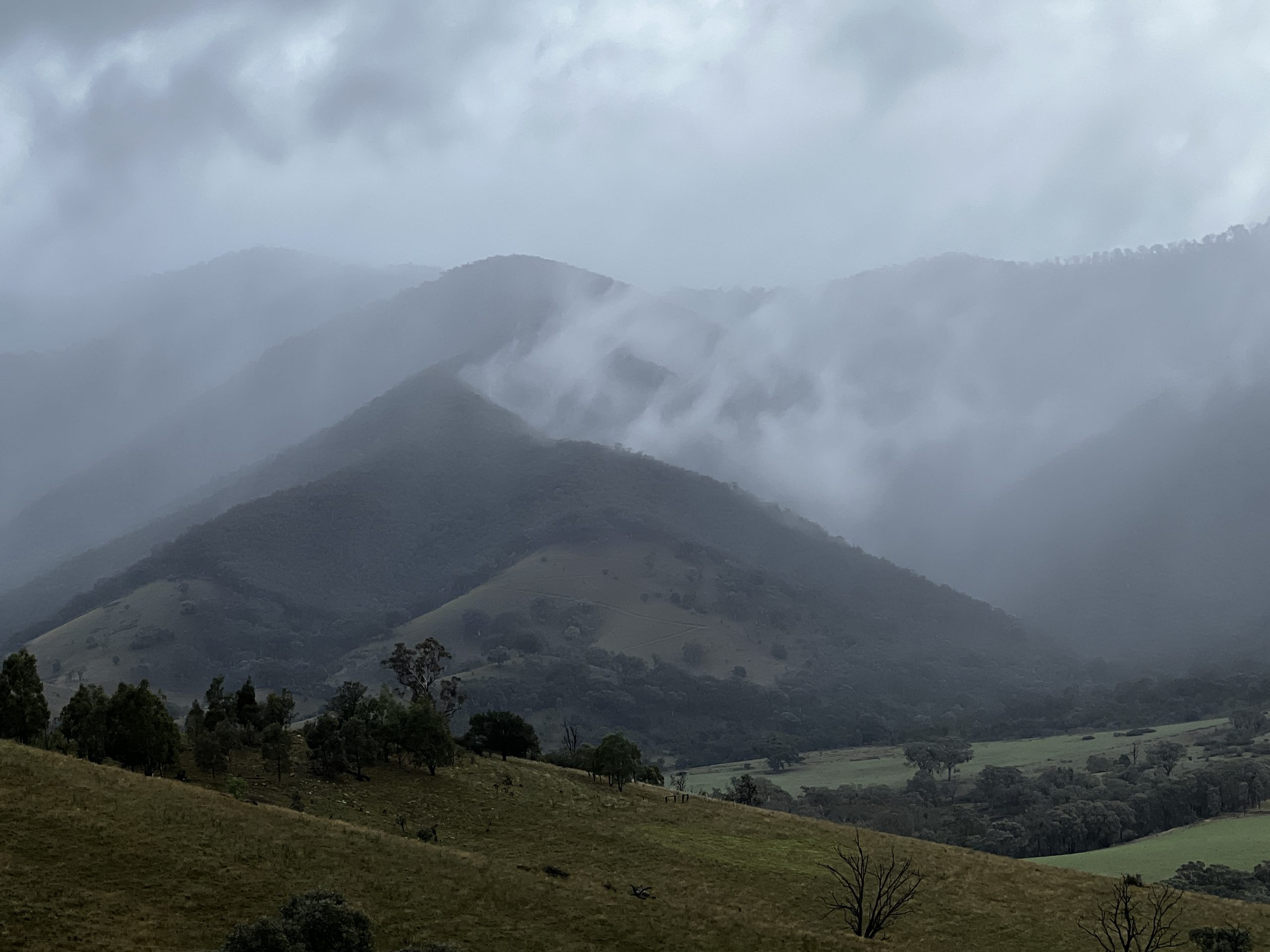 Die Great Alpine Road zeigte sich von einer mystischen Seite. Nebel und Wolken hingen in den Tälern. Wir hielten oft, fotografierten und genossen den Anblick. Der einzige Nachteil war, dass auch die Gipfel – fast 1800 m hoch – in den Wolken hingen.