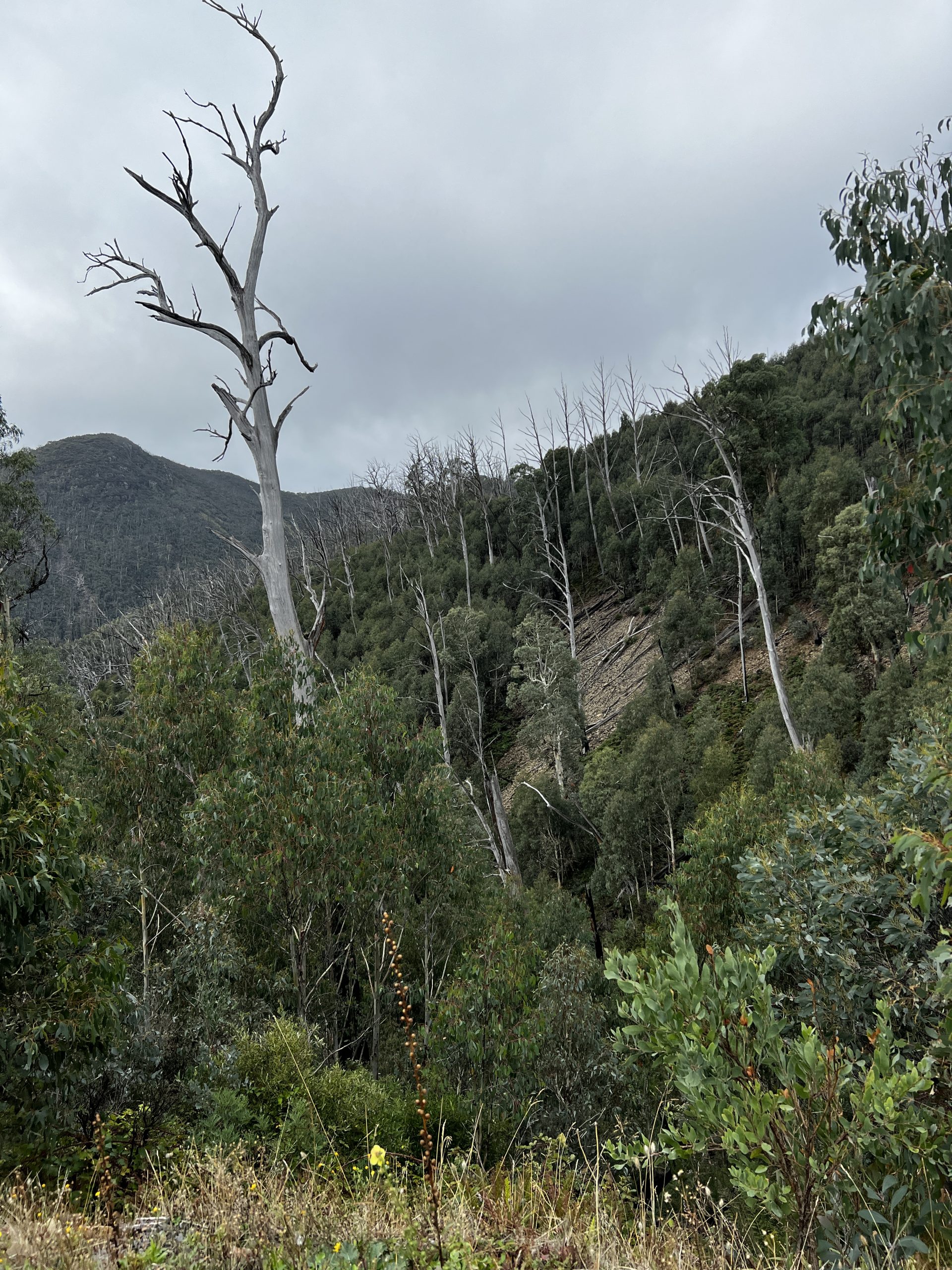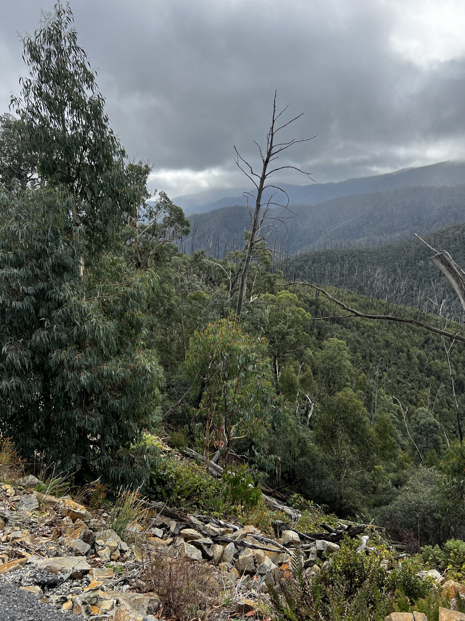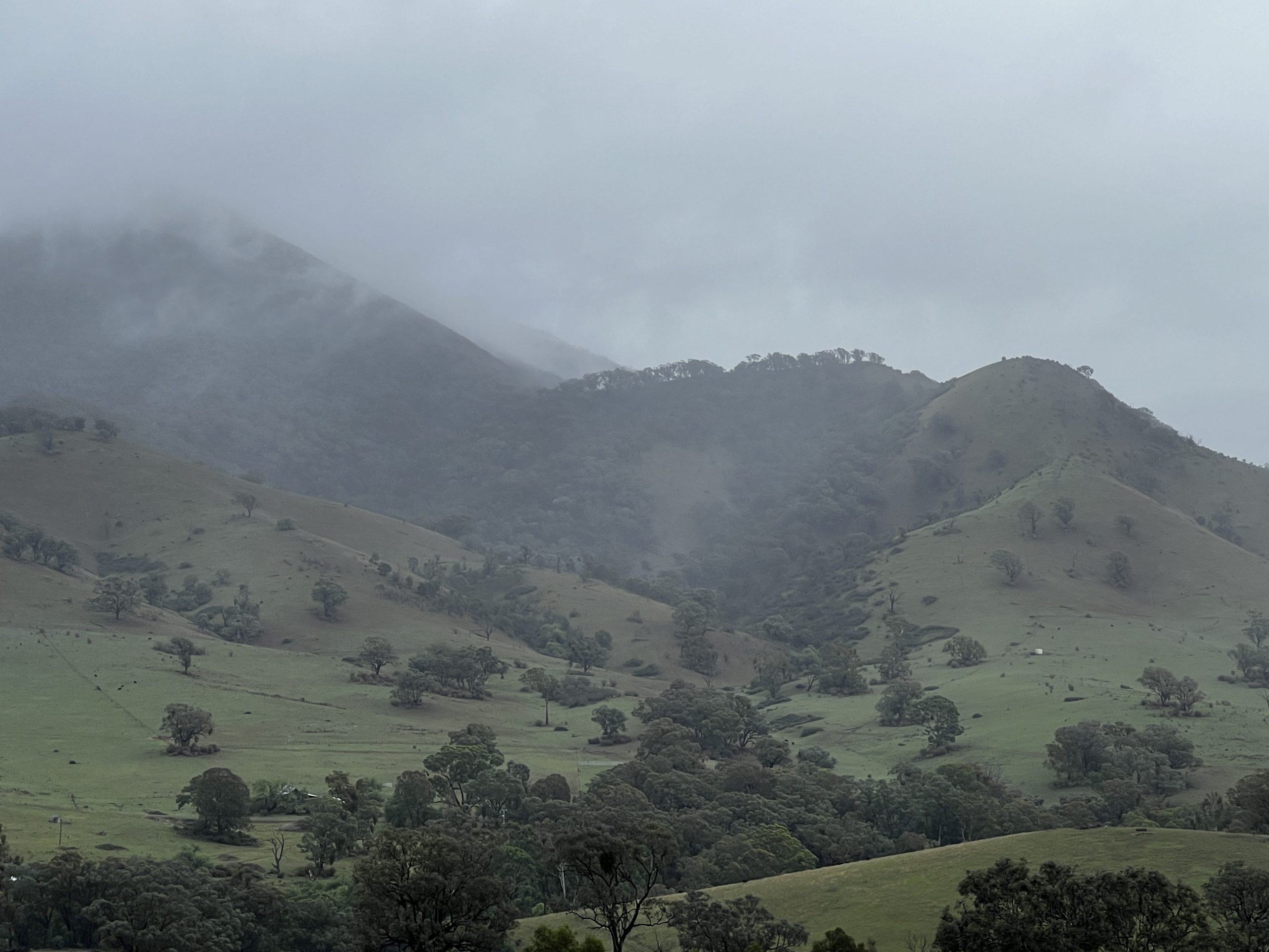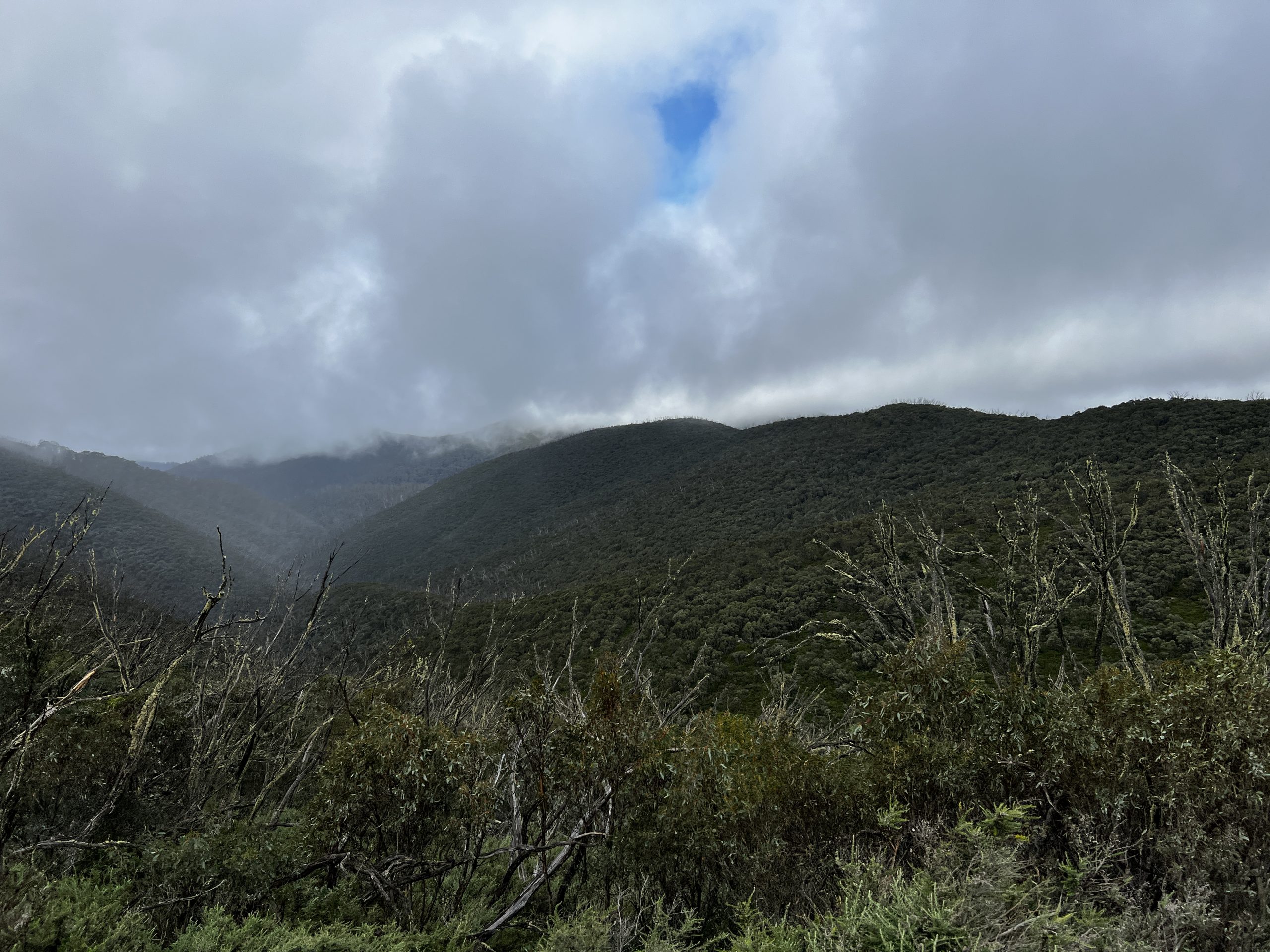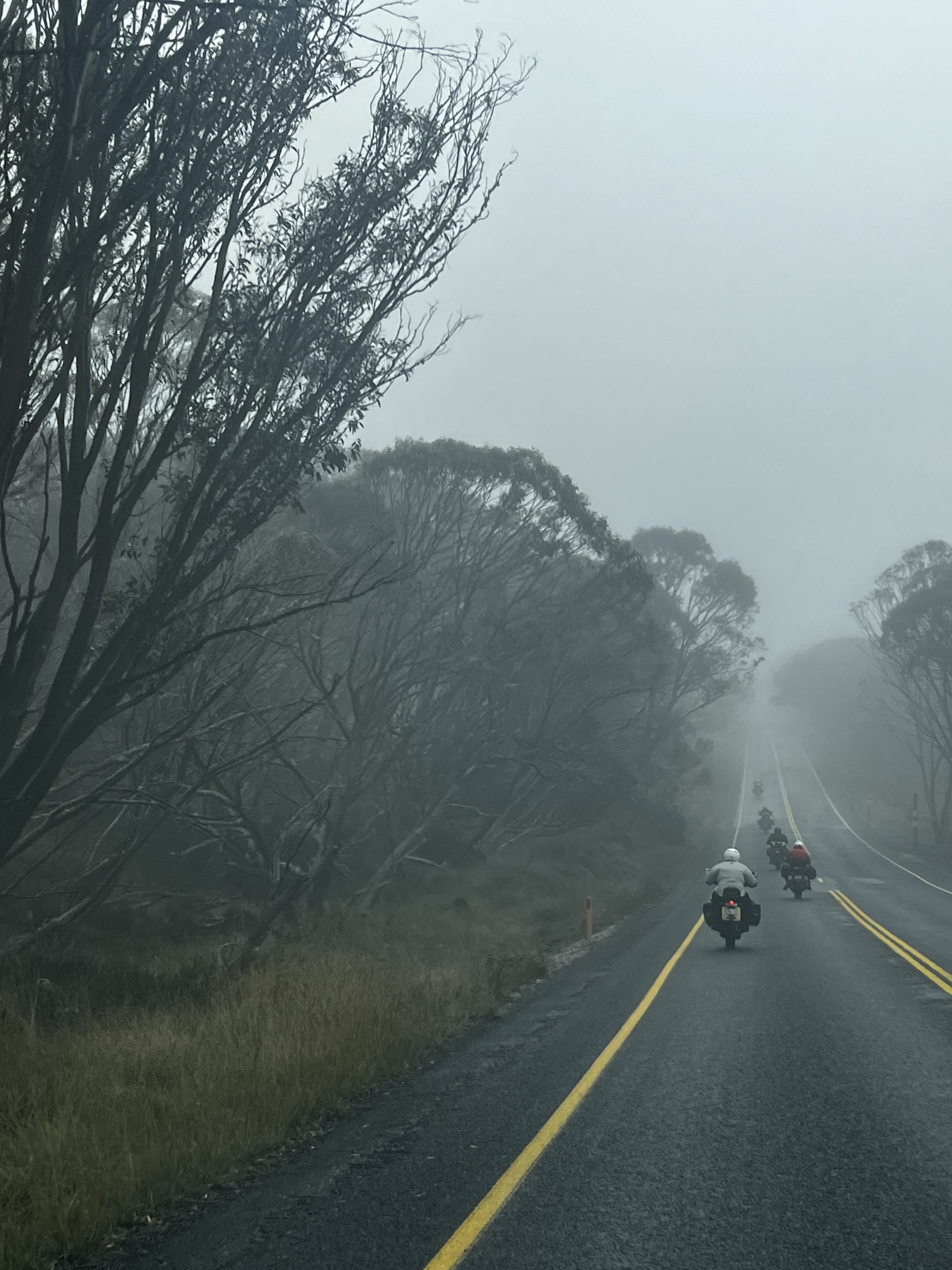 Die Great Alpine Road zeigte sich von einer mystischen Seite. Nebel und Wolken hingen in den Tälern. Wir hielten oft, fotografierten und genossen den Anblick. Der einzige Nachteil war, dass auch die Gipfel – fast 1800 m hoch – in den Wolken hingen.