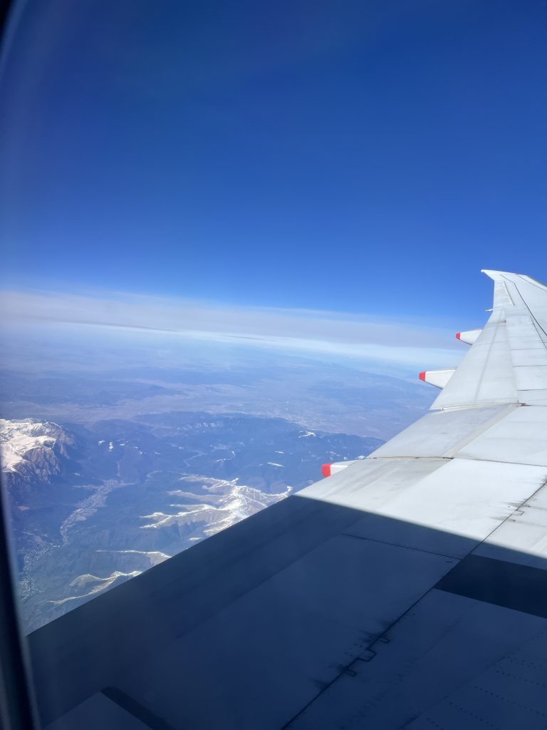 Wir sitzen zu zweit am Fenster über der Tragfläche. Relativ pünktlich gegen 12 starten wir in Richtung Singapore.
