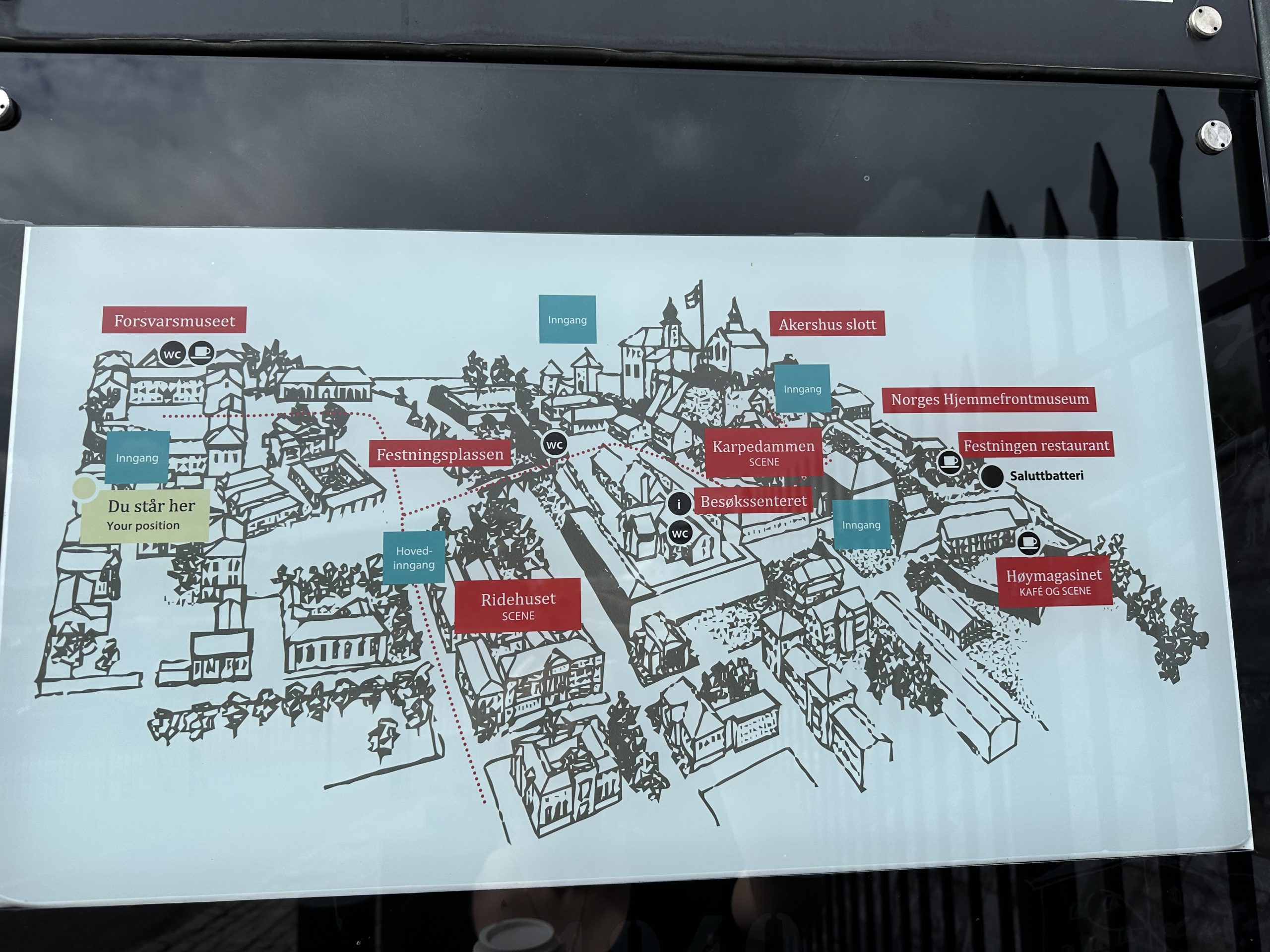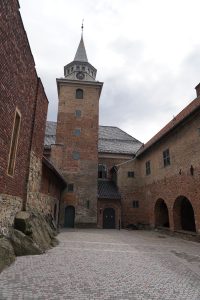 Als erstes Besuchten wir die „Akershus festning“. Inmitten der Festung gab es einen Abgesperrten Bereich, welcher für militärische Zwecke genutzt wurde. Überall konnte man die Soldaten in voller Montur herumlaufen sehen. Die Museen besuchten wir nicht, aber genossen den Ausblick von verschiedenen Aussichtsplattformen. Man hatte einen schönen Blick über den Hafen von Oslo und von hieraus beobachteten wir die Fähre beim Ablegen.